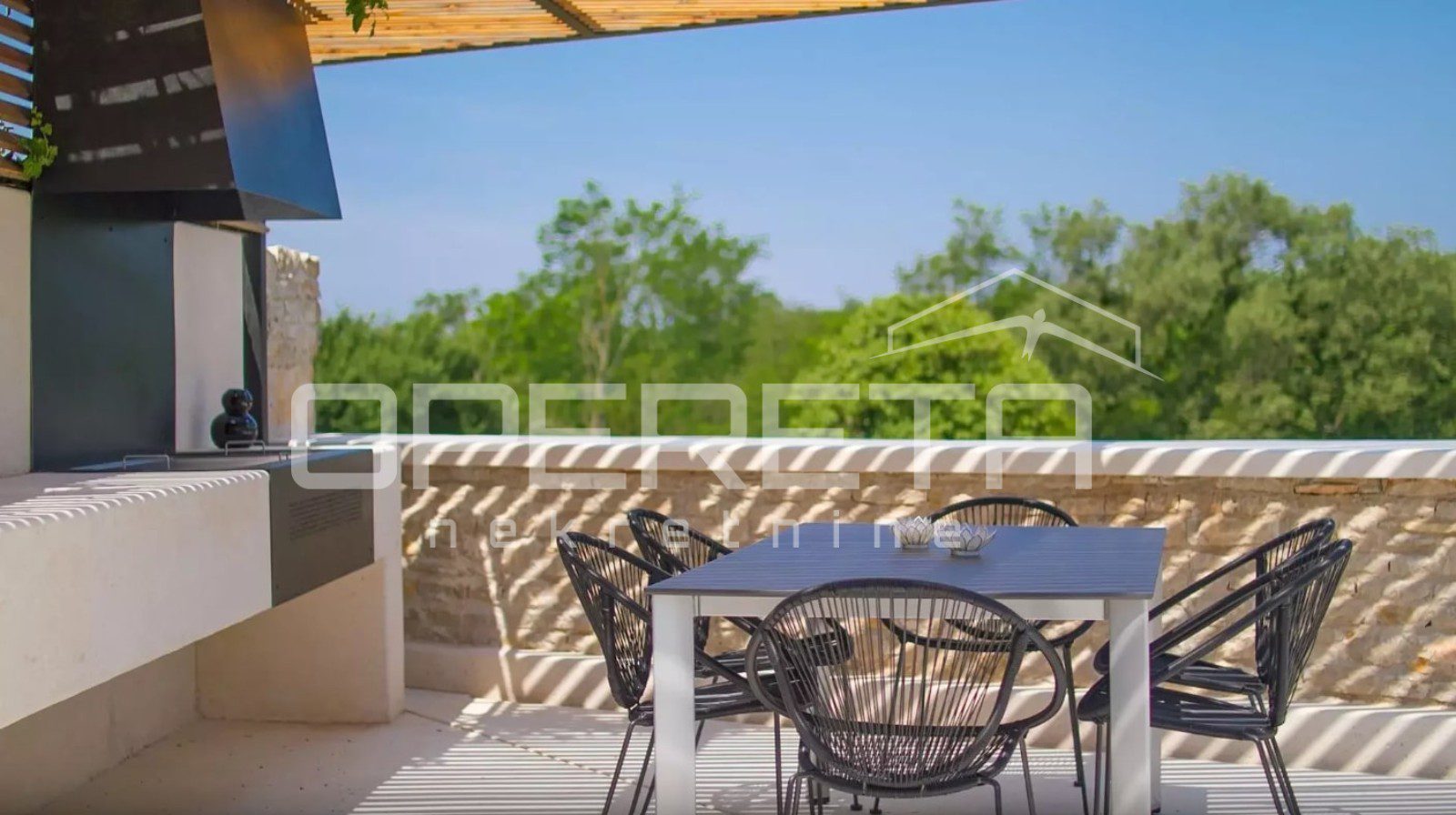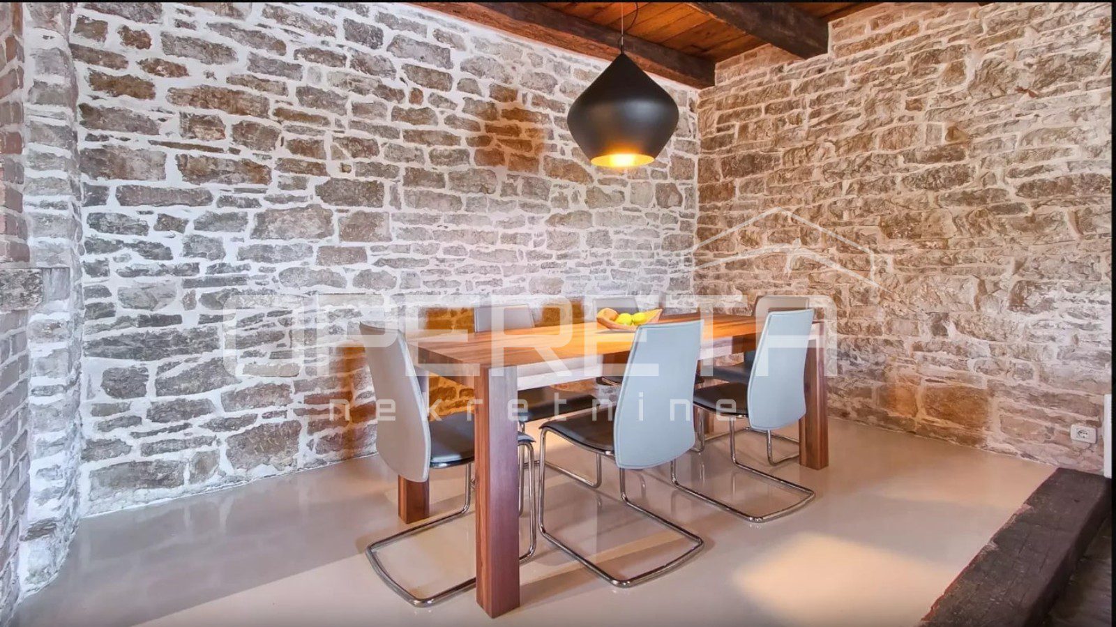 Prekrasna renovirana kuća smještena u okolici Tinjana, površine 130 m², s okućnicom od 382 m², savršen je primjer modernog uređenja i tradicionalnog istarskog načina života. Svaki detalj je pažljivo osmišljen i dizajniran, a posebna pažnja posvećena je korištenju izvornih materijala, što ovoj vili daje autentičan i rustikalni šarm.