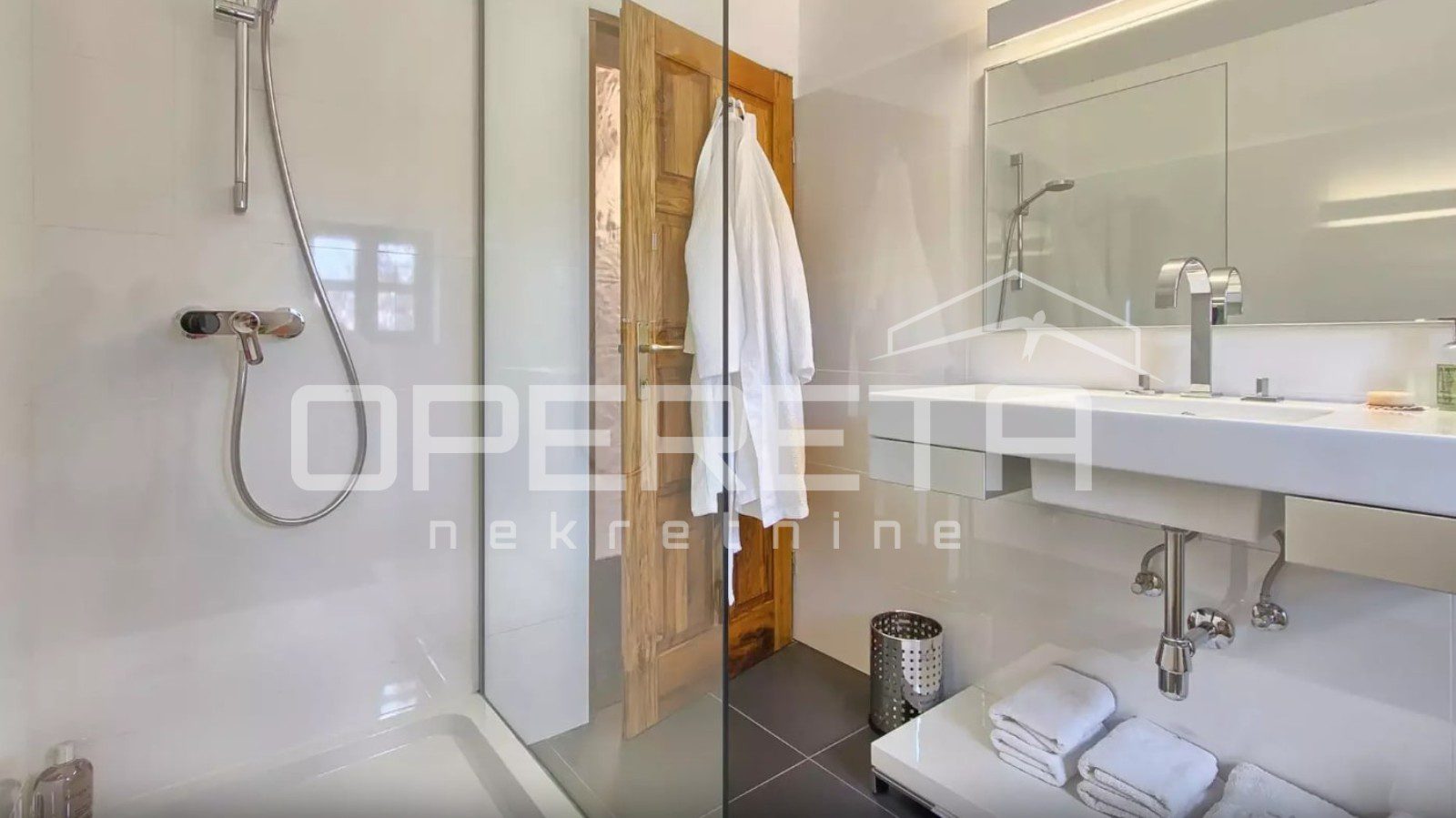 Vanjski bazen, obložen je talijanskim pločicama najviše kvalitete, savršeno je mjesto za uživanje u sunčanju i opuštanju. Pokraj grijanog bazena smještena je ljetna kuhinja s roštiljem, terasa i vanjski tuš.
