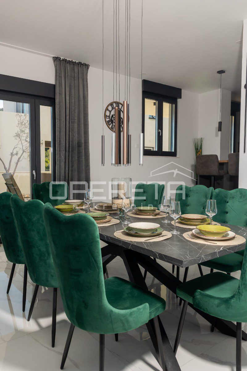 Ova vila sa otvorenim pogledom na more i otoke smještena je u Segetu Gornjem, a savršen je izbor za sve koji traže luksuzan život u mirnom okruženju, te istovremeno žele biti u blizini svih važnih sadržaja. Prostire se na atraktivnoj parceli od 957 m², te nudi savršen spoj moderne arhitekture i prirodne ljepote. Vila se prostire na dvije etaže ukupne površine 192,87 m², s prostorima dizajniranim za maksimalnu udobnost.