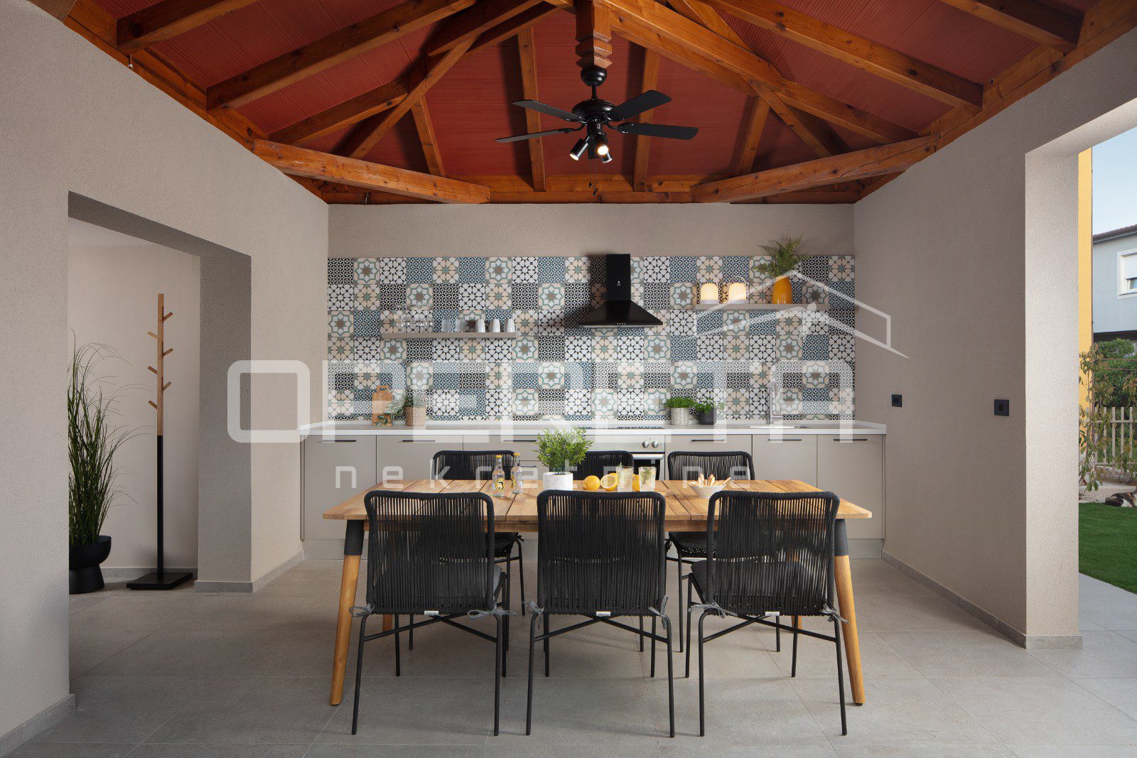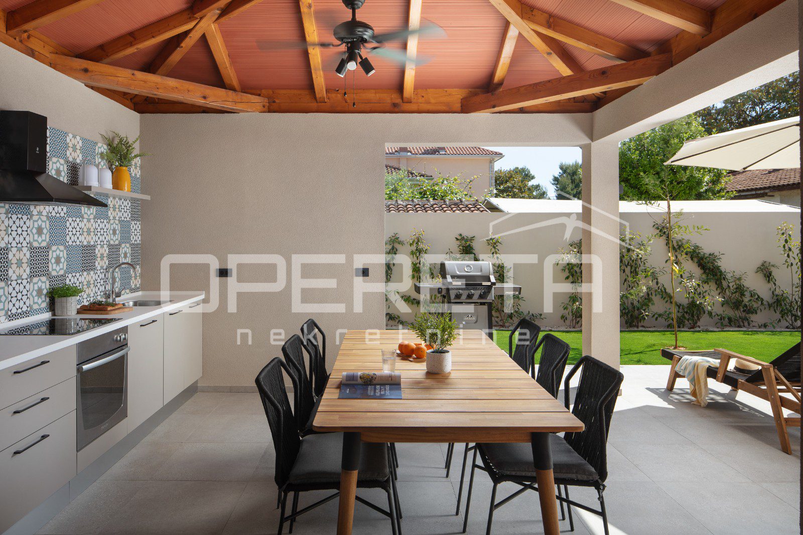 Sastoji se od moderno uređene i potpuno opremljene kuhinje s blagovaonicom i dnevnim boravkom, a dodatnu vrijednost pruža vanjska ljetna kuhinja s blagovaonskim prostorom te kao dodatna vrijednost posjeduje konobu s kaminom.