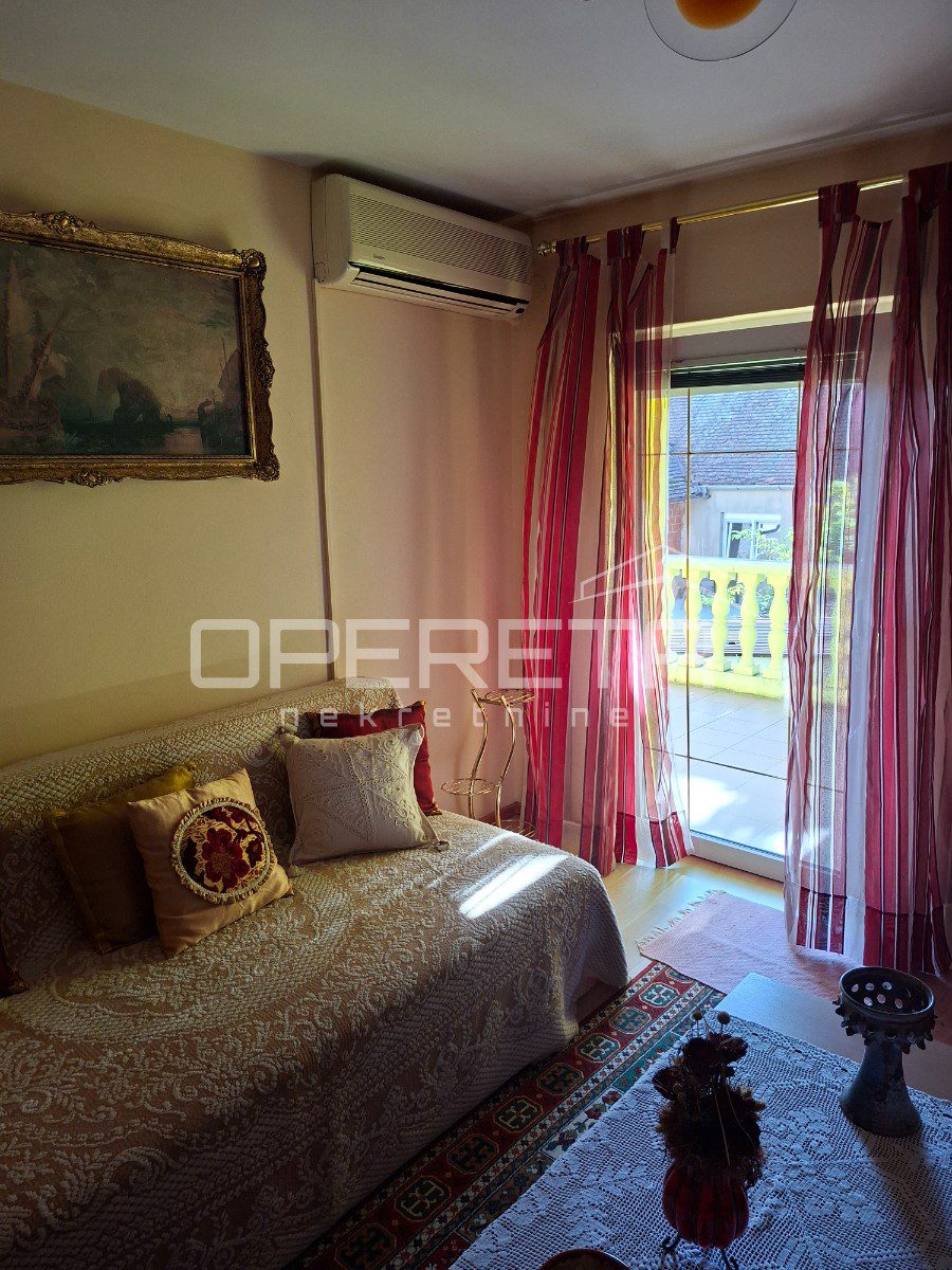 Na prvom katu se nalaze 2 spavaće sobe , dnevni boravak, 1 wc, 1 kupaona ( s kadom) te veliki balkon koji se prostire preko 2 spavaće sobe a zasebno je još jedan balkon koji ima izlaz iz dnevnog boravka.