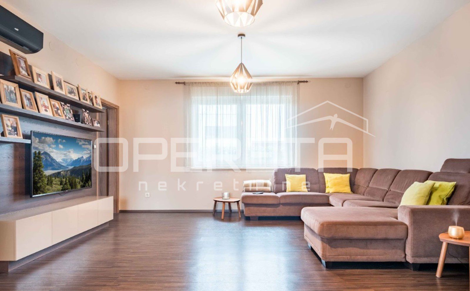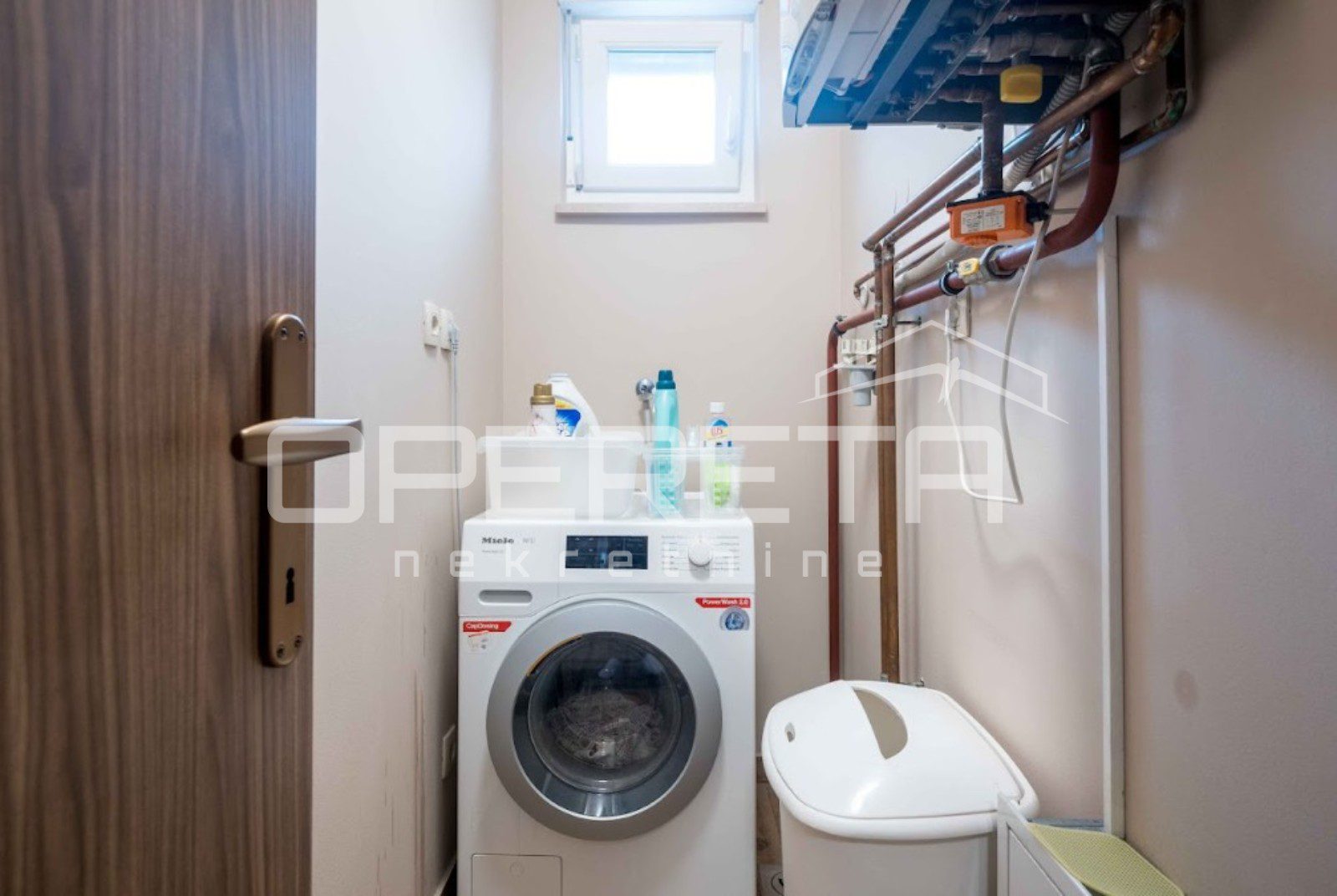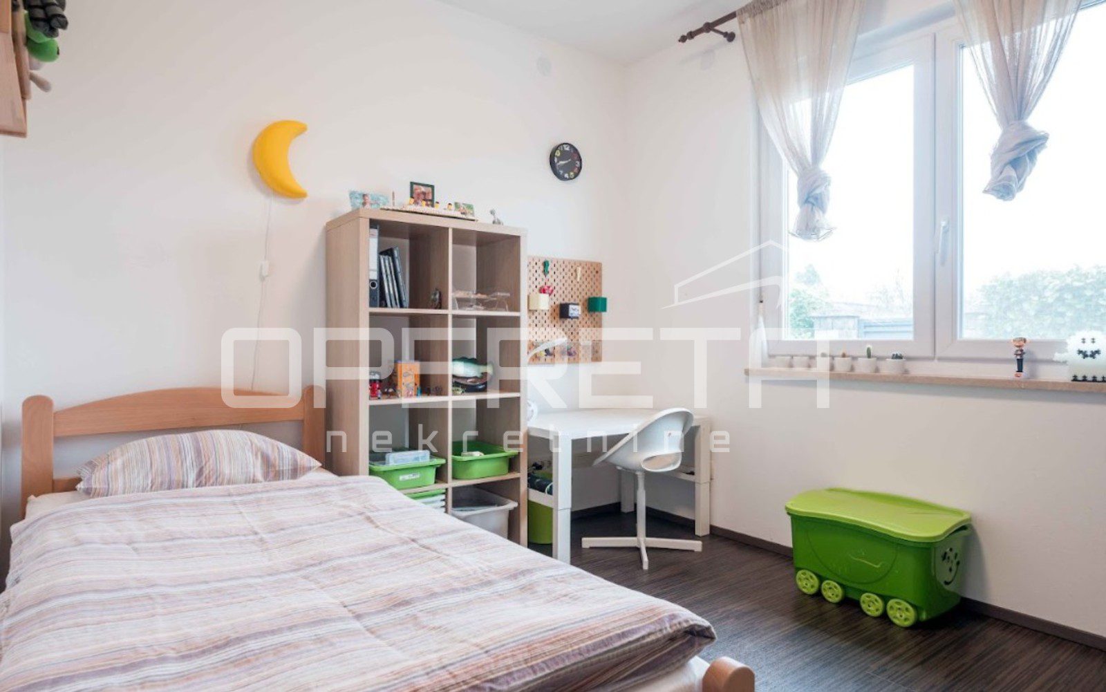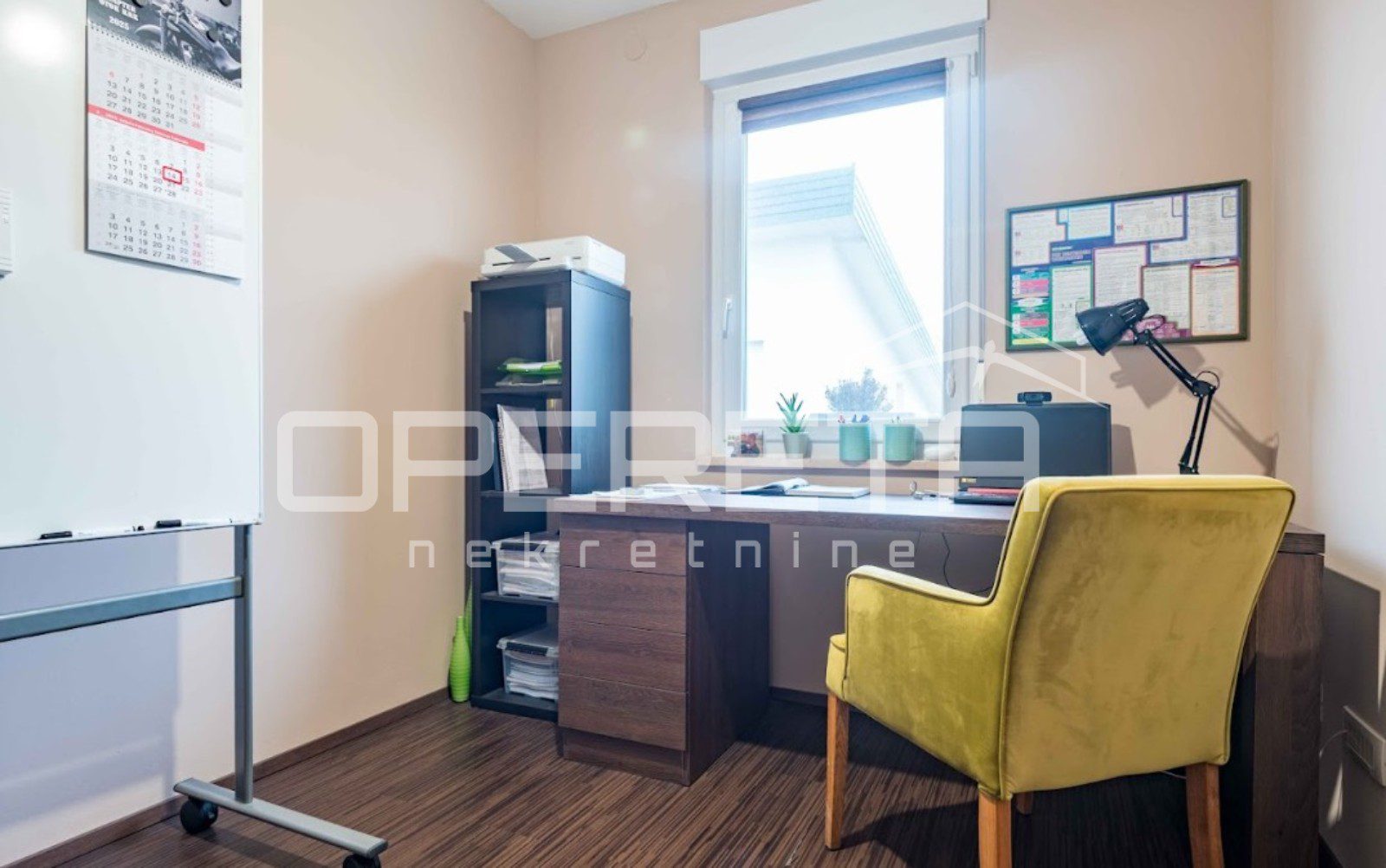 Prodaje se niskoenergetska montažna kuća locirana u širem centru grada Varaždina. Prizemnica sargrađena 2019. godine vrlo je funkcionalna, s izlazom na terasu i vrt. Uredno uređen zeleni vrt sa dječjim igralištem. Garaža s grijanjem i klimatizacijom, pogodna za parkiranje 2 vozila. U sklopu garaže postoji i praonica za rublje, kao i ormari za dodatno spremanje svega. Postoji i prostor za radionu u sklopu garaže.