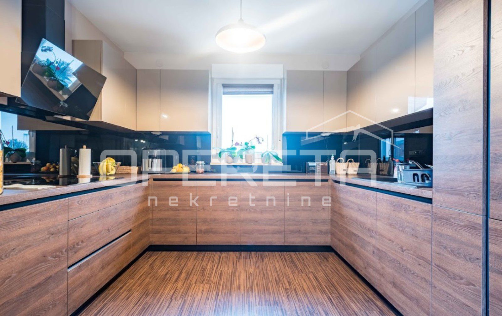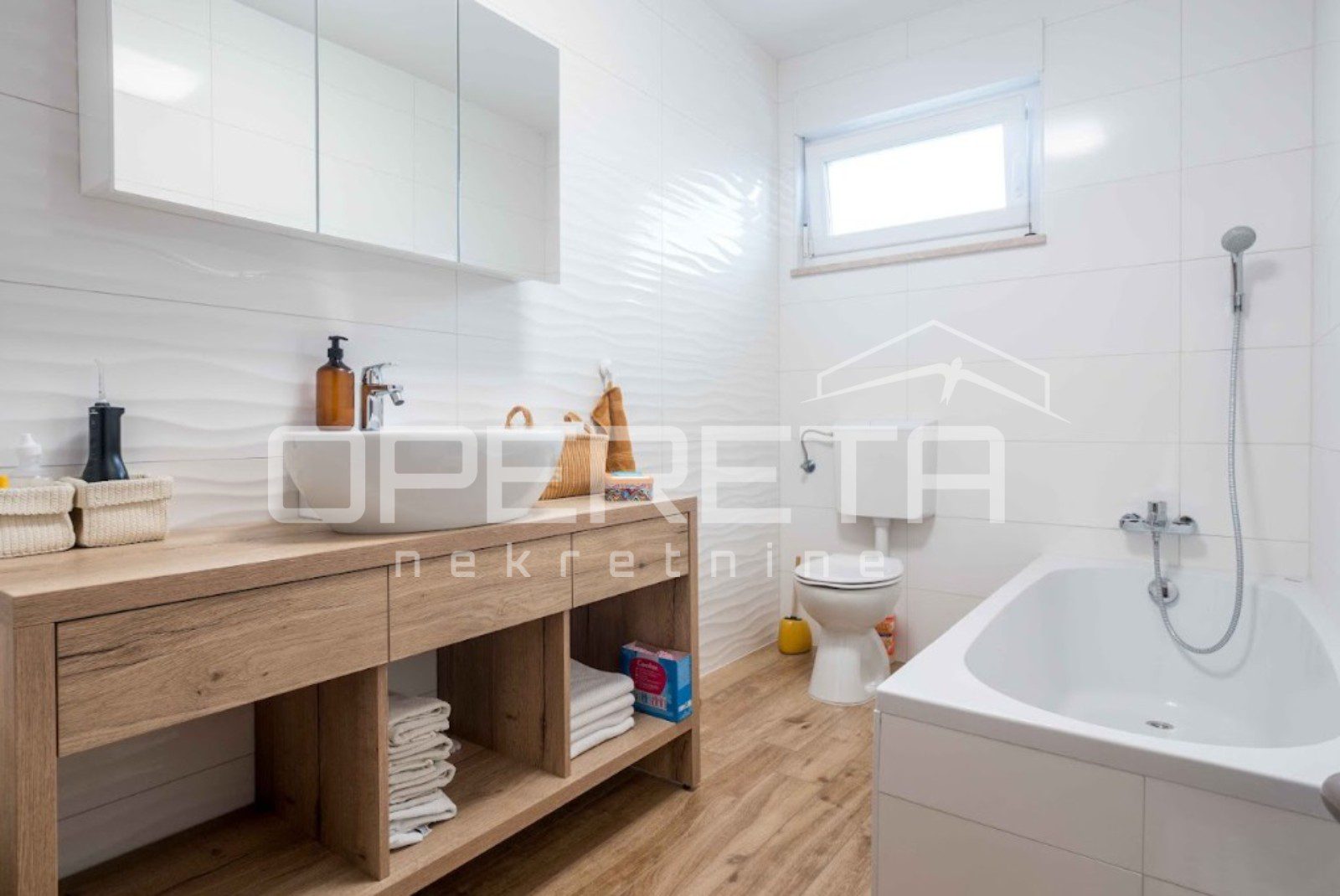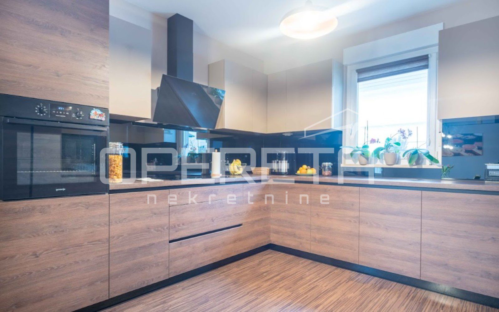 Prodaje se niskoenergetska montažna kuća locirana u širem centru grada Varaždina. Prizemnica sargrađena 2019. godine vrlo je funkcionalna, s izlazom na terasu i vrt. Uredno uređen zeleni vrt sa dječjim igralištem. Garaža s grijanjem i klimatizacijom, pogodna za parkiranje 2 vozila. U sklopu garaže postoji i praonica za rublje, kao i ormari za dodatno spremanje svega. Postoji i prostor za radionu u sklopu garaže.