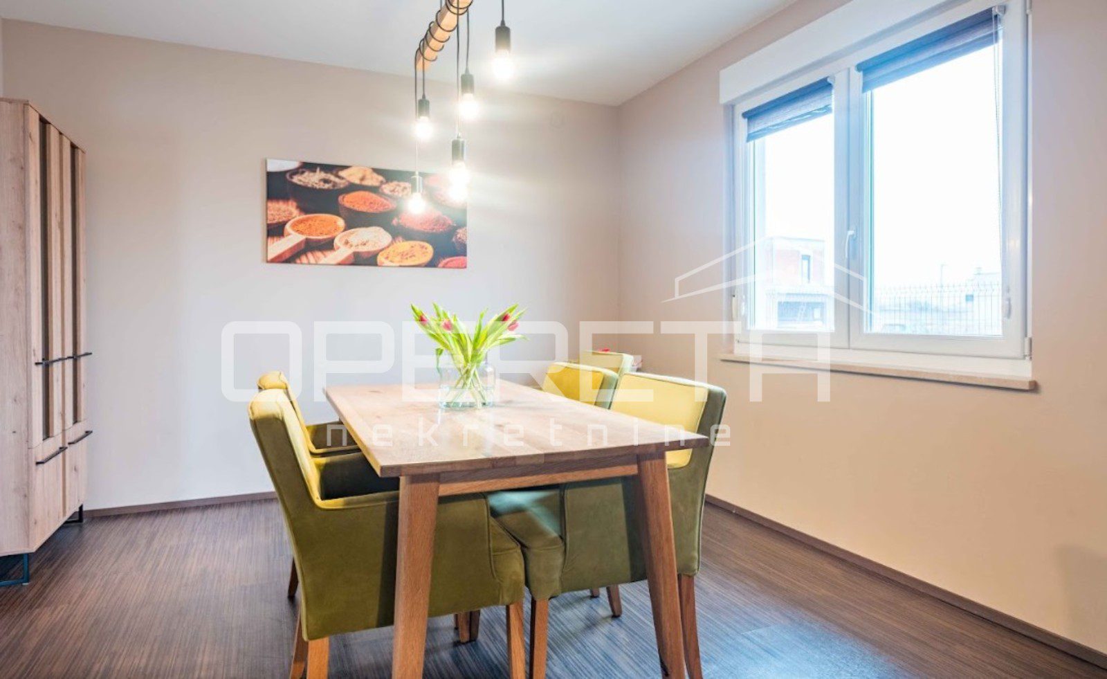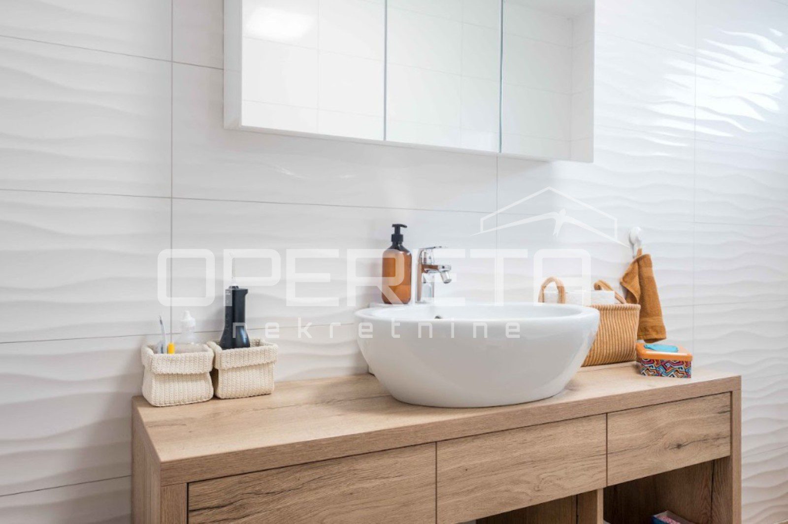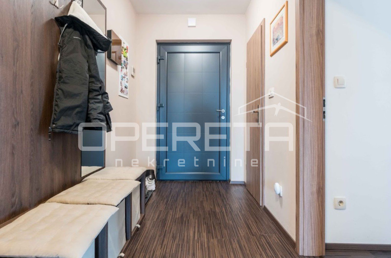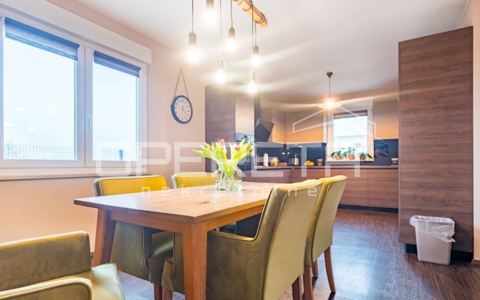 Prodaje se niskoenergetska montažna kuća locirana u širem centru grada Varaždina. Prizemnica sargrađena 2019. godine vrlo je funkcionalna, s izlazom na terasu i vrt. Uredno uređen zeleni vrt sa dječjim igralištem. Garaža s grijanjem i klimatizacijom, pogodna za parkiranje 2 vozila. U sklopu garaže postoji i praonica za rublje, kao i ormari za dodatno spremanje svega. Postoji i prostor za radionu u sklopu garaže.