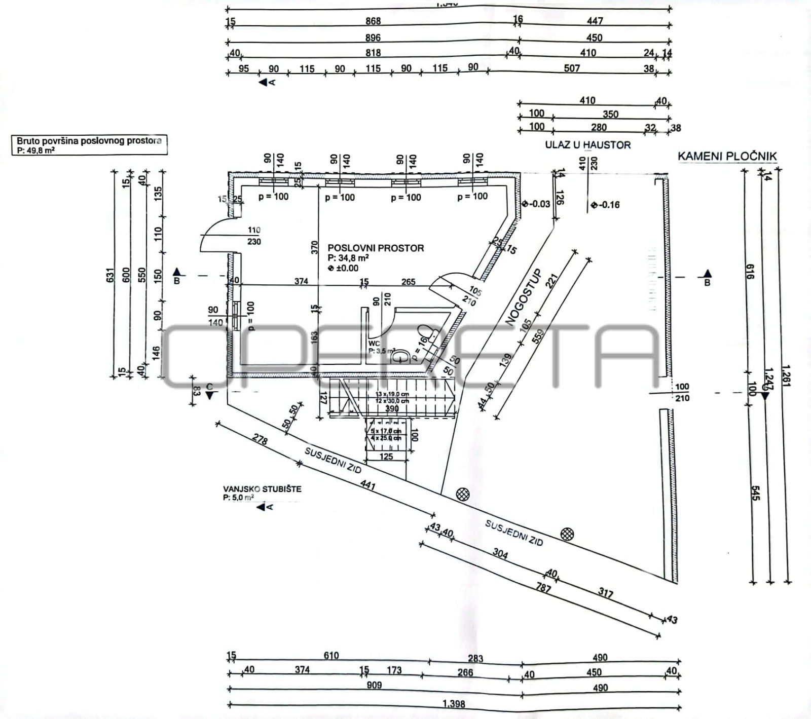 Na području centra prodaje se kuća za rušenje s novim projektom za izgradnju manje stambeno poslovne zgrade površine 131,27 m2.