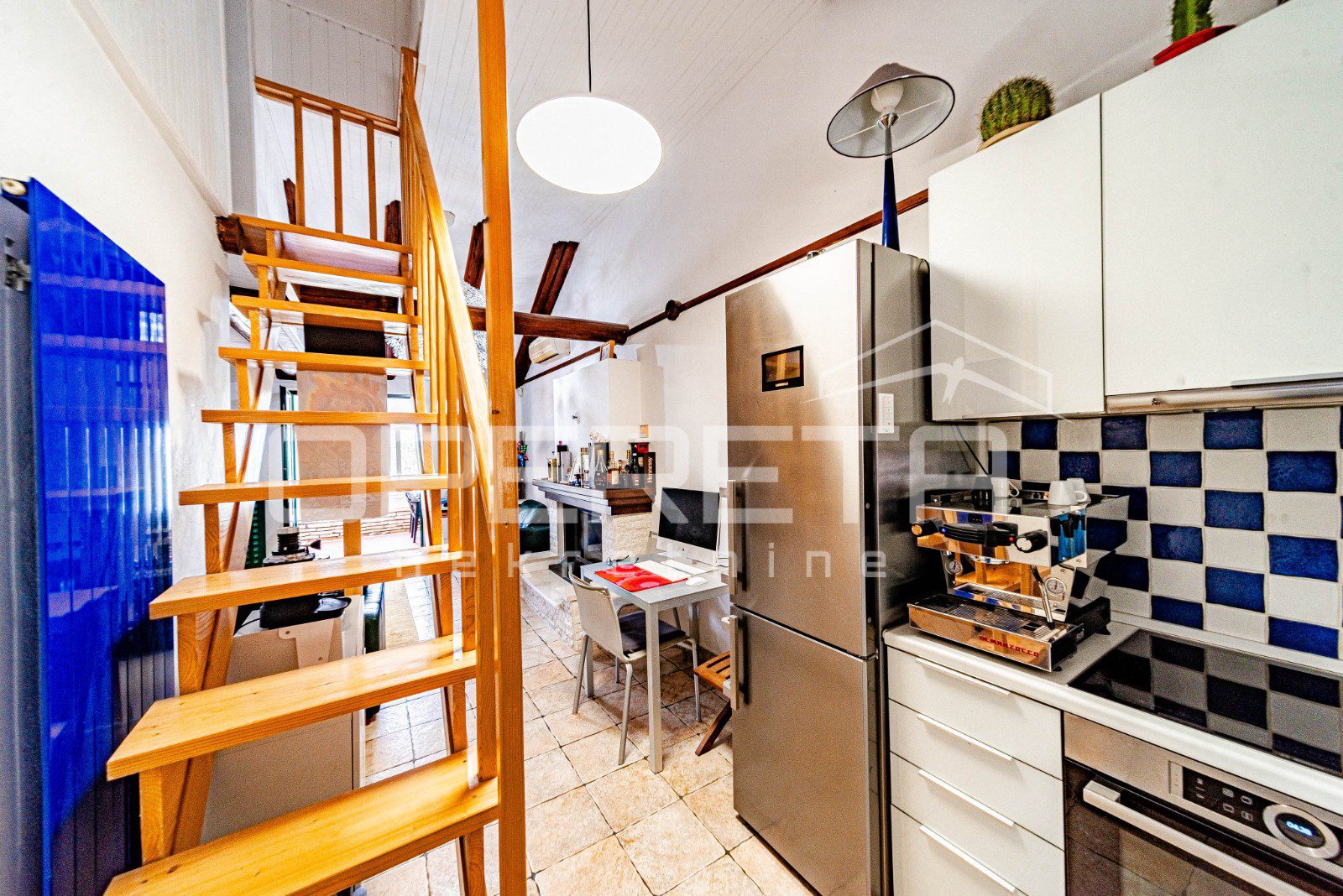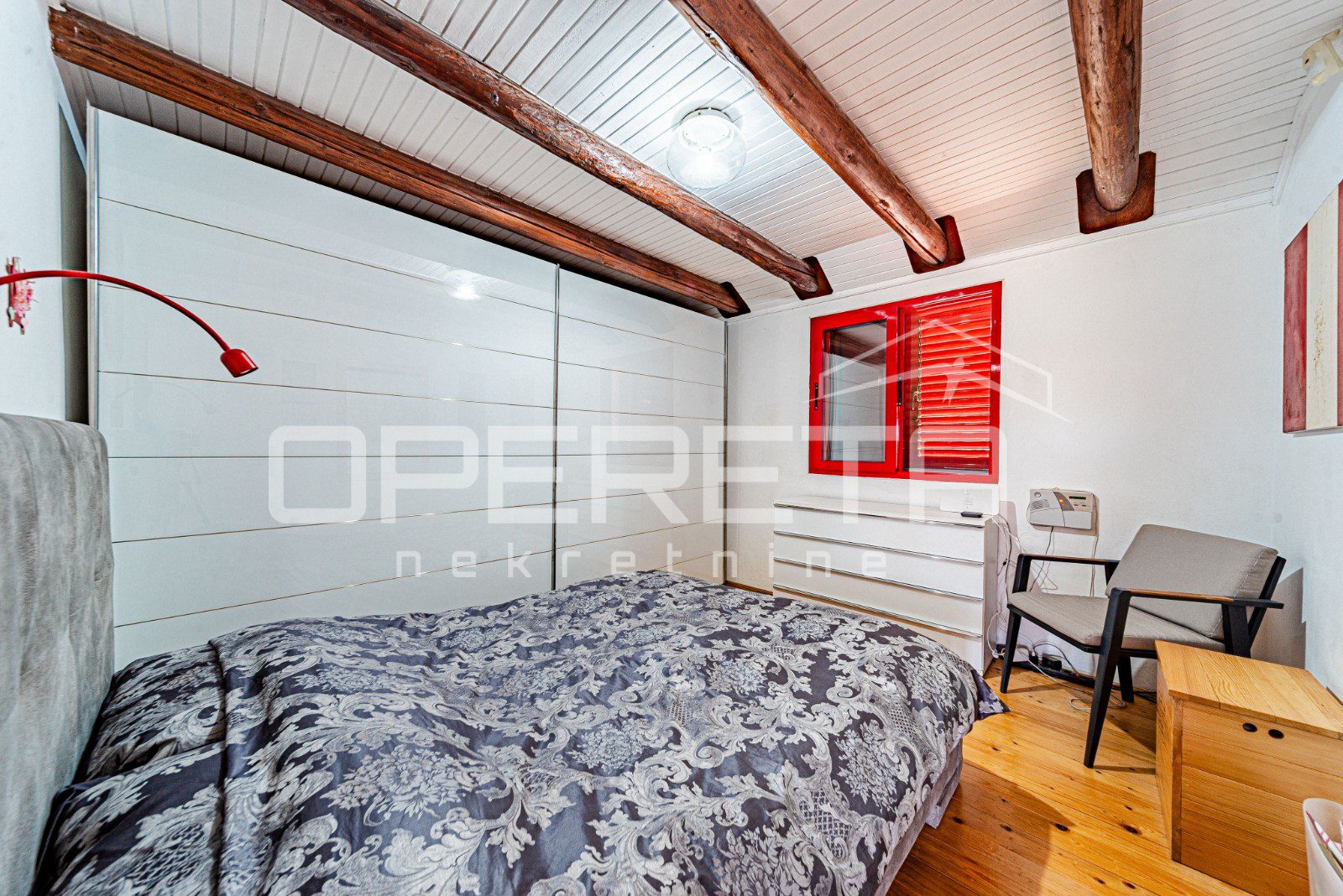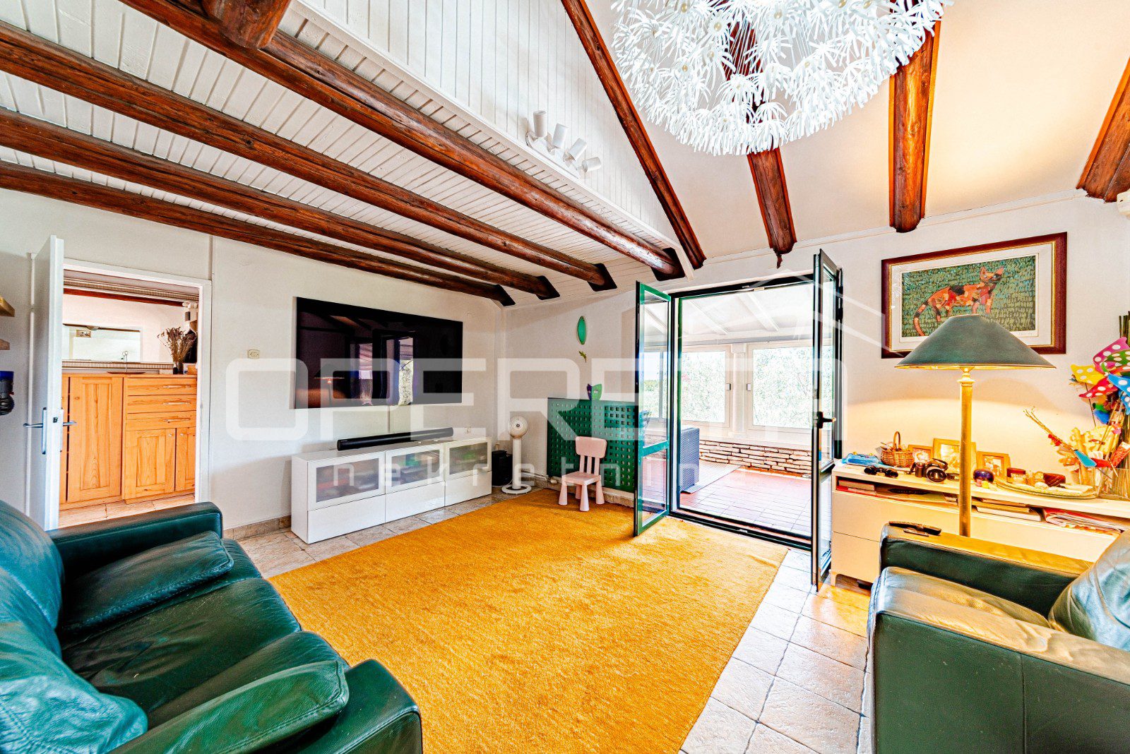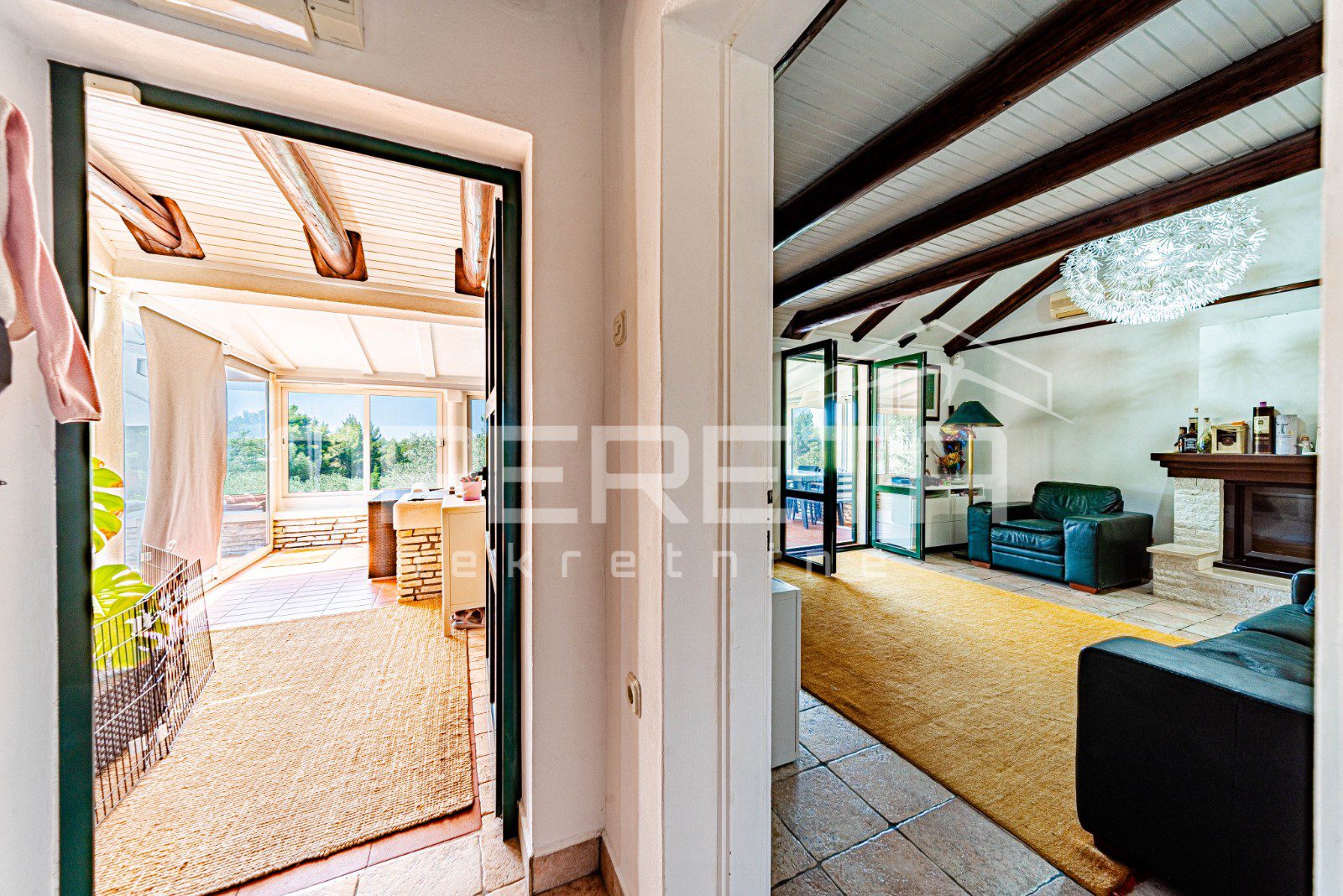 Na parceli od 2914 m², s kamenim suhozidima i pažljivo uređenom okućnicom, smješten je objekt neto stambene površine oko 100 m², raspoređen na dvije etaže. U prizemlju se nalazi moderna kuhinja s blagovaonicom, kupaonica i glavna spavaća soba, dok dnevni boravak besprijekorno komunicira sa zatvorenom terasom zahvaljujući velikoj, visokokvalitetnoj staklenoj stijeni koja omogućuje obilje prirodnog svjetla i neometan pogled na okolnu prirodu. Na katu je smještena dječja soba koja nudi idealan prostor za djecu i obiteljski boravak.
