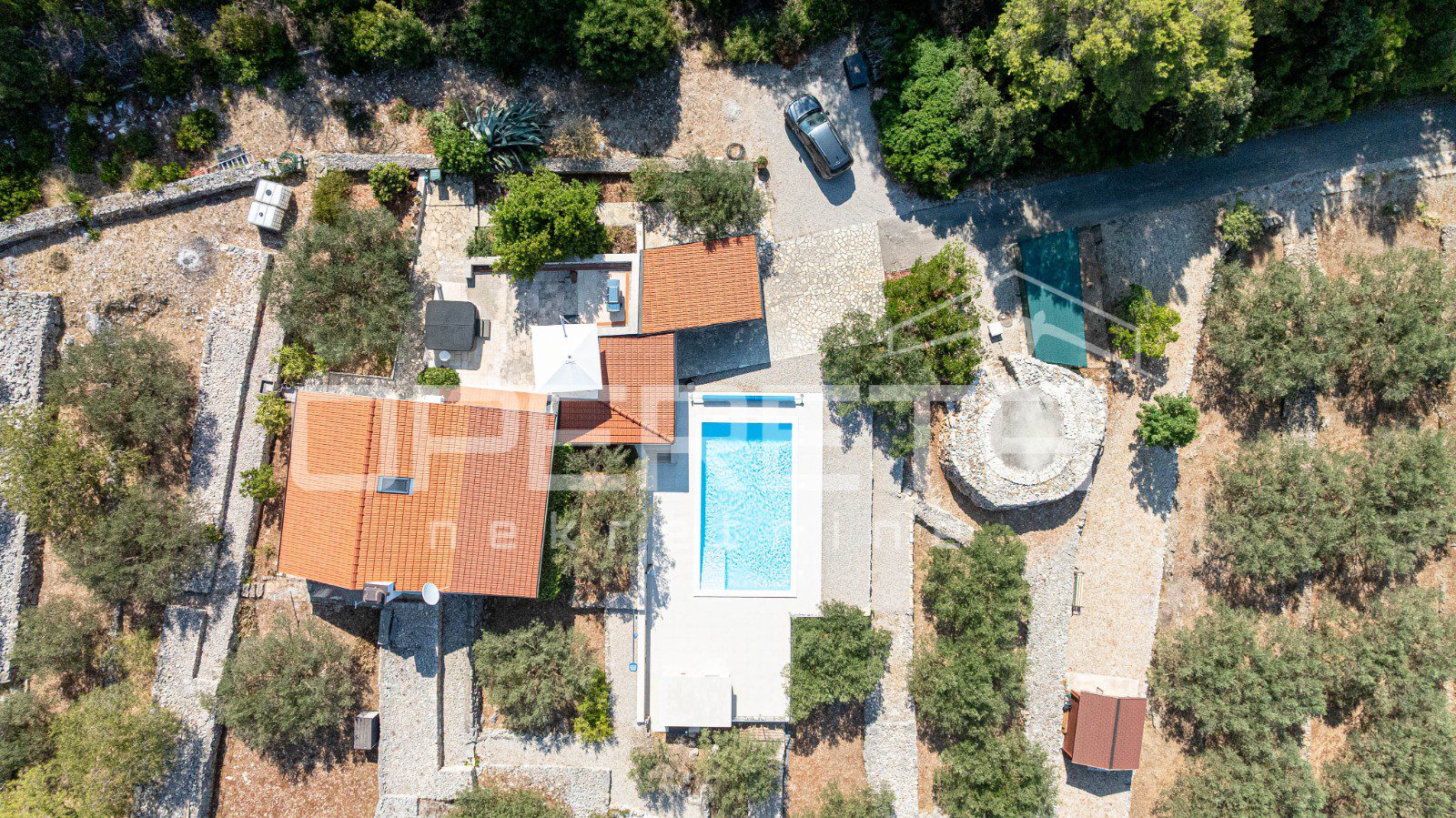 Na zapadnoj strani otoka Korčule, u mirnom i zaštićenom okruženju Potirne, smještena je ova ekskluzivna kuća koja spaja vrhunsku udobnost, mediteranski šarm i potpunu privatnost. Okružena njegovanom prirodom, maslinikom i autentičnom dalmatinskom vegetacijom, a udaljena svega desetak minuta vožnje od Vele Luke i približno tisuću metara od mora, predstavlja savršeno mjesto za život ili opuštanje na visokoj razini.