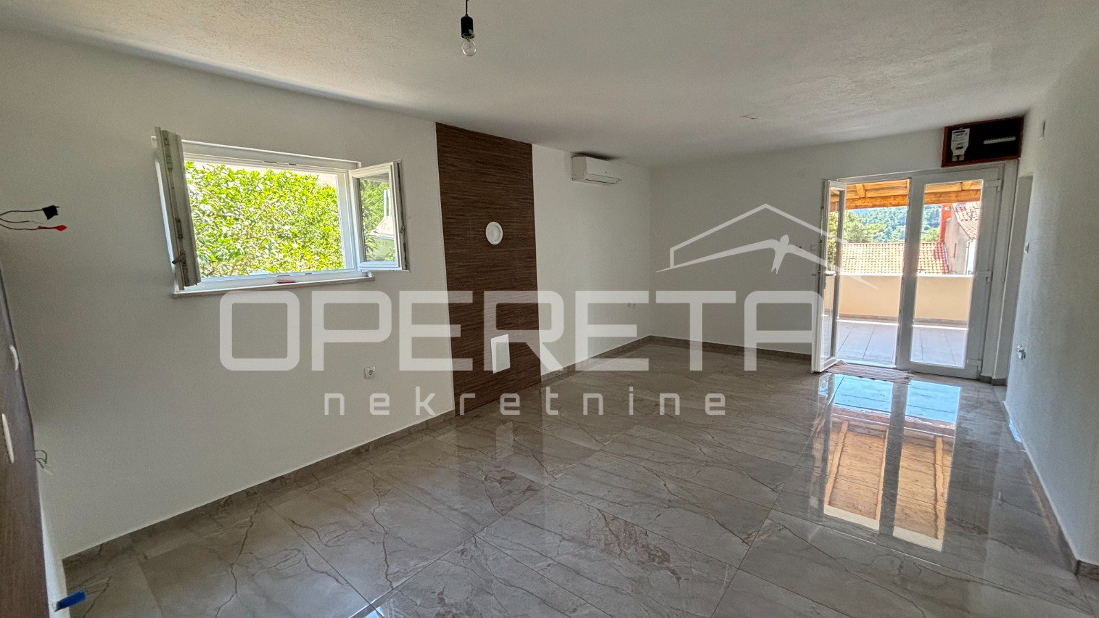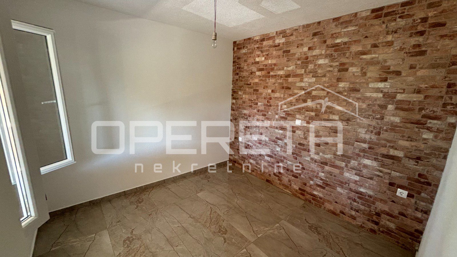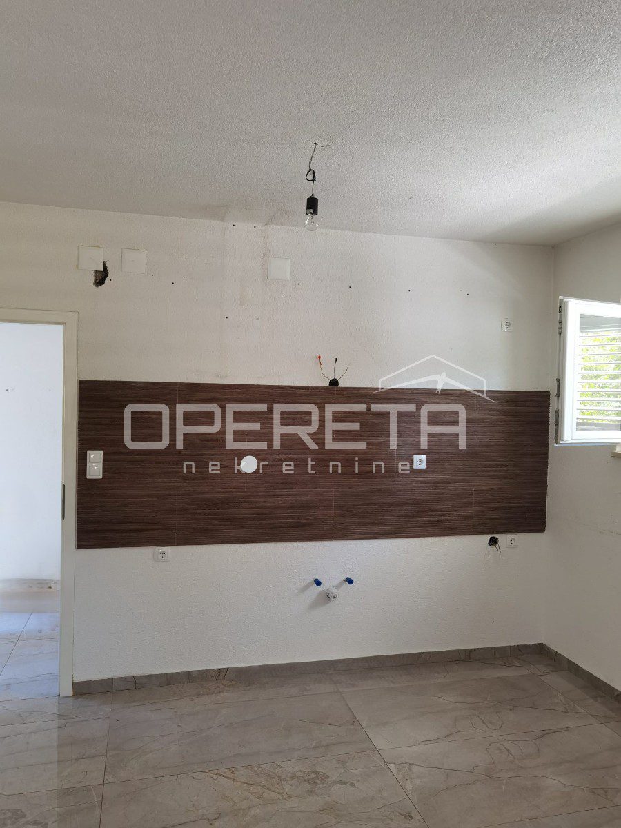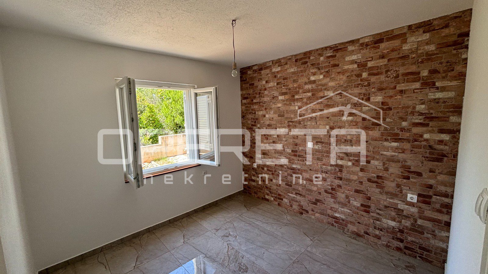 Donji kat kuće nedavno je potpuno renoviran i spreman za opremanje prema vlastitim željama i potrebama. Prostor se sastoji od kuhinje povezane s blagovaonicom i dnevnim boravkom, dvije spavaće sobe, male praonice te prostrane kupaonice. Iako još nije opremljen namještajem, ovaj prostor je svježe uređen, moderan i izuzetno funkcionalan – idealan za obiteljski život ili kao turistički apartman.
