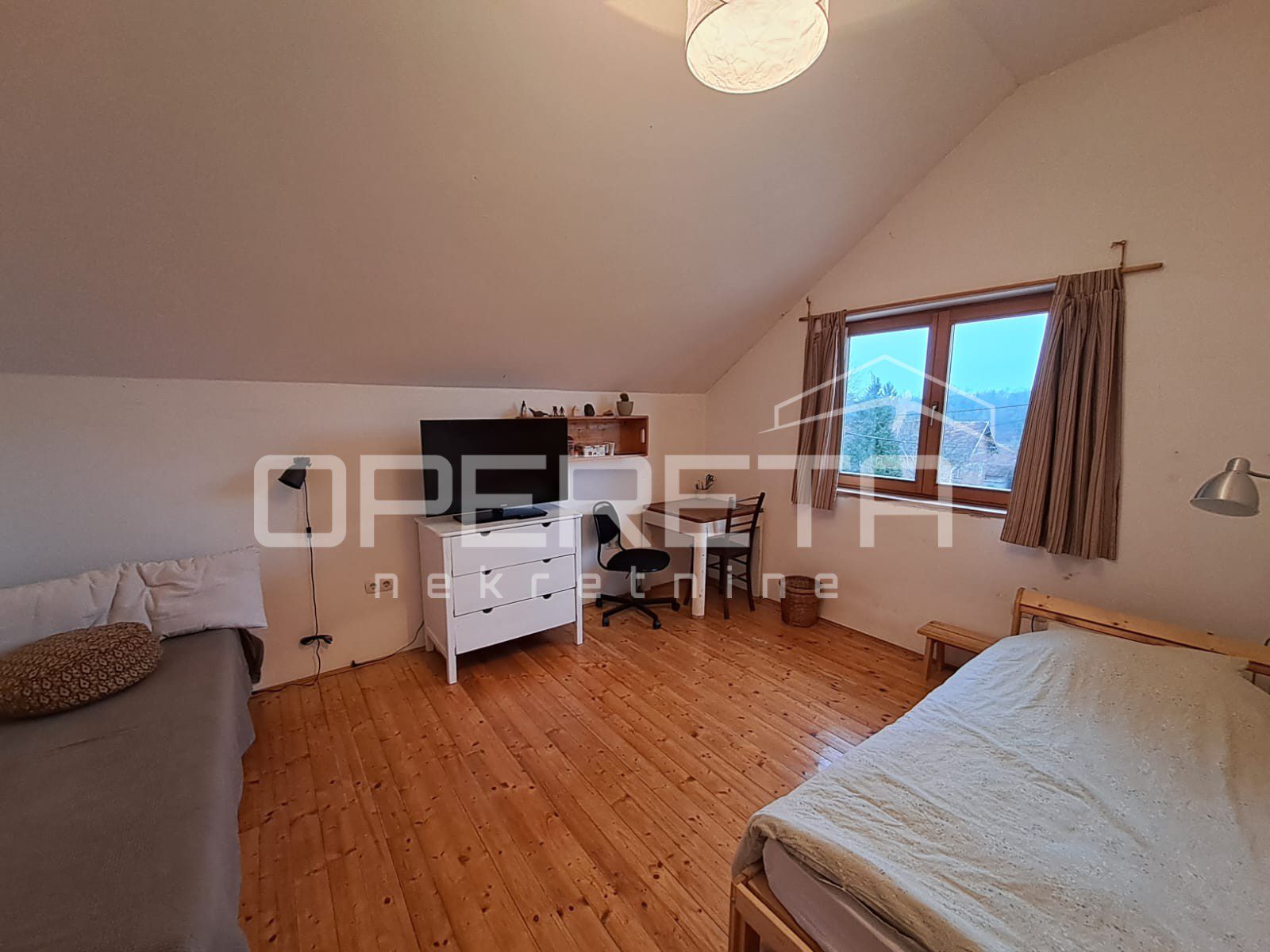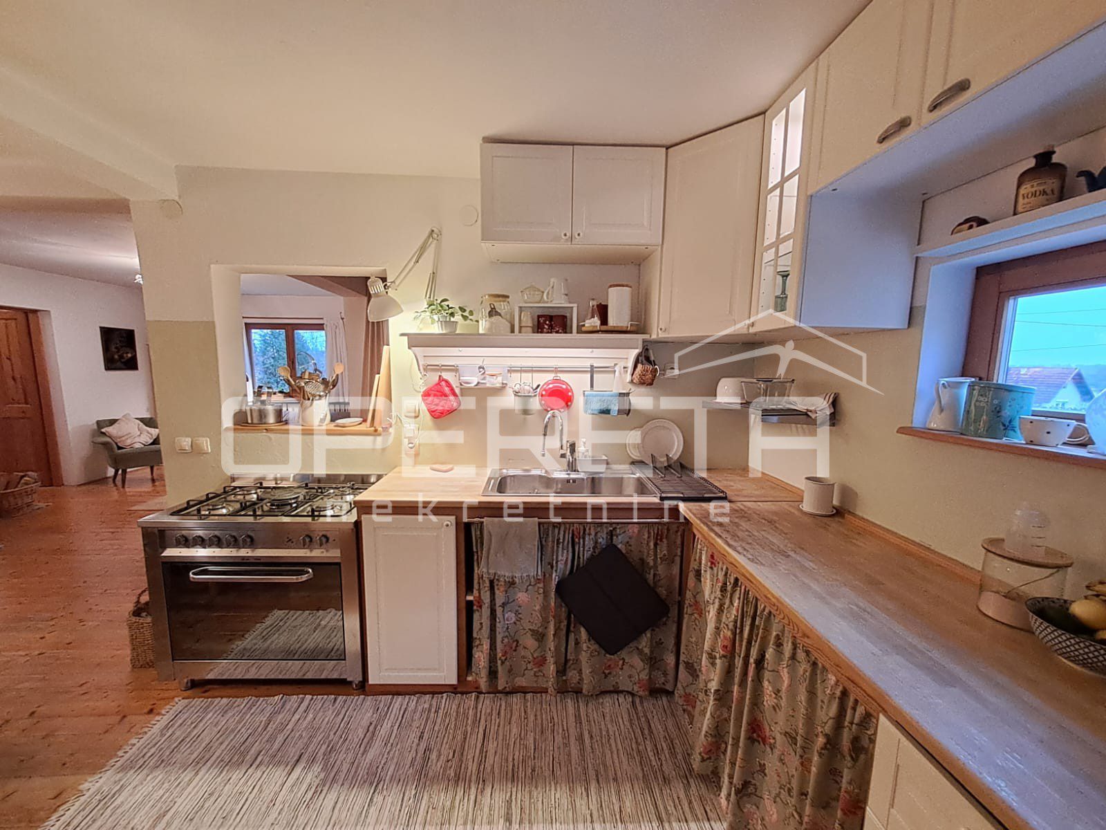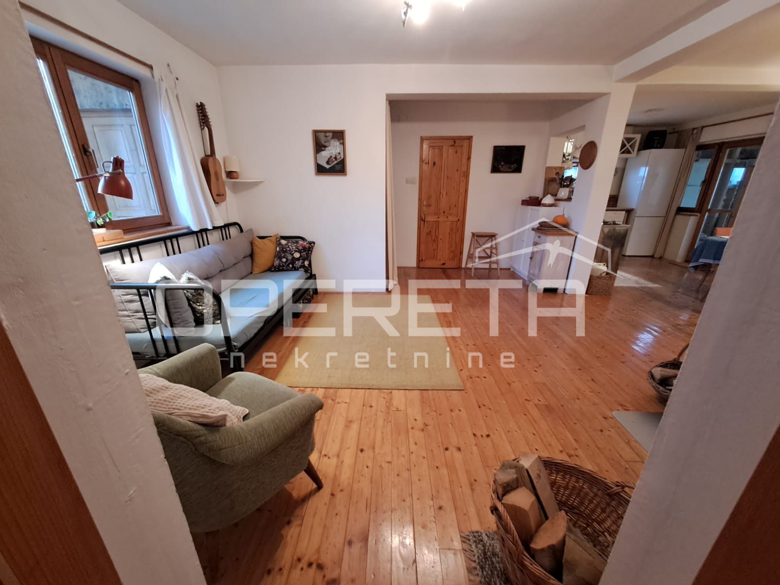 Na parceli od 1007m2 odlična, održavana kuća s vrtom i velikom okućnicom. Kuća se prostire u prizemlju na 92m2 kroz “open soace” dnevni boravak s blagovaonicom i kuhinjom, dvije prostrane sobe, wc s vešerajem i izlaz preko terase na vrt iza kuće. Na katu imamo 2 sobe i kupaonicu s wc-om na 45m2.