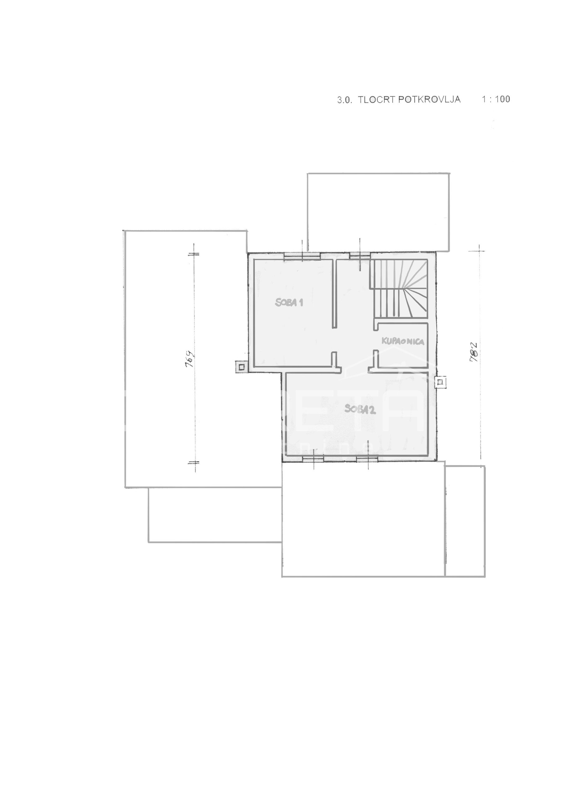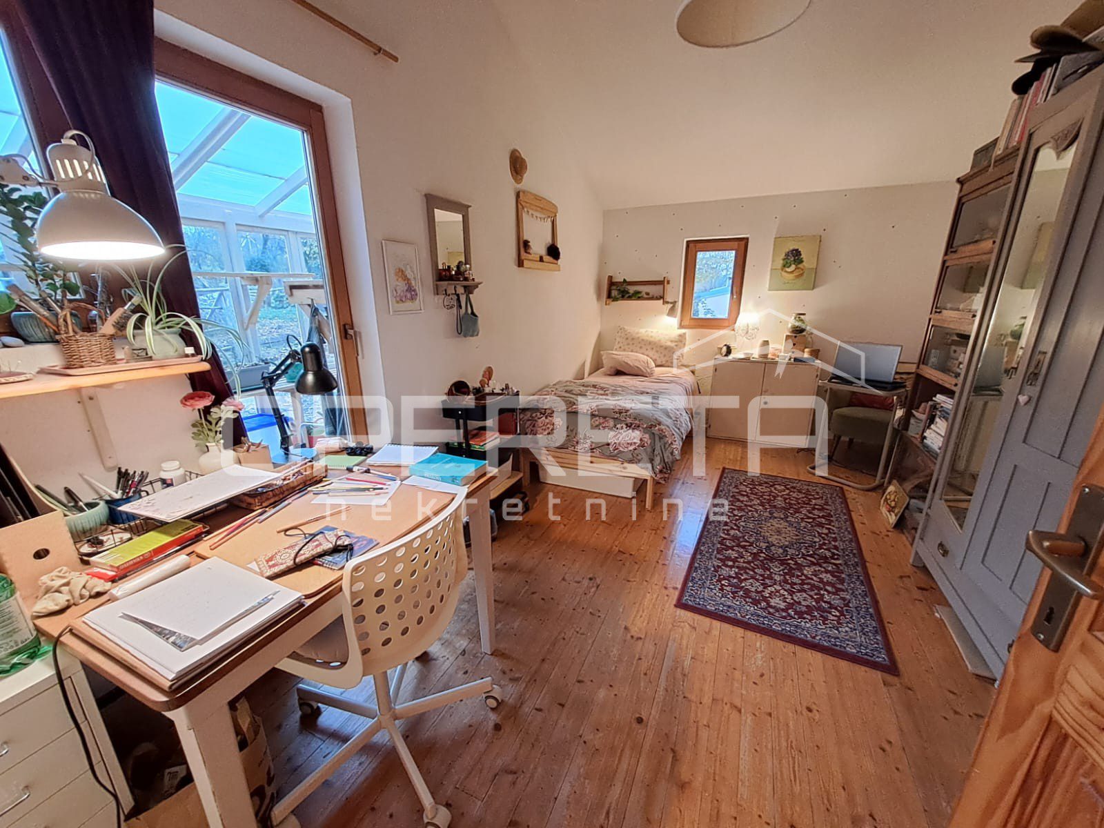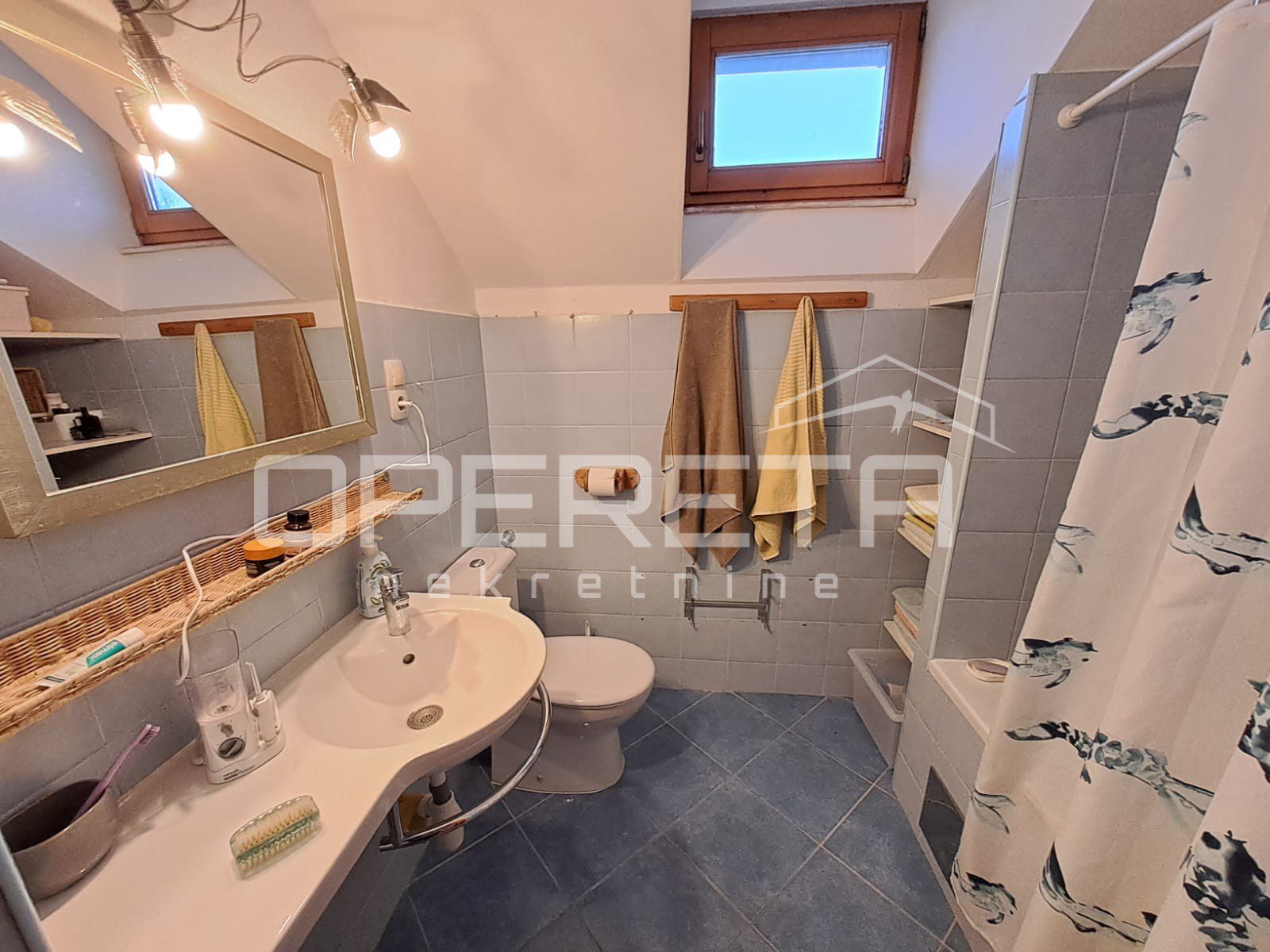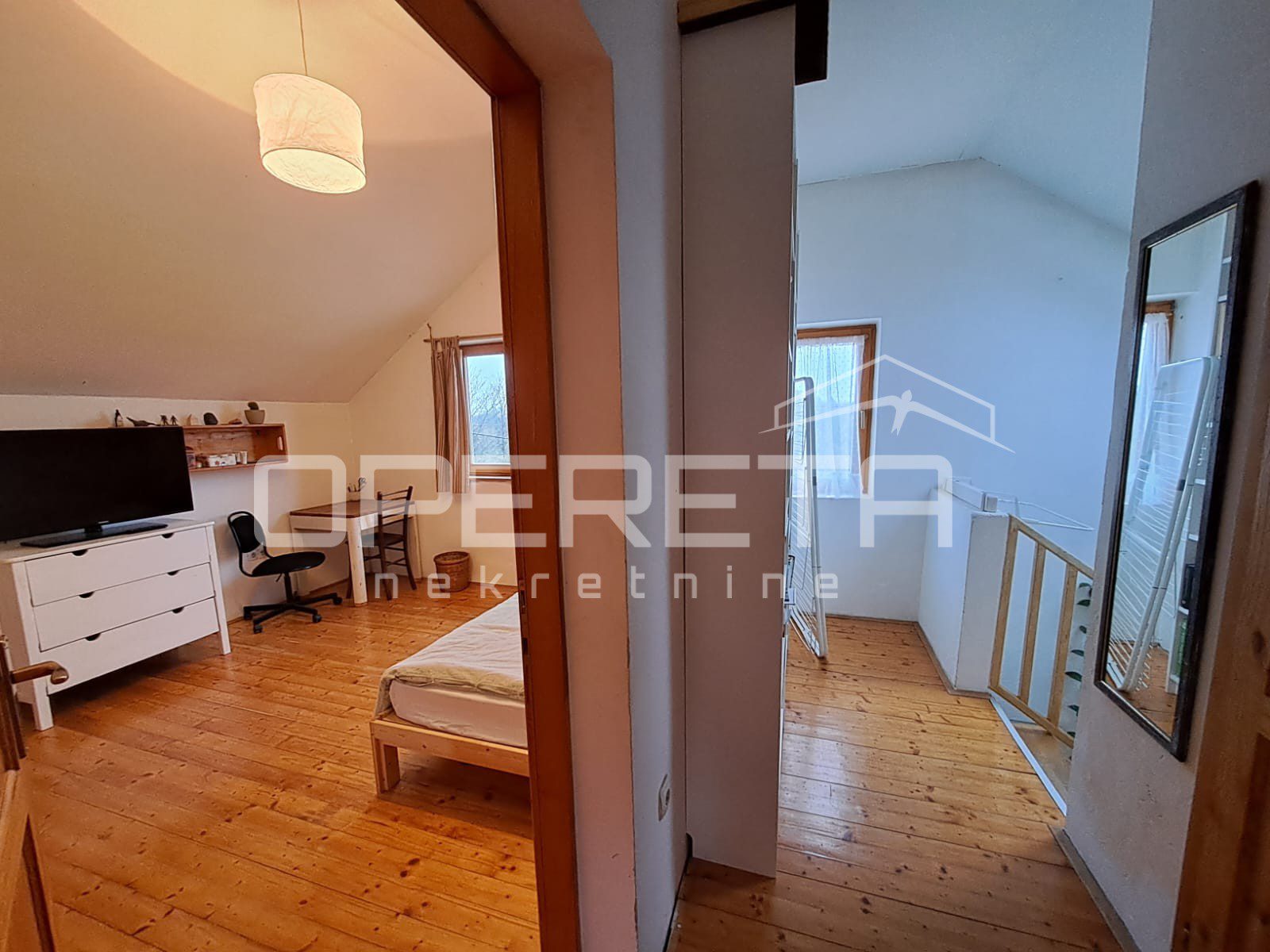 Na parceli od 1007m2 odlična, održavana kuća s vrtom i velikom okućnicom. Kuća se prostire u prizemlju na 92m2 kroz “open soace” dnevni boravak s blagovaonicom i kuhinjom, dvije prostrane sobe, wc s vešerajem i izlaz preko terase na vrt iza kuće. Na katu imamo 2 sobe i kupaonicu s wc-om na 45m2.