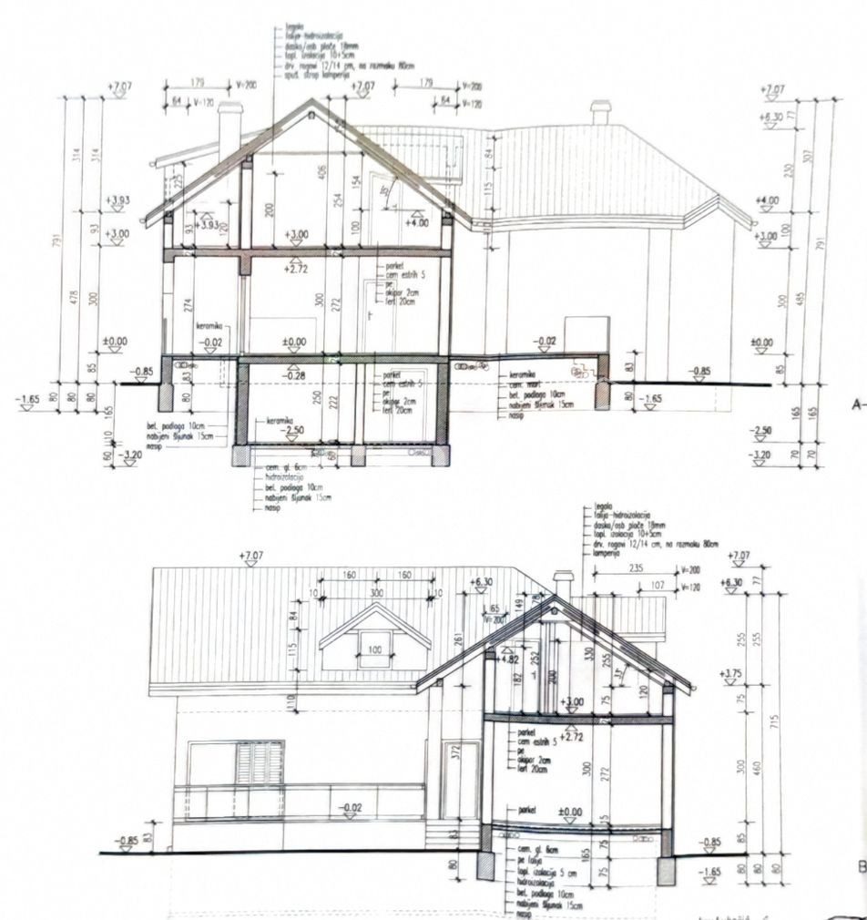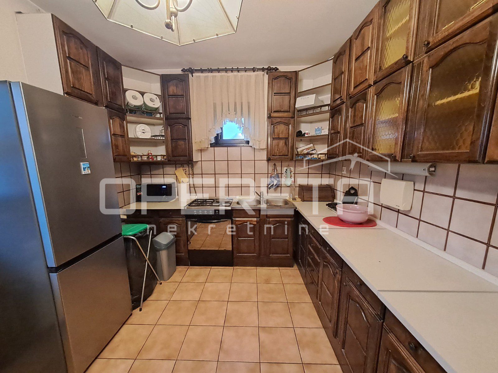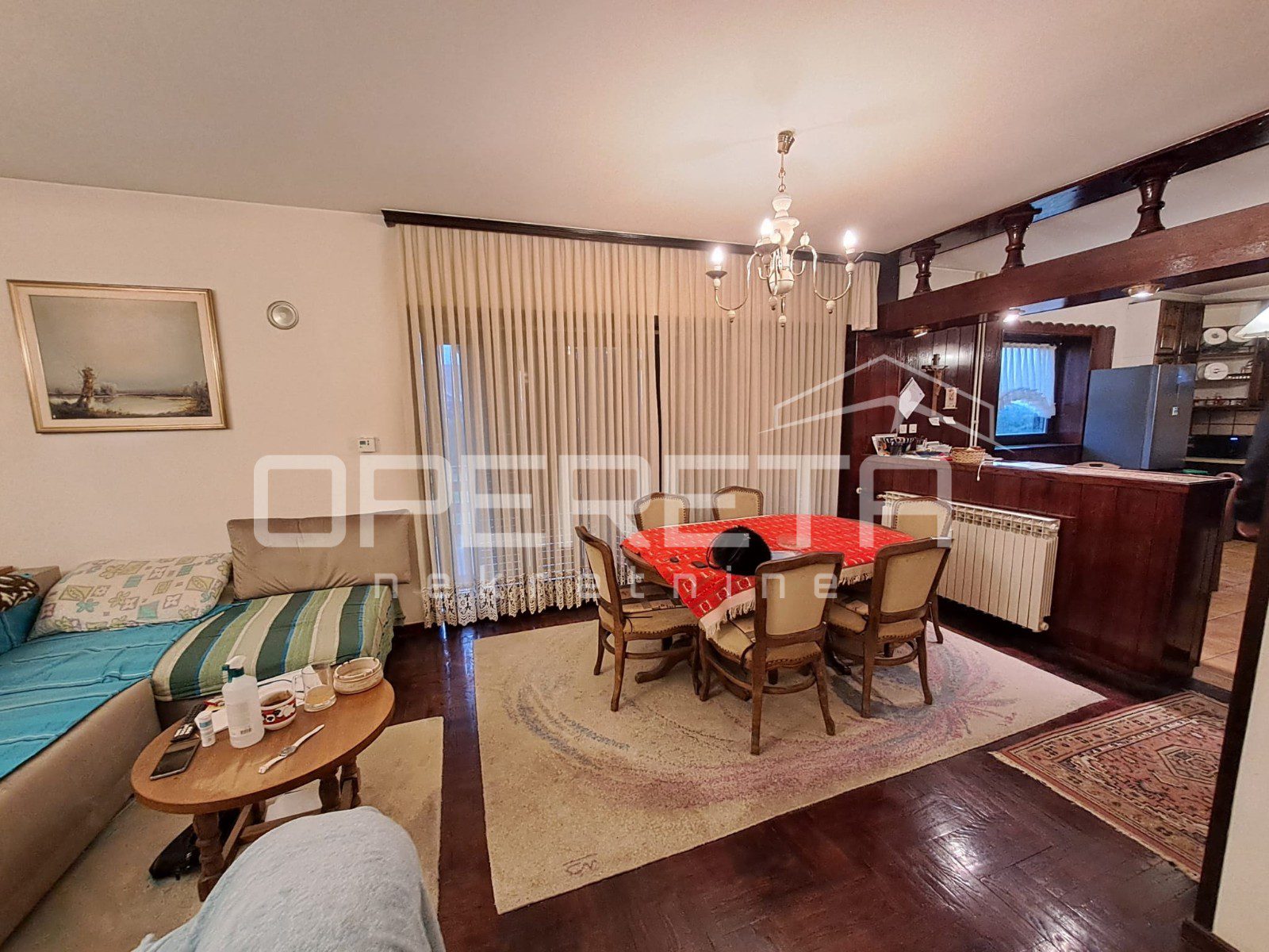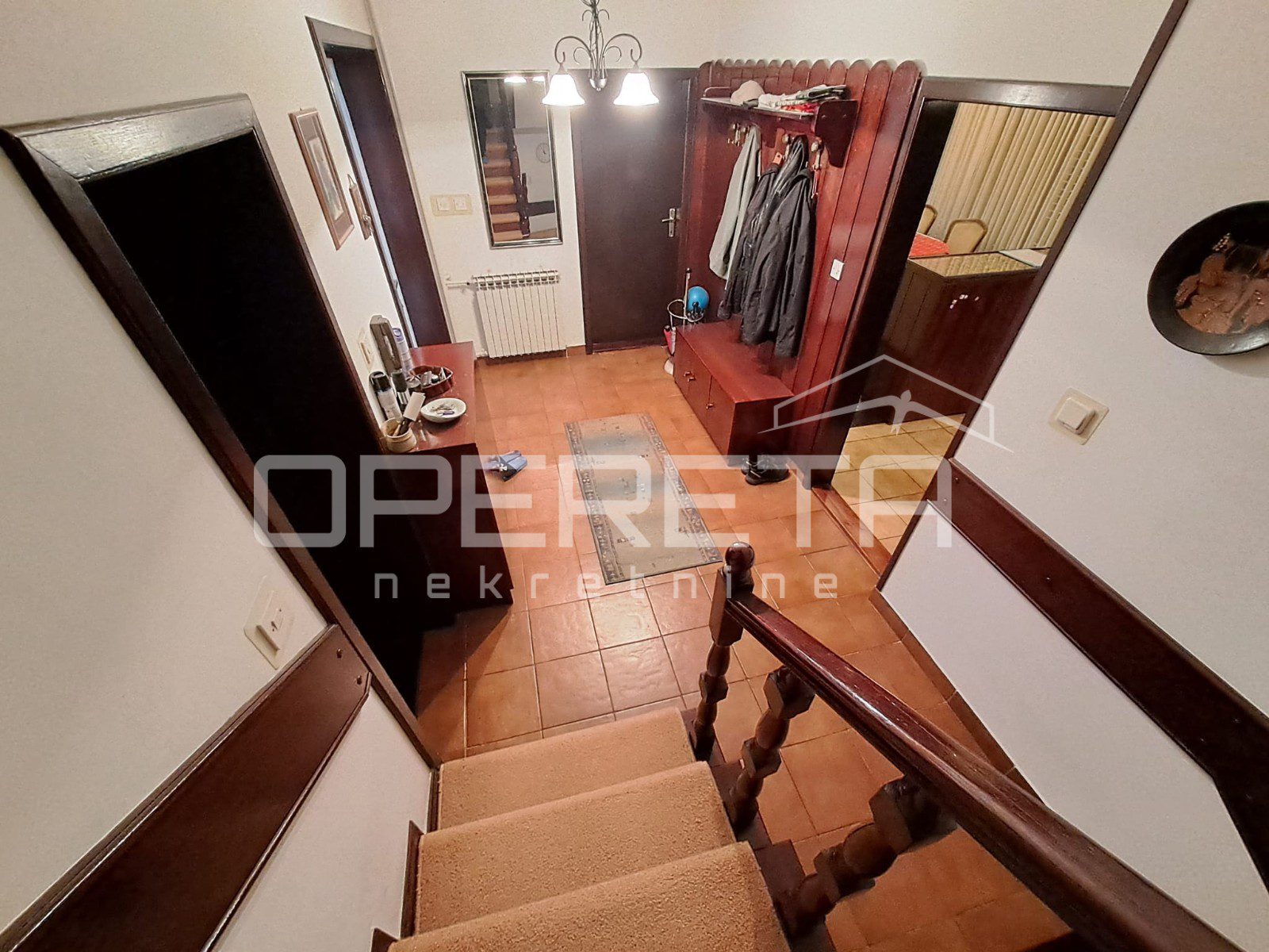 Odlična samostojeća katnica, građena s puno armirano betonskih dijelova preko podruma, ugaonih serklaža do zidova debelih 40 cm. Jako kvalitetna, održavana kuća koja se prostire na 116m2 prizemlja i 103m2 potkrovlja povezanih unutarnjim stepeništem. Ispod kuće je veliki podrum od 65m2 kroz 4 prostorije. Kuća je suha, s provedenom drenažom, topla, s odličnom izolacijom. Iza kuće je dvostruka dupla garaža od 69 m2 za 4 auta ili za radionicu. Prekrasna parcela s vrtom ispred i iza kuće, smještena u mirnoj ulici, a kuća je uvućena od ceste. Sva dokumentacije je uredna i moguće ju je kupiti kreditom. Sva eventualna ulaganja bila bi samo iz kozmetičkih razloga. Prilika!