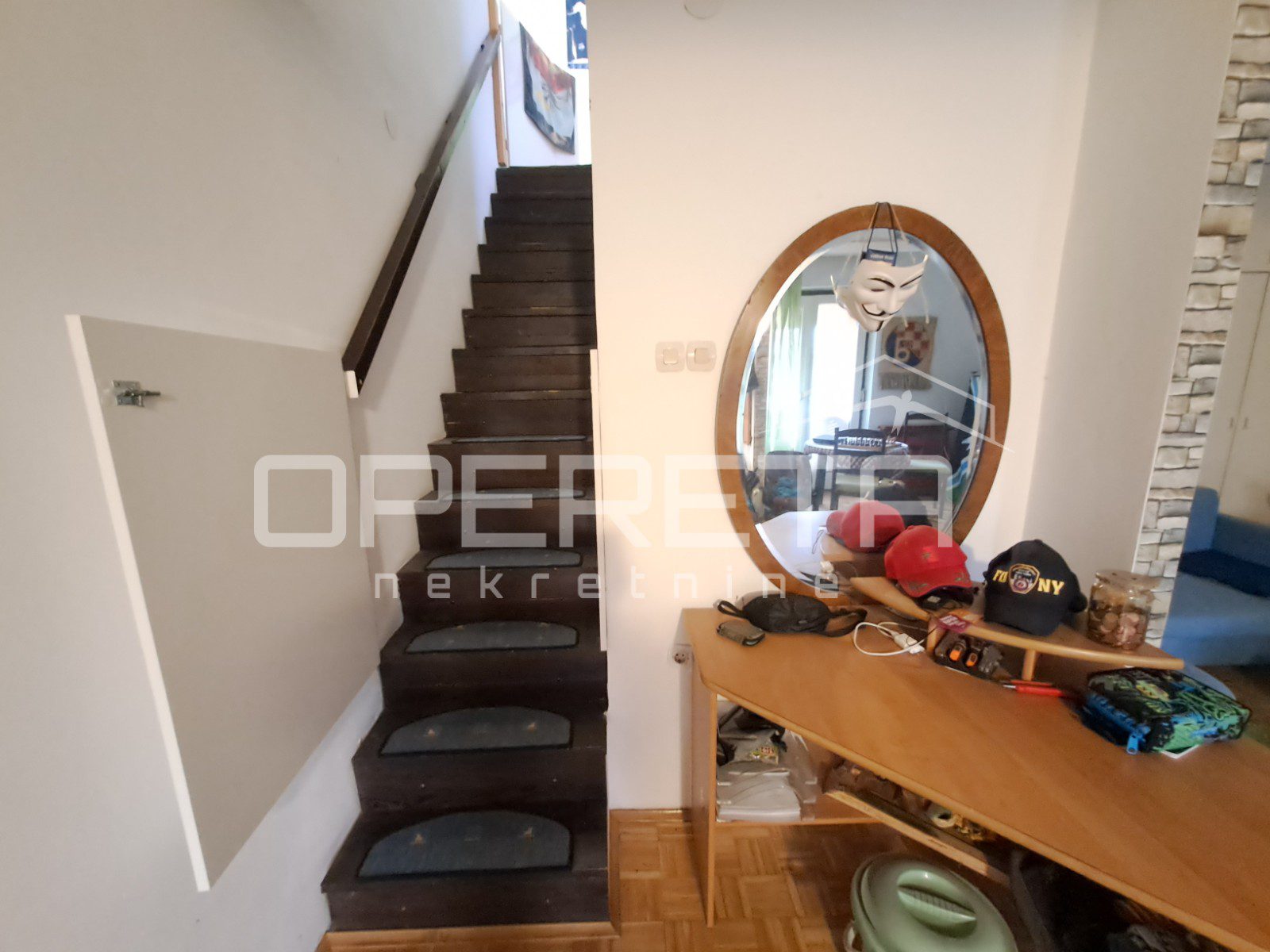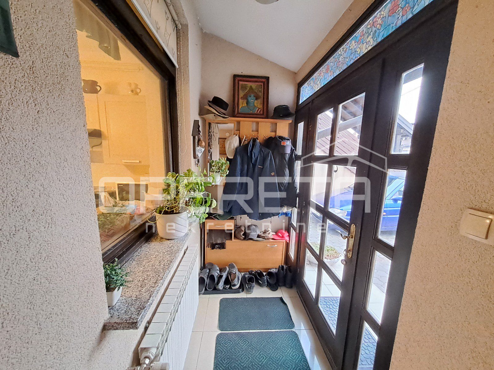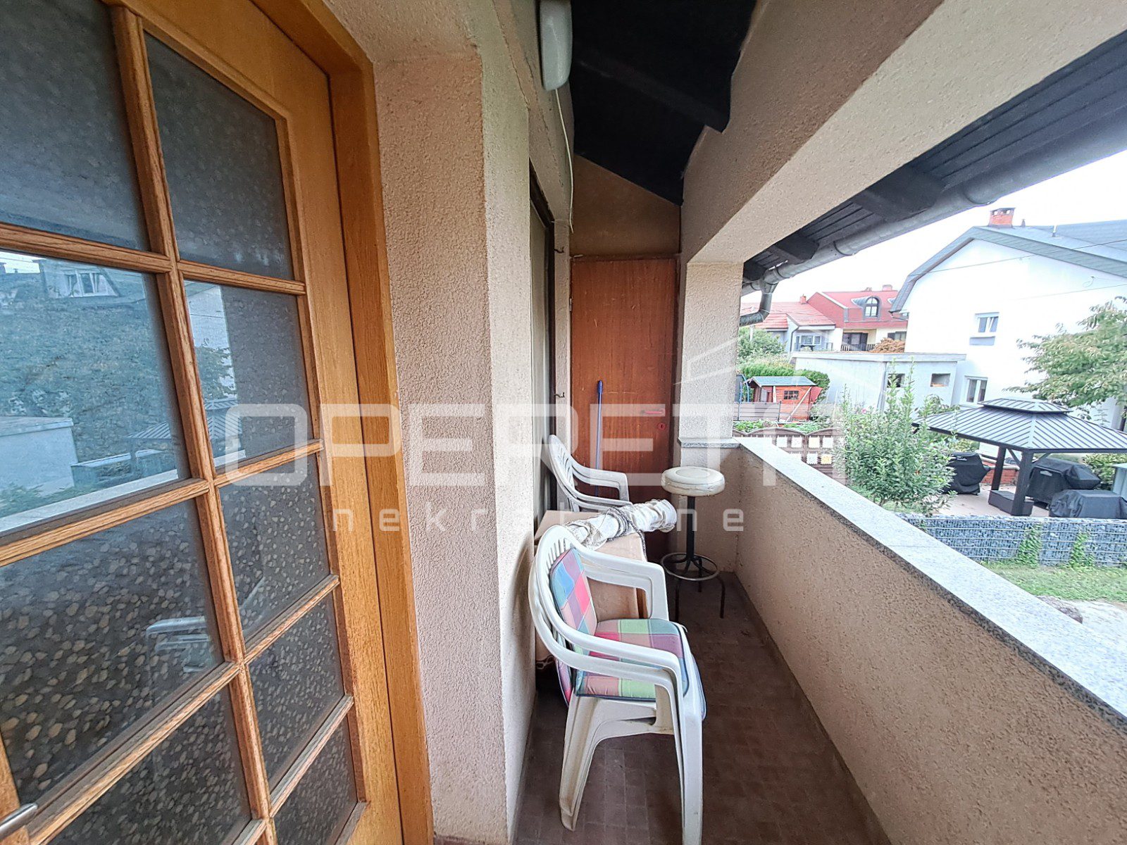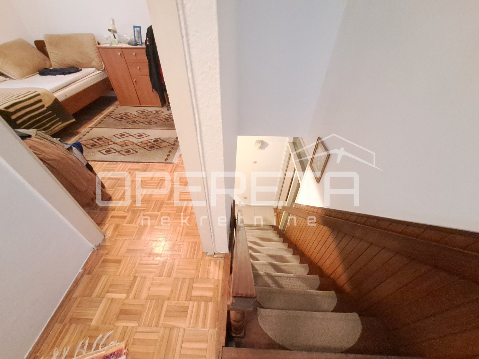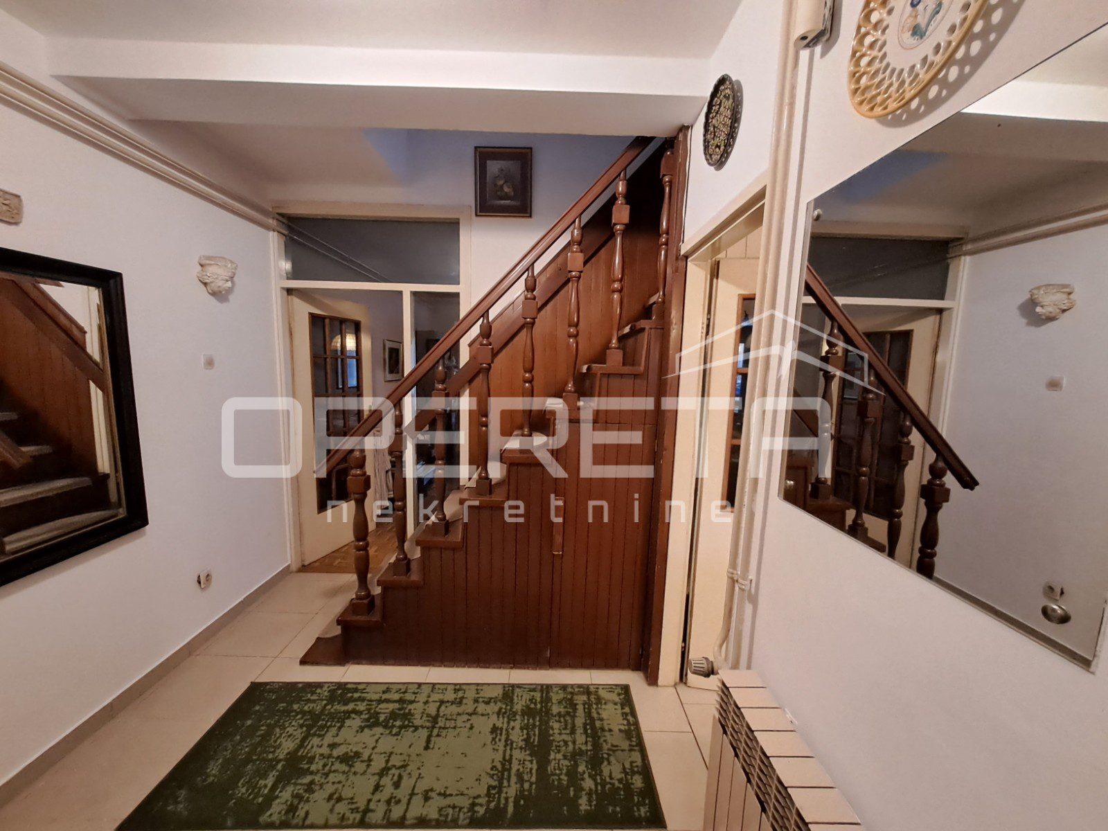 Zanimljiva kuća na odličnoj lokaciji u Velikoj Gorici u neposrednoj blizini osnovne škole, dućana, vrtića..Kuća se jednom stranom dodiruje s drugom, a na drugoj strani je garaža i terasa koja je u doticaju s drugom kućom. Kuća može funkcionirati kao dva odvojena stana ili kao cjelina. Proteže se od prizemlja gdje imamo dnevni boravak, blag+kuhinja, wc, predsoblje, kotlovnicu, spremište ukupno 50m2 NKP +izlaz na vrt od 143m2 preko terase i dvije garaže. Stepenicama se ide na kat gdje je jedna soba i kupaonica s wc-om i izlaz na dvije terase. Sveukupno taj stan ima 70m2. Drugi stan ima zaseban ulaz i sastoji se od dnevnog boravka na 1. katu, a u potkrovlju od sobe, kuhinje i kupaonice s wc-om, sveukupno 50m2. Jedno od većih dvorišta u kvartu s prednje strane prilazom i parkirnim mjestima, a sa stražnje vrlo lijepim vrtom. Iako okruženo kućama, kuća daje privatnost i mir. Preporuke!