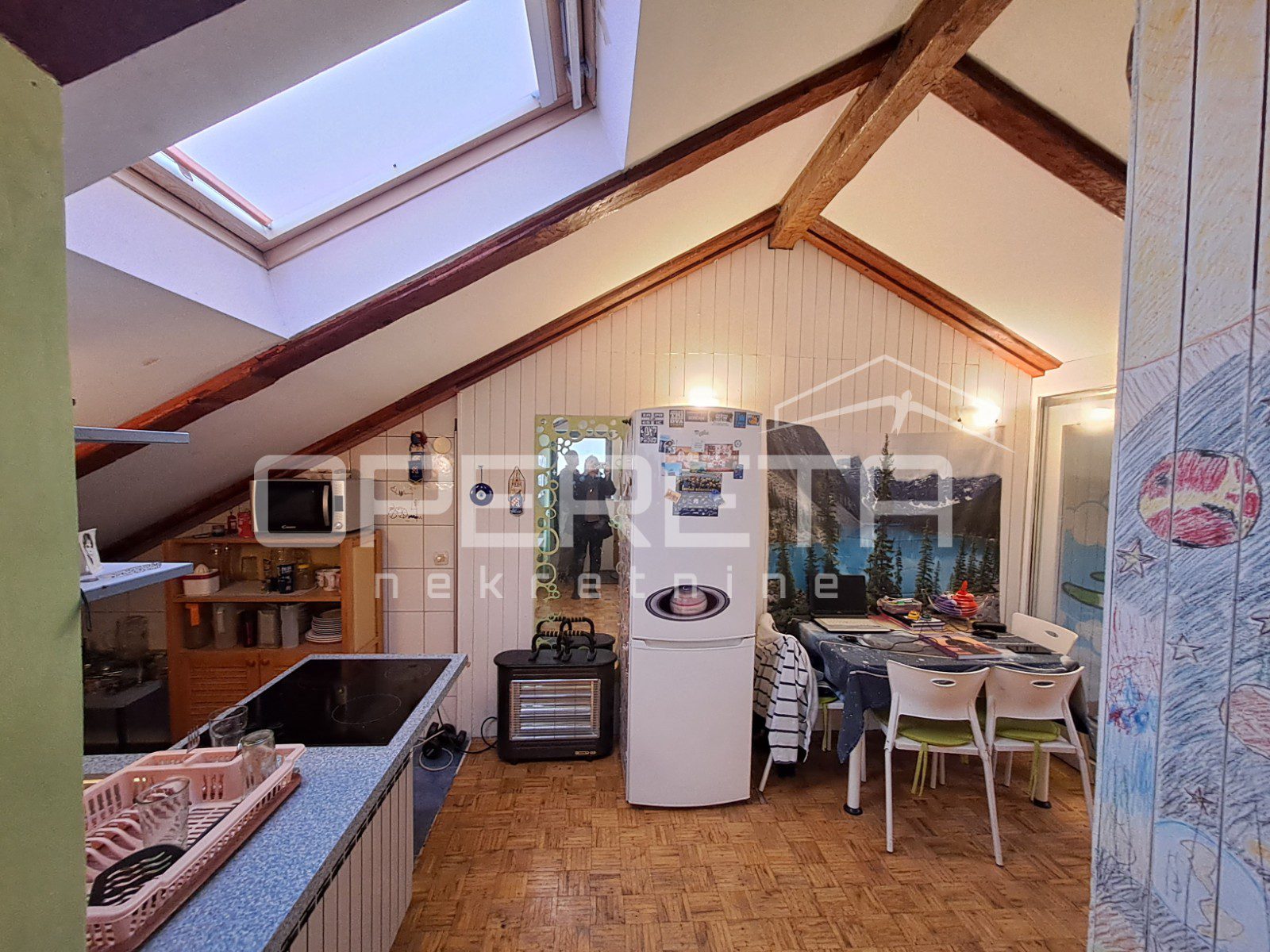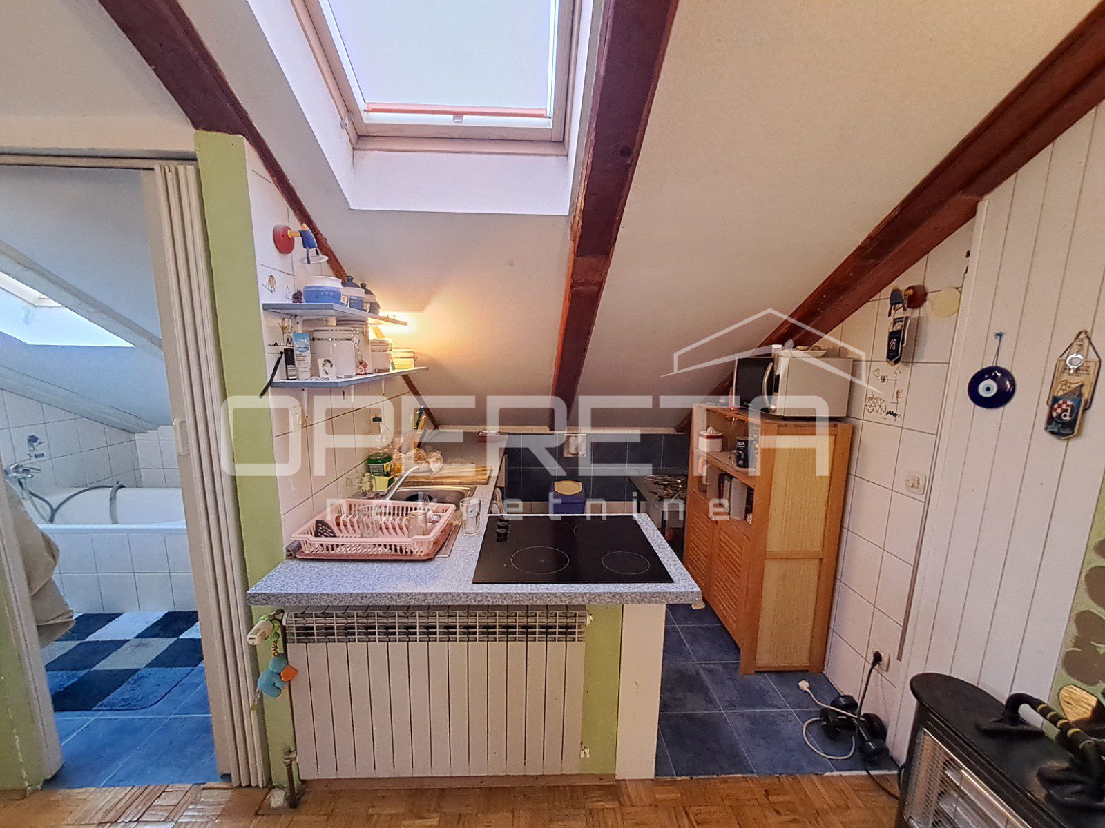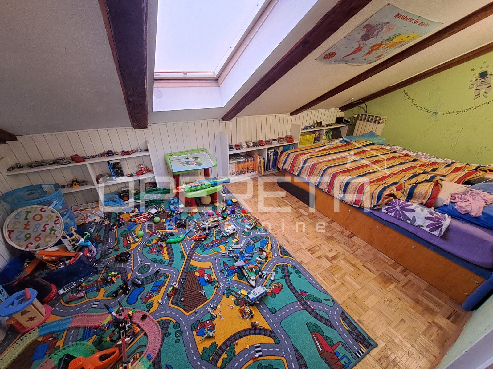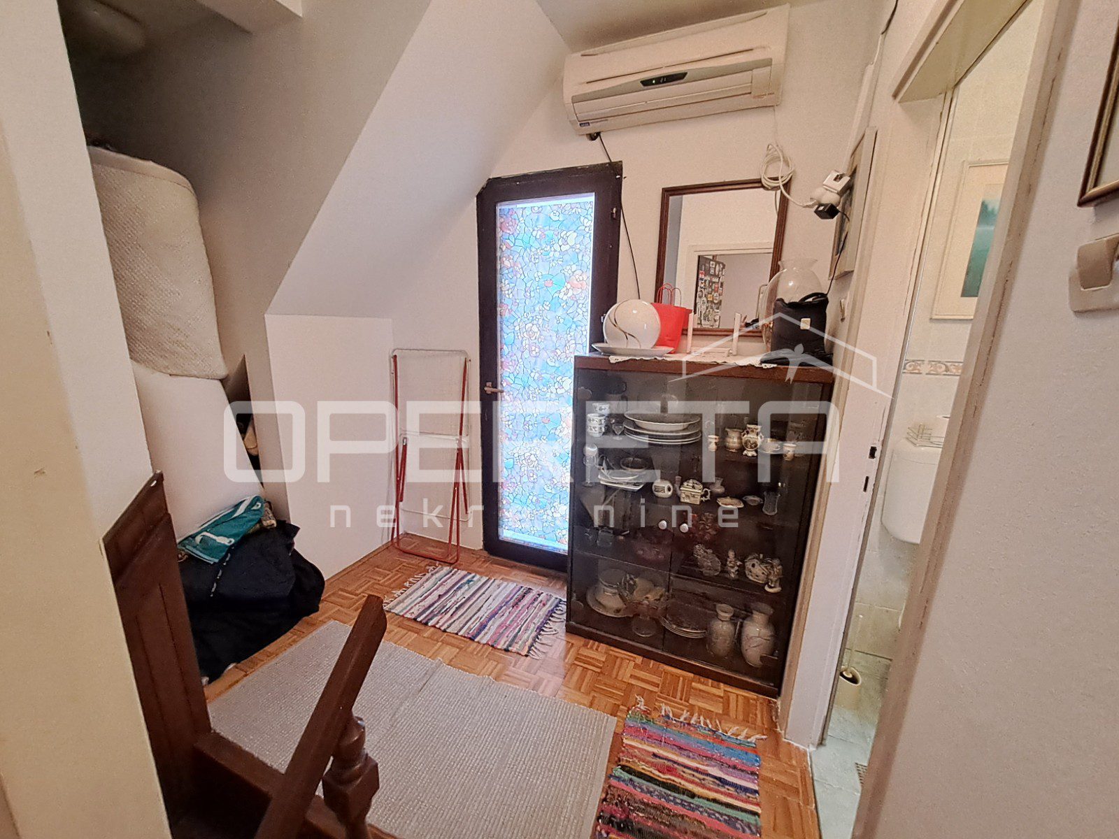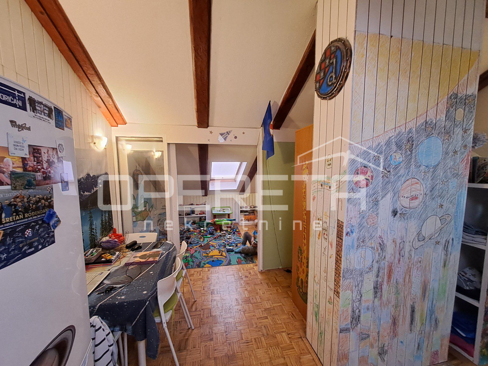 Zanimljiva kuća na odličnoj lokaciji u Velikoj Gorici u neposrednoj blizini osnovne škole, dućana, vrtića..Kuća se jednom stranom dodiruje s drugom, a na drugoj strani je garaža i terasa koja je u doticaju s drugom kućom. Kuća može funkcionirati kao dva odvojena stana ili kao cjelina. Proteže se od prizemlja gdje imamo dnevni boravak, blag+kuhinja, wc, predsoblje, kotlovnicu, spremište ukupno 50m2 NKP +izlaz na vrt od 143m2 preko terase i dvije garaže. Stepenicama se ide na kat gdje je jedna soba i kupaonica s wc-om i izlaz na dvije terase. Sveukupno taj stan ima 70m2. Drugi stan ima zaseban ulaz i sastoji se od dnevnog boravka na 1. katu, a u potkrovlju od sobe, kuhinje i kupaonice s wc-om, sveukupno 50m2. Jedno od većih dvorišta u kvartu s prednje strane prilazom i parkirnim mjestima, a sa stražnje vrlo lijepim vrtom. Iako okruženo kućama, kuća daje privatnost i mir. Preporuke!