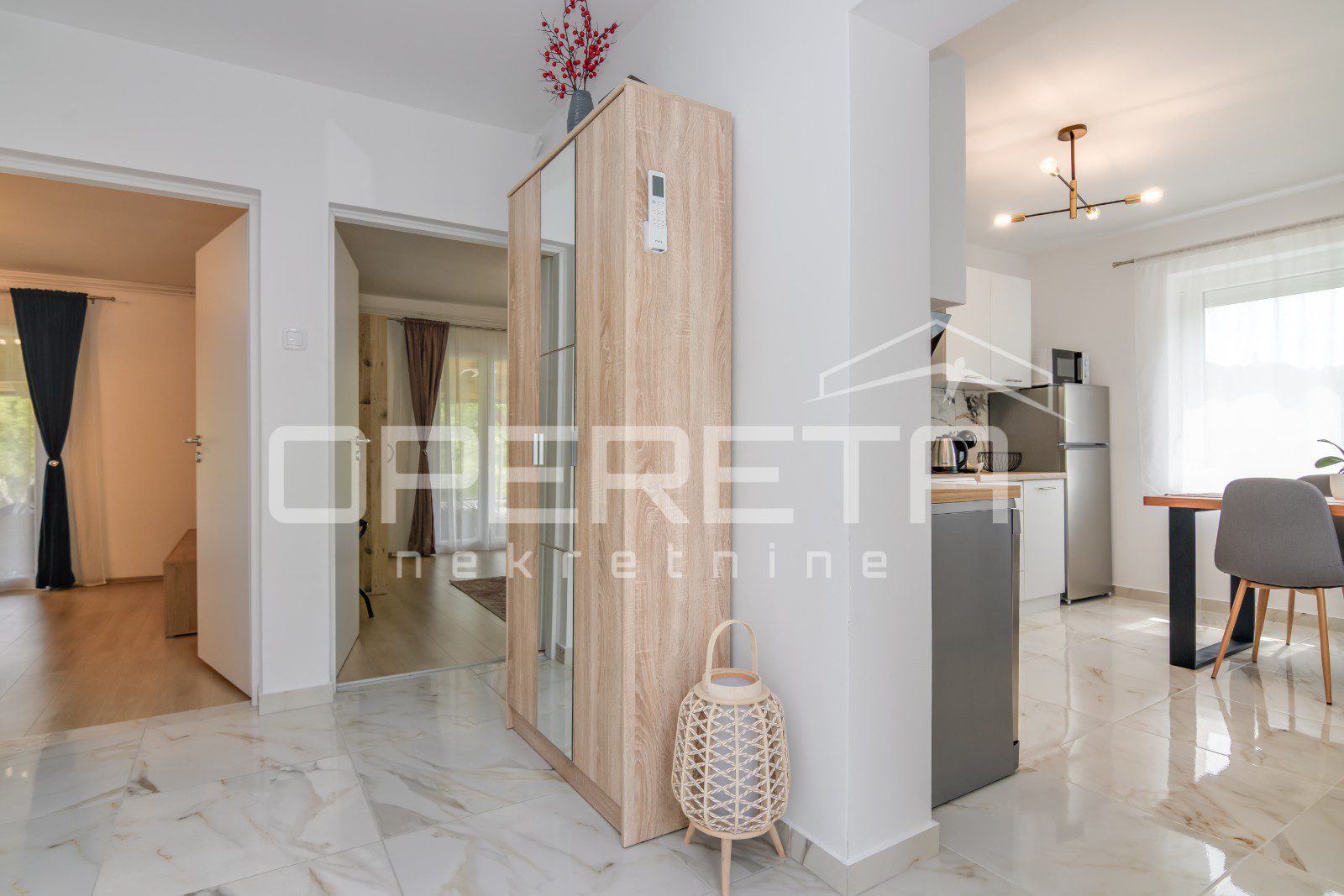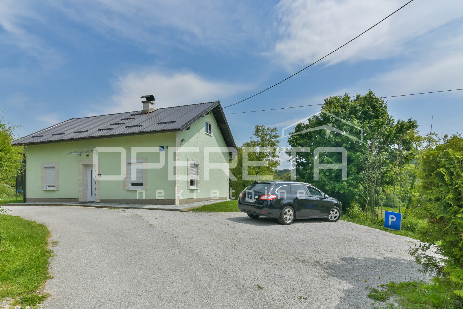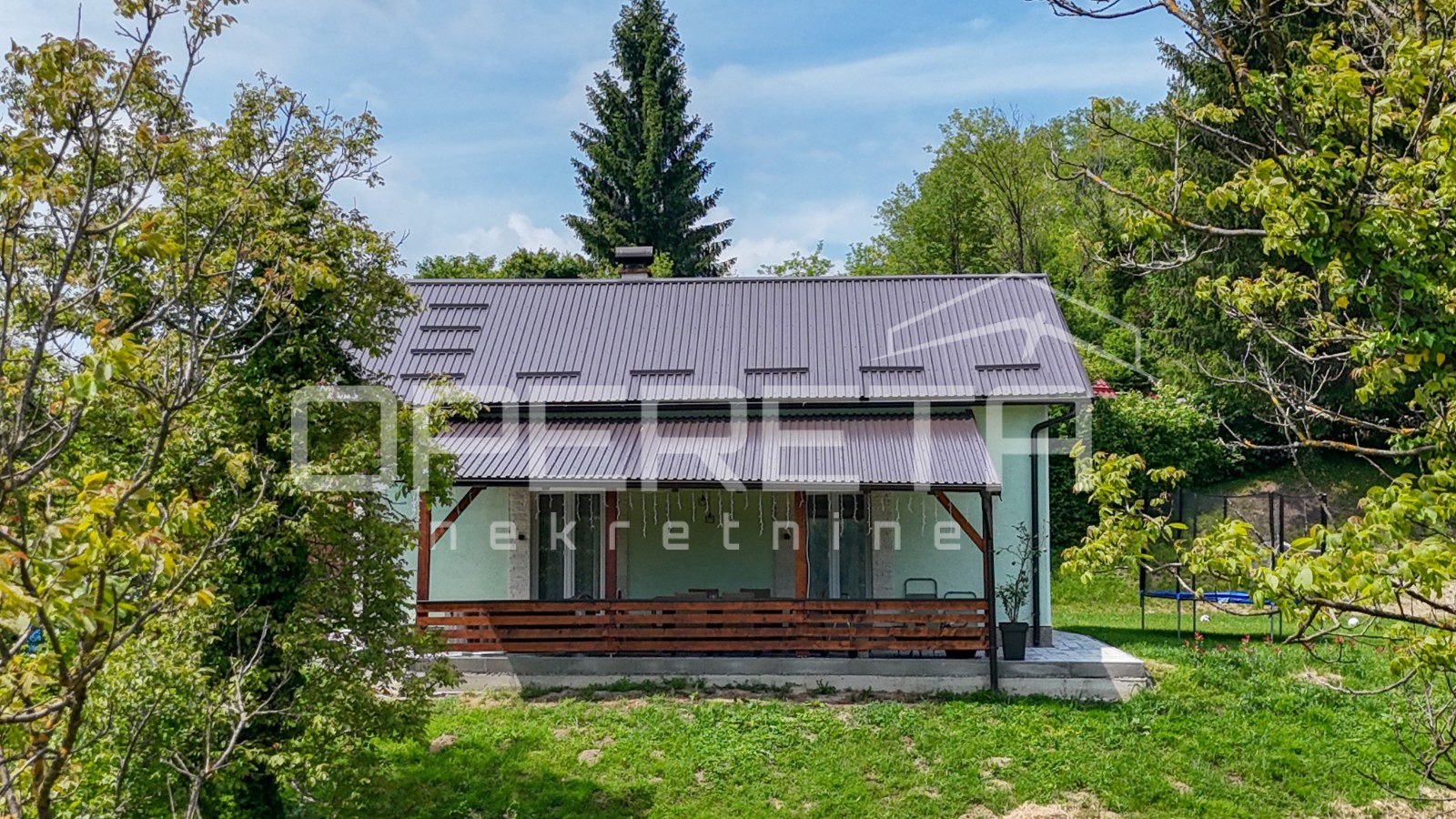 Samostojeća prizemnica s prekrasnim panoramskim pogledom, orijentacije I-Z-S-J, od 81 m2 smještena na zemljištu od 13.666 m2. Sastoji se od 2 spavaće/radne sobe, kuhinje s blagovaonicom, kupaonice, ostave i hodnika. 2023. g. postavljene nove toplinske instalacije, renovirana kupaonica i novi krov. U dvorištu se nalazi i pomoćni objekt te mjesto za parkiranje do 10 automobila. Okućnica ( 5100 m2) ima blagi nagib i prekrasan pogled na zelenilo i okolne brežuljke. Idilična, izolirana lokacija koja pruža mir, u blizini ( do 3 min vožnje) centra Velikog Trgovišća i potrebnih sadržaja ( škola. vrtić, dom zdravlja, trgovine i dr.). Vlasništvo uredno. Moguća kupnja i kreditom. Prilika za život u zelenilu i mirnom okruženju ili za investiciju i bavljenje turizmom.