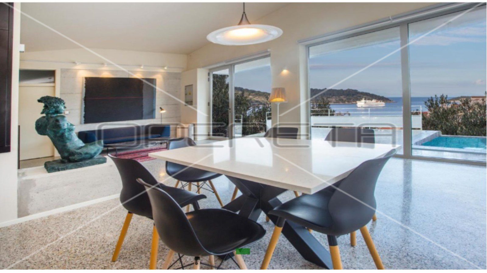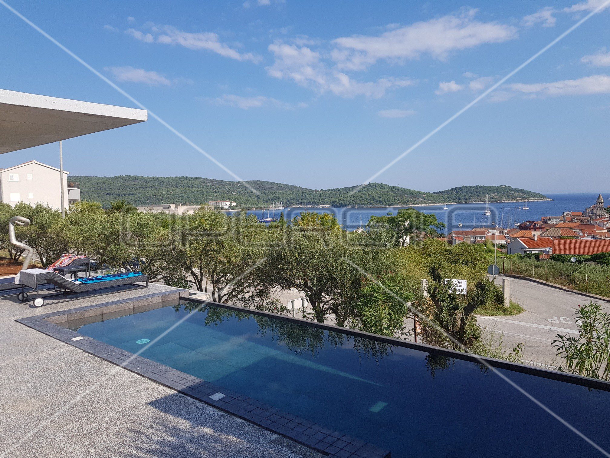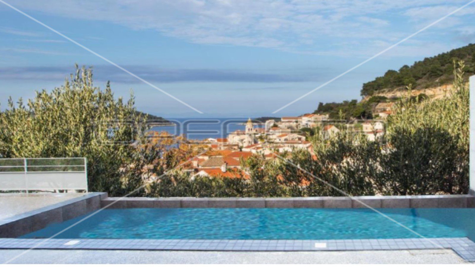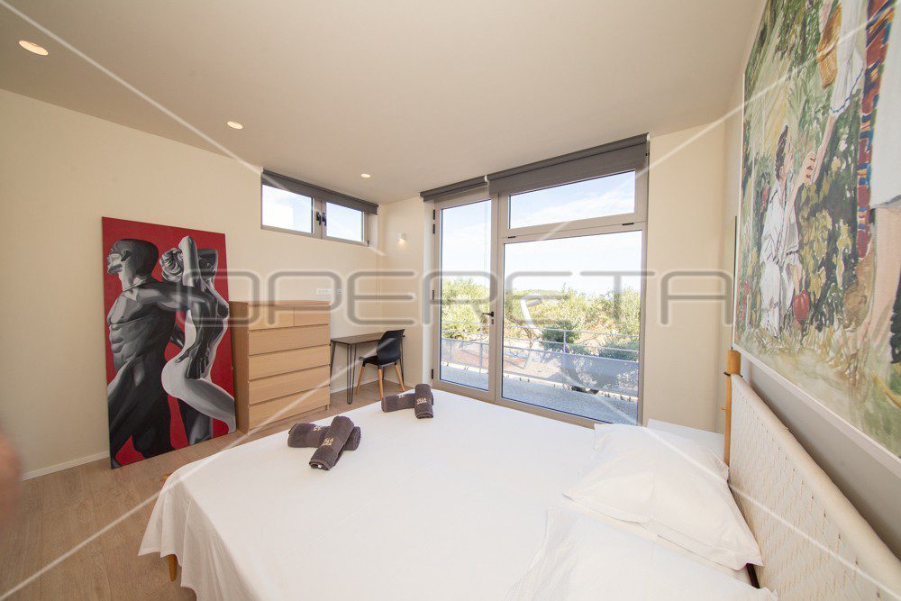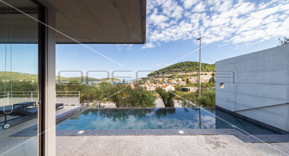 Prodaje se vila s pogledom na more i grad s 2 spavaće sobe i bazenom, ukupne netto površine 117 m2 na parceli 680 m2 okružena maslinama i zelenilom. U blizini su svi sadržaji, a udaljenost od plaže je 500m.