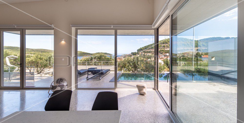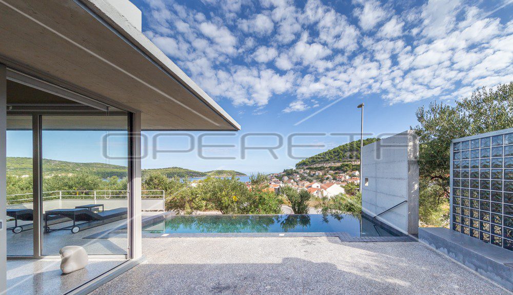 Vis Kut, nova dizajnerska villa s bazenom i pogledom na more, parkingom, čisto vlasništvo, uporabna dozvola. Atraktivno!