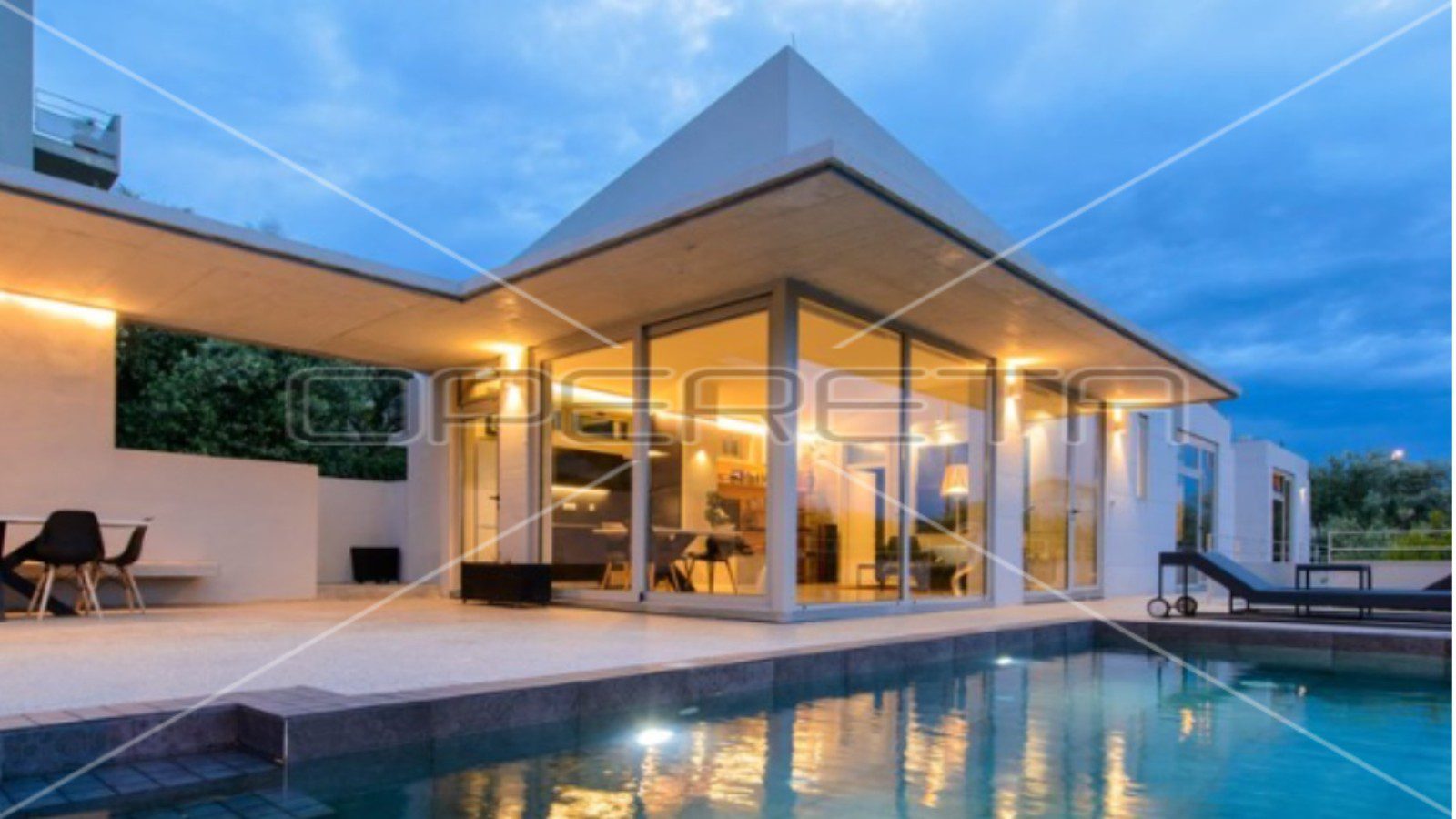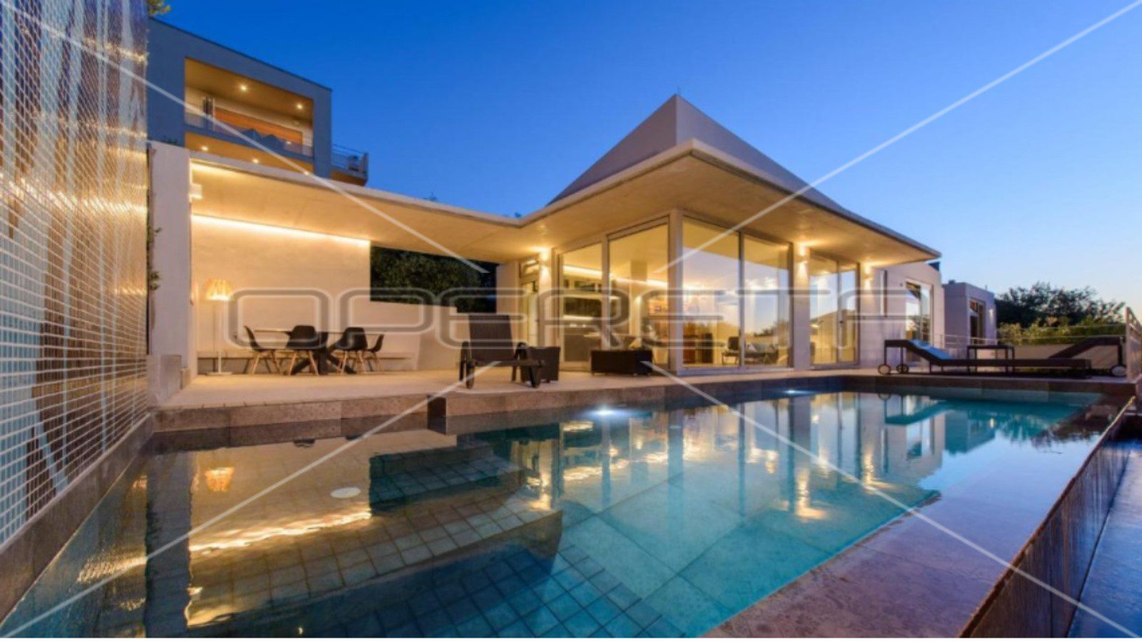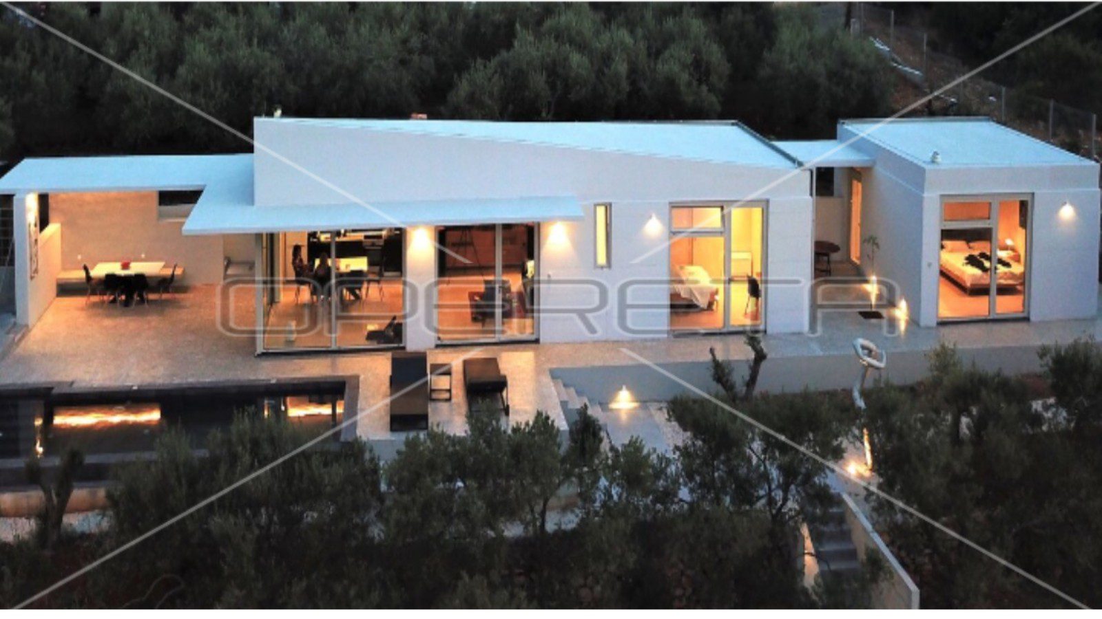 Sastoji se od velikog otvorenog dnevnog boravka s potpuno opremljenom kuhinjom i dvije prozračne, osunčane sobe s velikim staklenim stijenama i 2 elegantne vlastite kupaonice. Na prostranoj terasi je roštilj i prostor za druženje, te infinity bazen. Pred kućom su uređena 2 privatna parkirna mjesta.