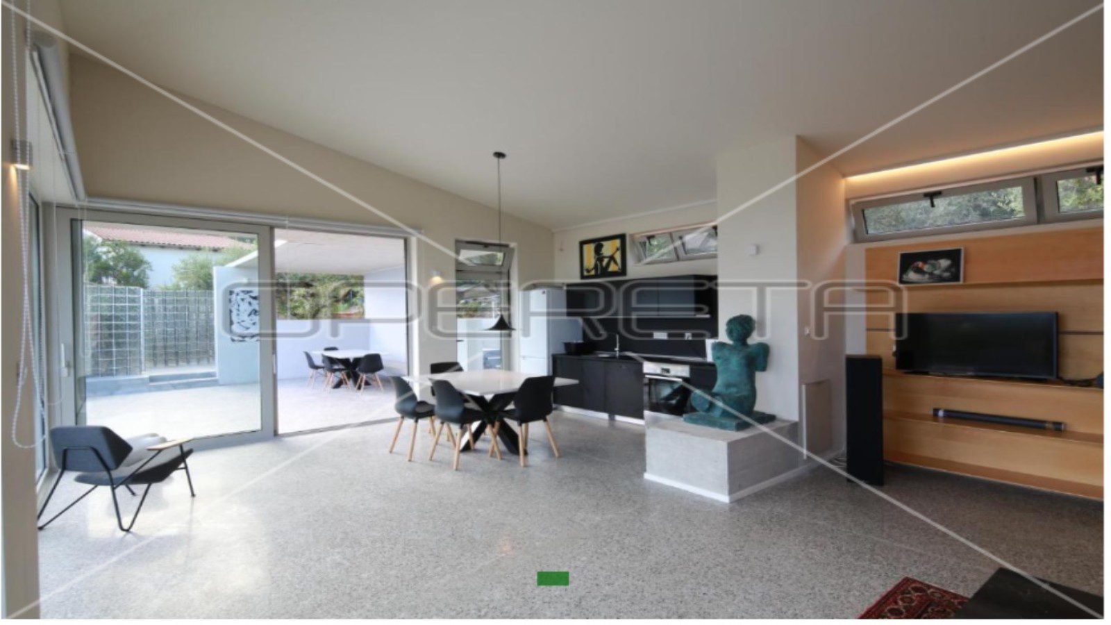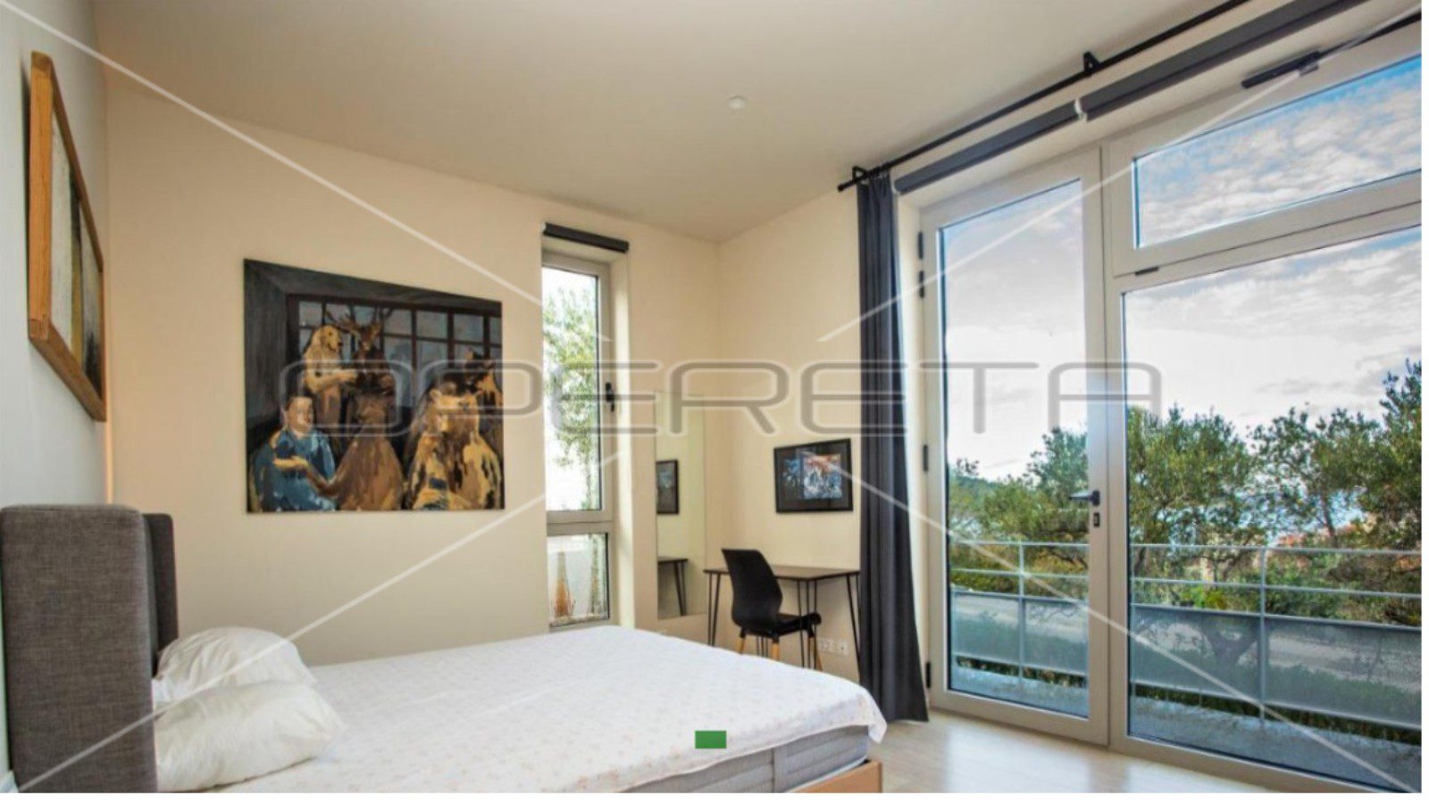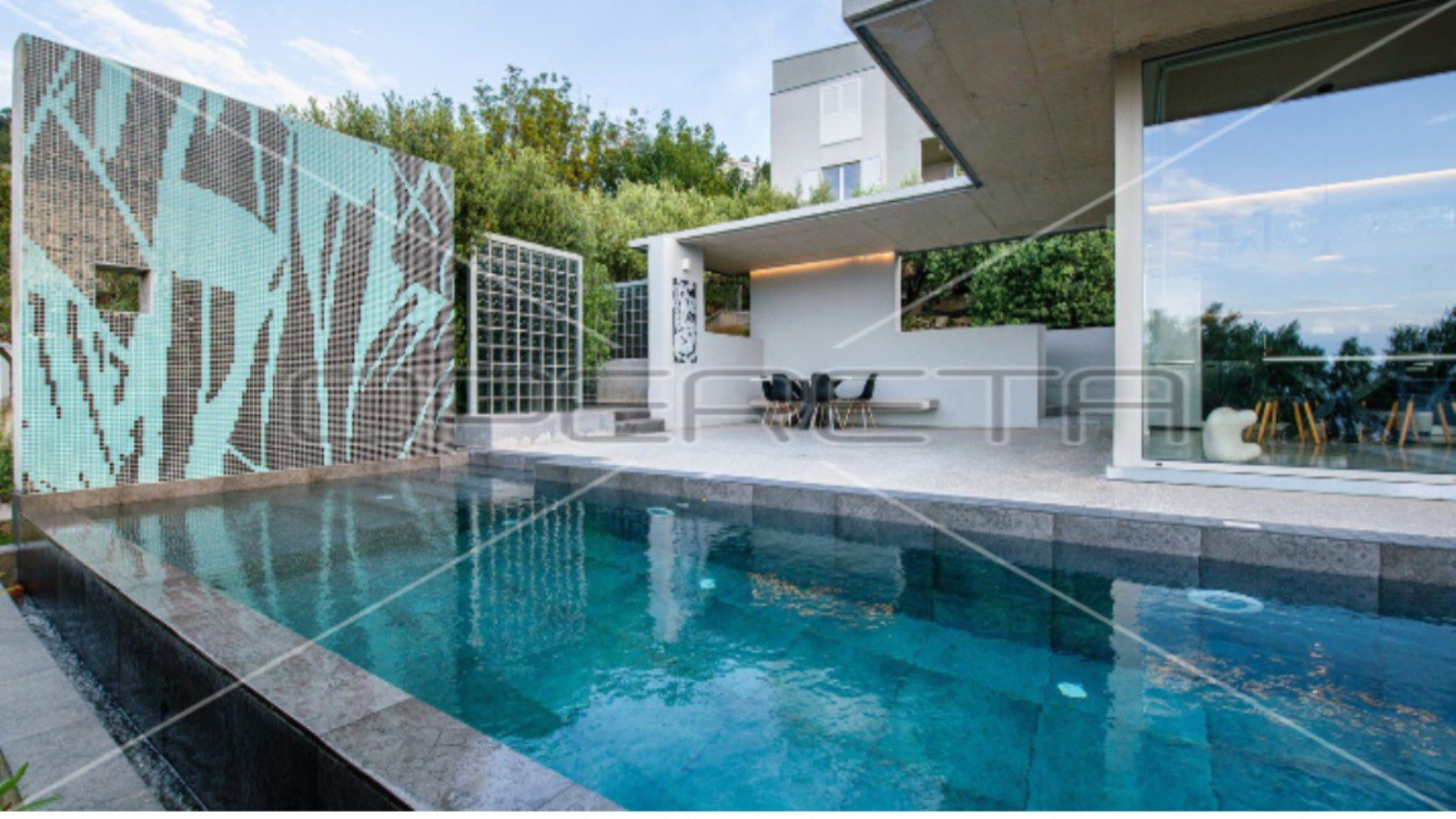 Sastoji se od velikog otvorenog dnevnog boravka s potpuno opremljenom kuhinjom i dvije prozračne, osunčane sobe s velikim staklenim stijenama i 2 elegantne vlastite kupaonice. Na prostranoj terasi je roštilj i prostor za druženje, te infinity bazen. Pred kućom su uređena 2 privatna parkirna mjesta.