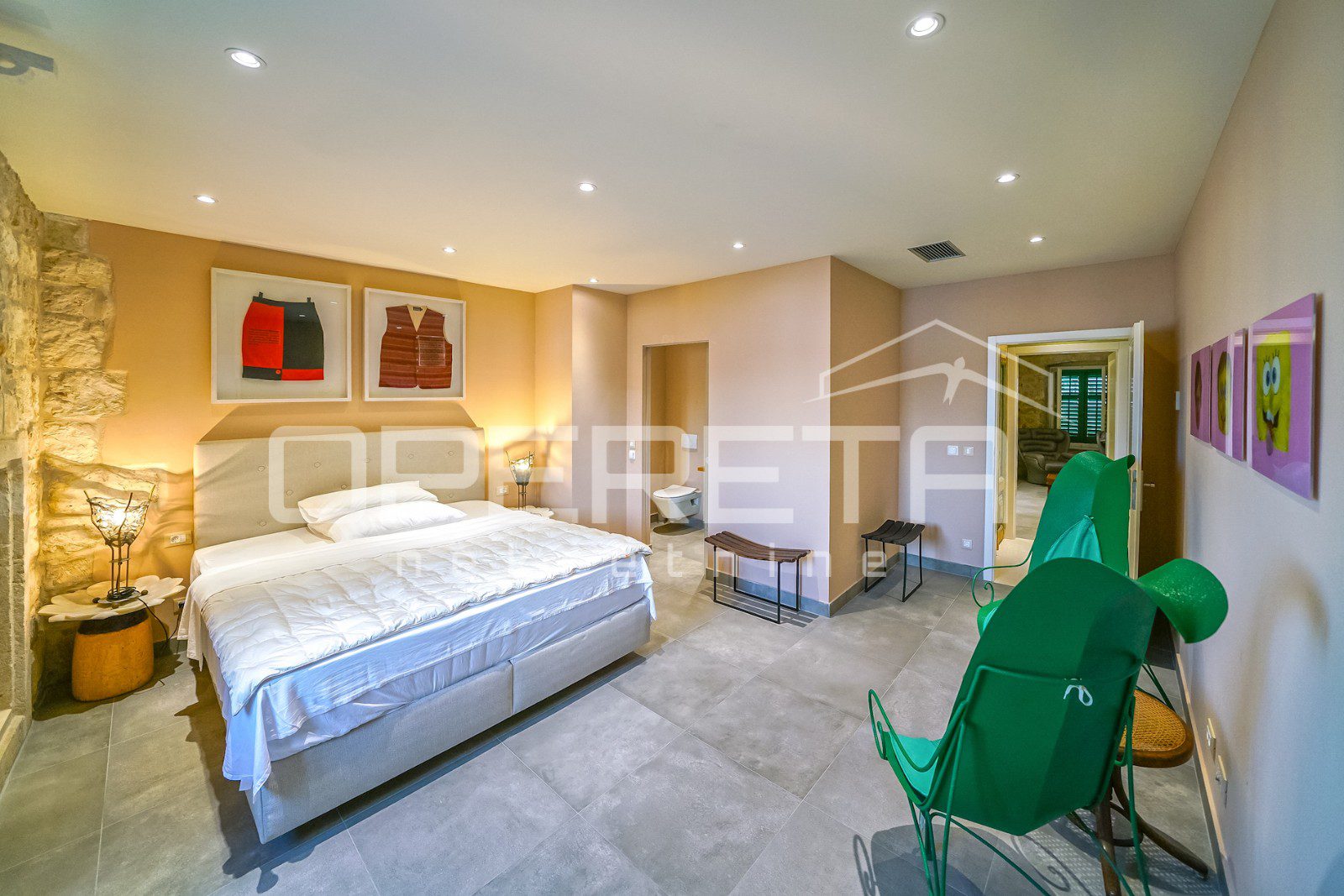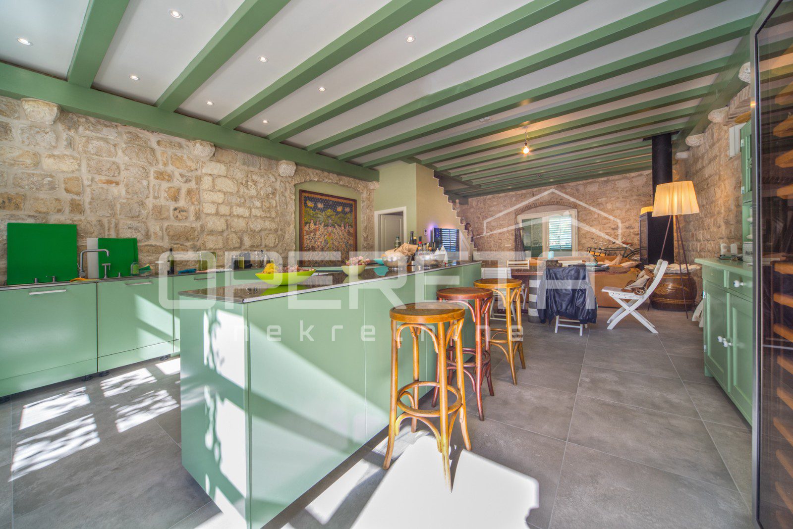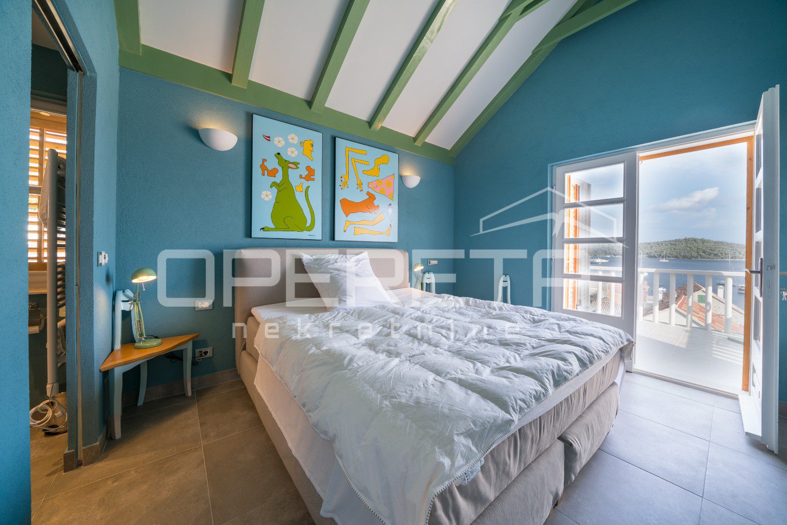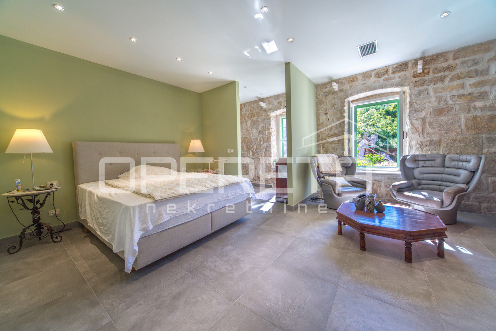 U neposrednoj blizini mora, na Visu, iz naše ponude izvadajamo posjed sa dvije luksuzne kuće sa bazenom. Prva kuća, tlocrtne površine 112 m2 sastoji se od prizemlja i kata. Prizemlje se sastoji od potpuno opremljene kuhinje s povezanim prostranim dnevnim boravkom. Na katu su smještene dvije glavne spavaće sobe s povezanim kupaonicama. Druga kuća, tlocrtne površine od 64 m2 sastoji se od kuhinje s povezanim dnevnim boravkom. Iza dnevnog boravka nalazi se spavaća soba s kupaonicom i malim privatnim vrtom. Na katu su smještene dvije spavaće sobe s vlastitom kupaonicom. Glavna spavaća soba ima tereasu s prekrasnim pogledom na cijeli zaljev. Uz kuću se nalazi i ostava sa sobom za vešeraj. U dvorištu se nalazi bazen, vanjska kuhinja i tradicionalna peć za peku ili roštiljanje. Uz bazen se nalaze još dvije sobe s vlastitim kupaonicama. Više informacija dostupno je na upit.
