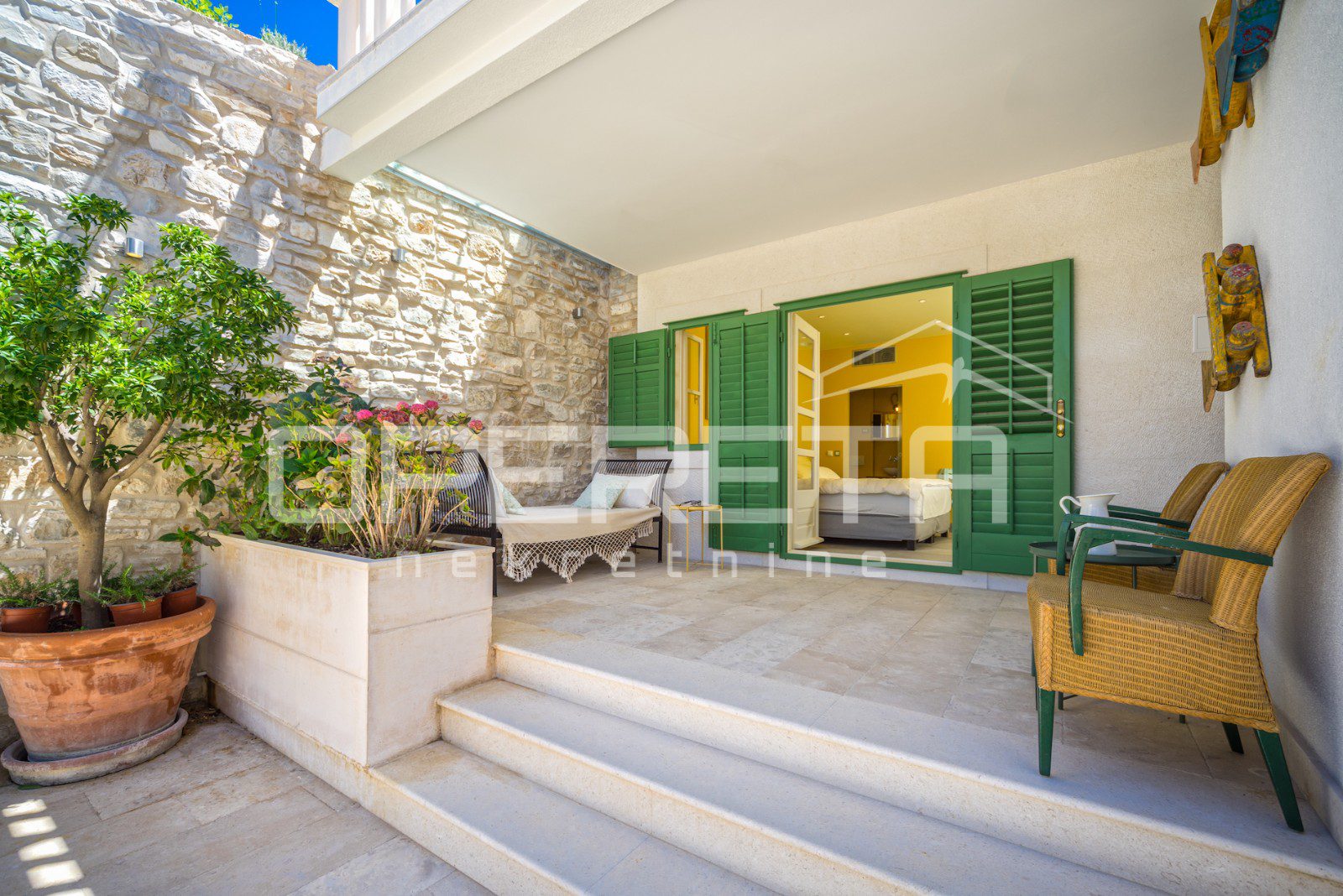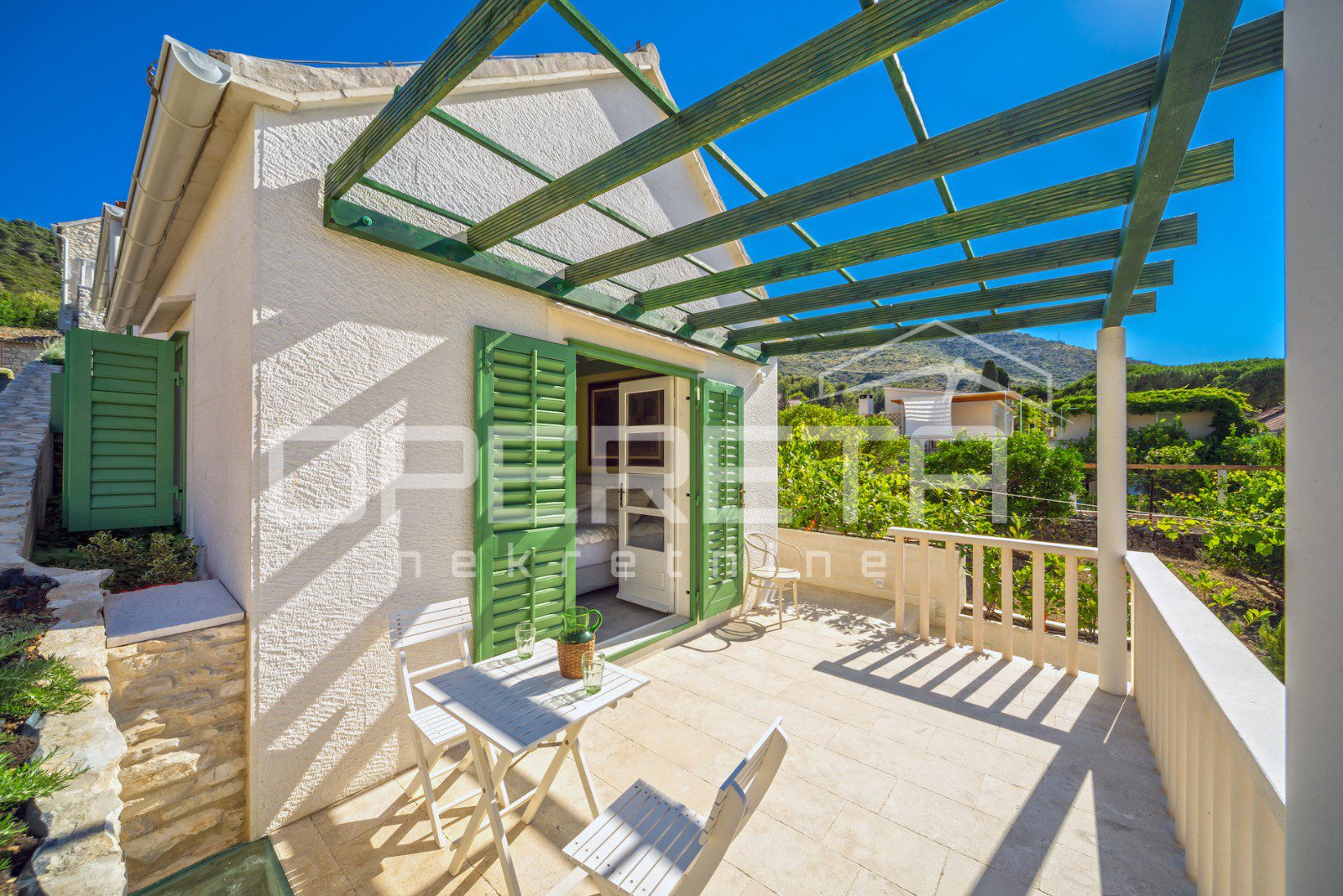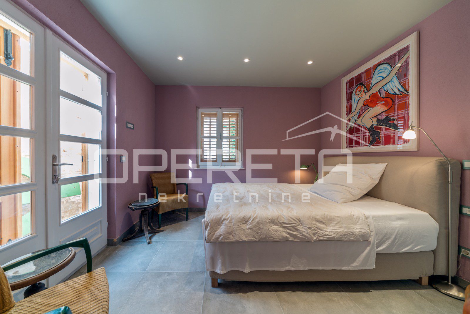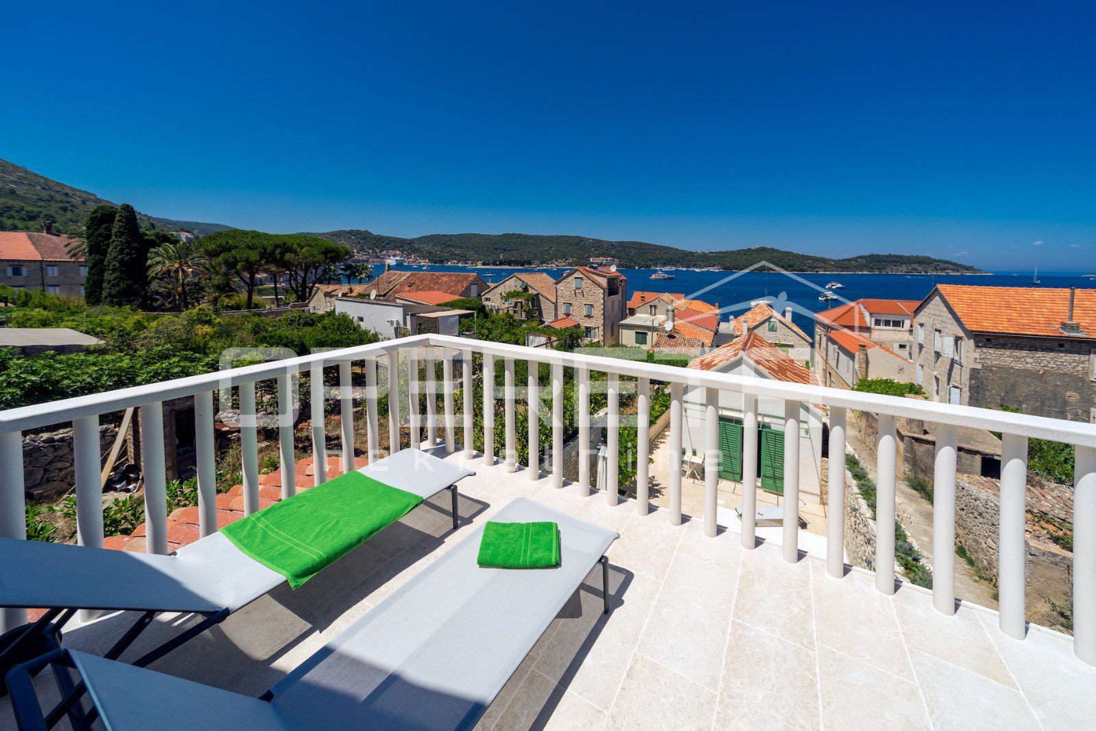 U neposrednoj blizini mora, na Visu, iz naše ponude izvadajamo posjed sa dvije luksuzne kuće sa bazenom. Prva kuća, tlocrtne površine 112 m2 sastoji se od prizemlja i kata. Prizemlje se sastoji od potpuno opremljene kuhinje s povezanim prostranim dnevnim boravkom. Na katu su smještene dvije glavne spavaće sobe s povezanim kupaonicama. Druga kuća, tlocrtne površine od 64 m2 sastoji se od kuhinje s povezanim dnevnim boravkom. Iza dnevnog boravka nalazi se spavaća soba s kupaonicom i malim privatnim vrtom. Na katu su smještene dvije spavaće sobe s vlastitom kupaonicom. Glavna spavaća soba ima tereasu s prekrasnim pogledom na cijeli zaljev. Uz kuću se nalazi i ostava sa sobom za vešeraj. U dvorištu se nalazi bazen, vanjska kuhinja i tradicionalna peć za peku ili roštiljanje. Uz bazen se nalaze još dvije sobe s vlastitim kupaonicama. Više informacija dostupno je na upit.
