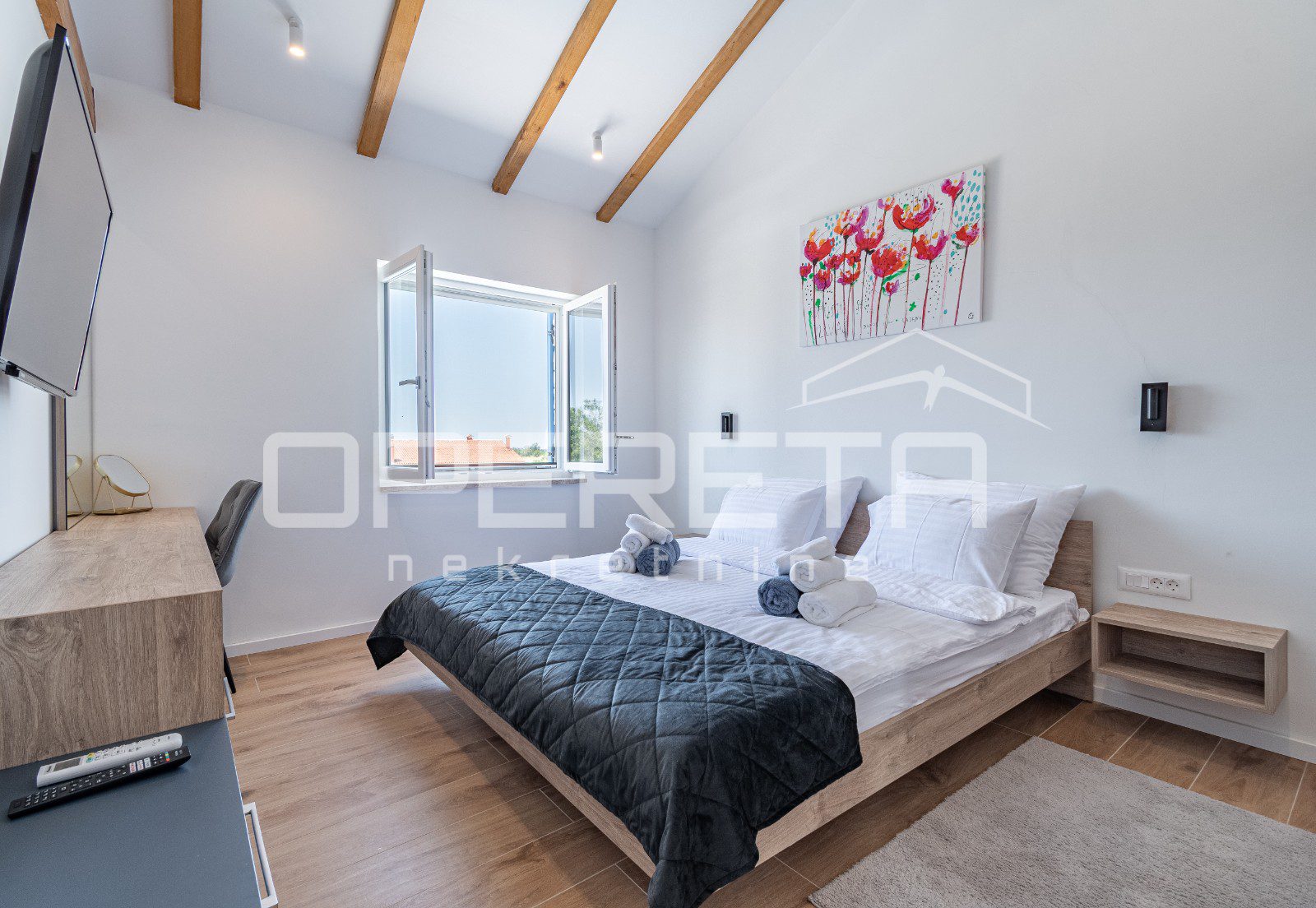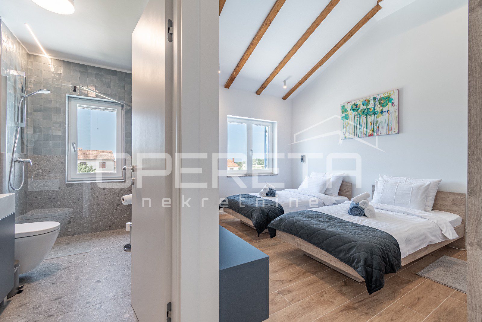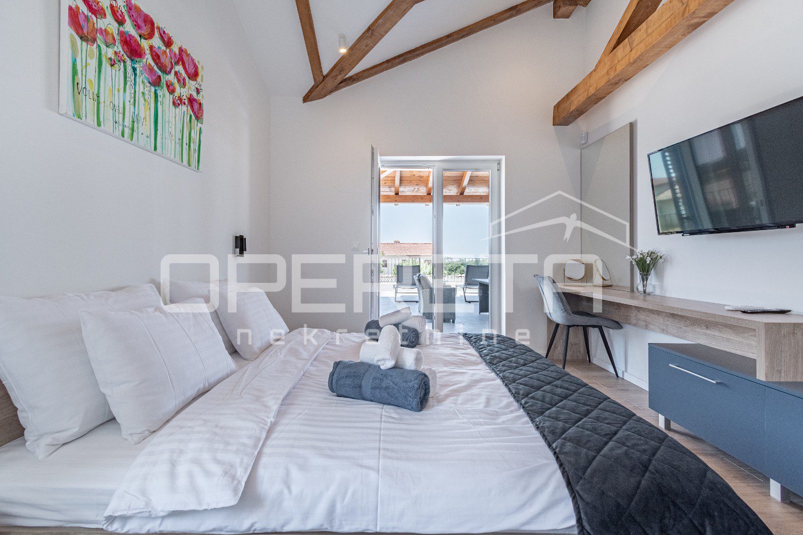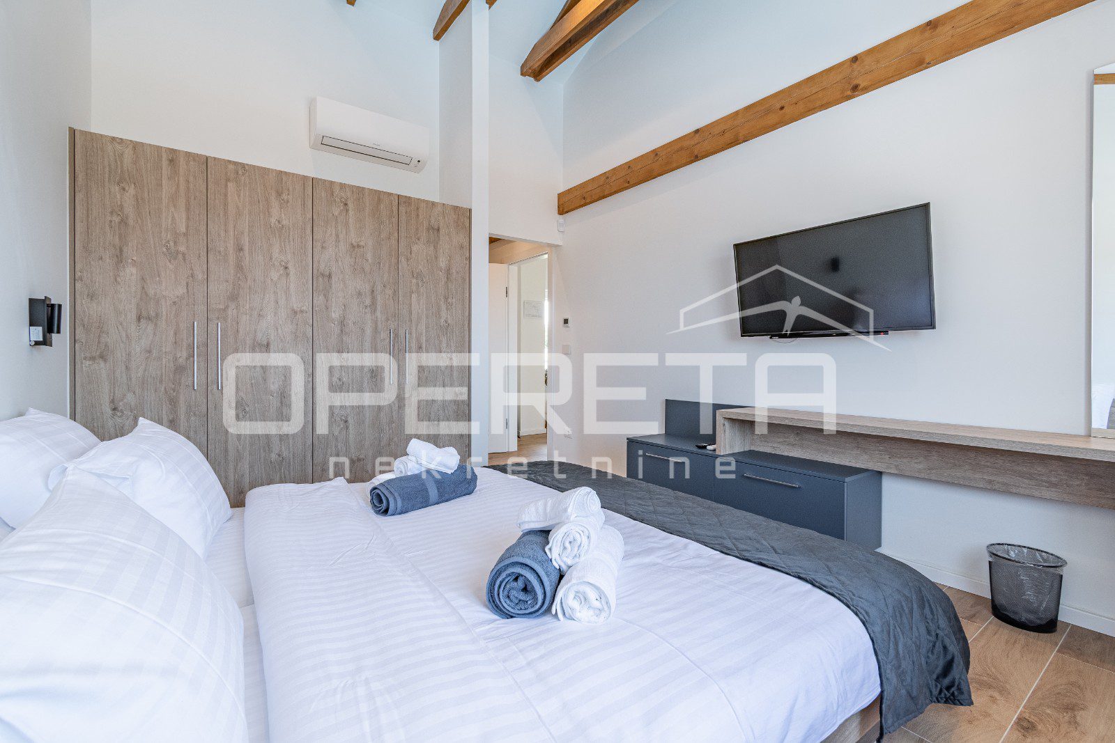 Vila je idealna za udoban smještaj, posjeduje 4 spavaće sobe te master spavaća soba s natkrivenom terasom s prekrasnim pogledom na more te svaka s vlastitom kupaonom i modernim walk-in tuševima.