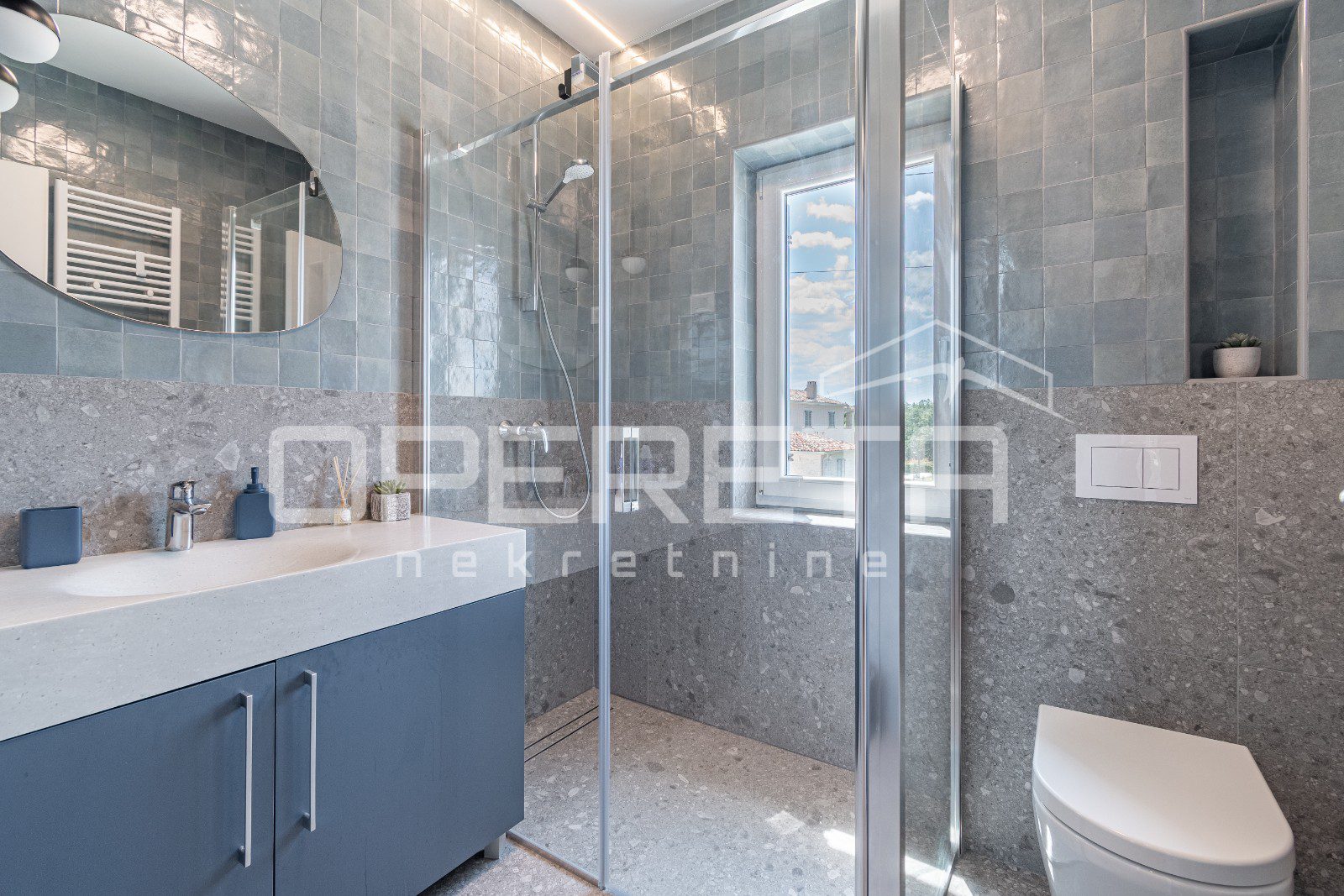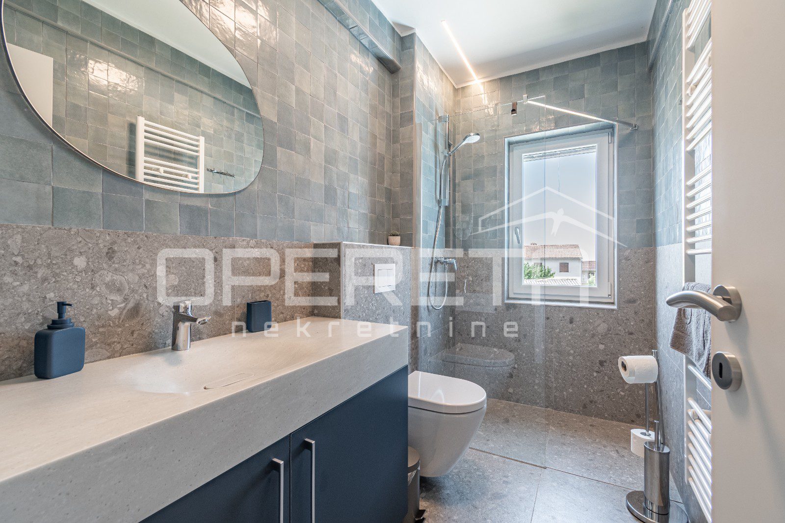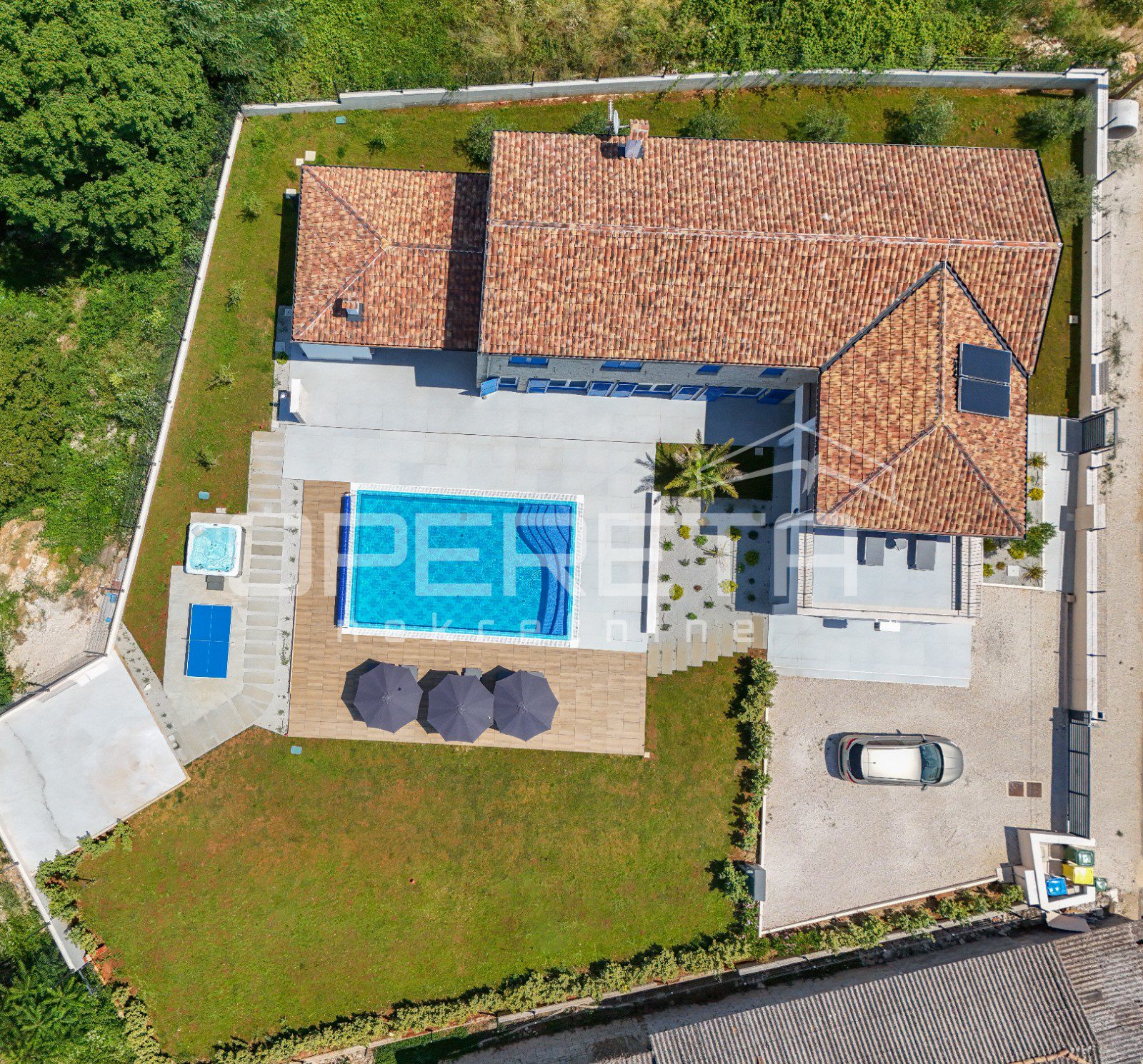 Vila je opremljena svim modernim tehničkim rješenjima koja garantiraju udobnost i sigurnost: od video nadzora, alarma, Wi-Fi mreže do podnog grijanja, multisplit klima uređaja i kamina.