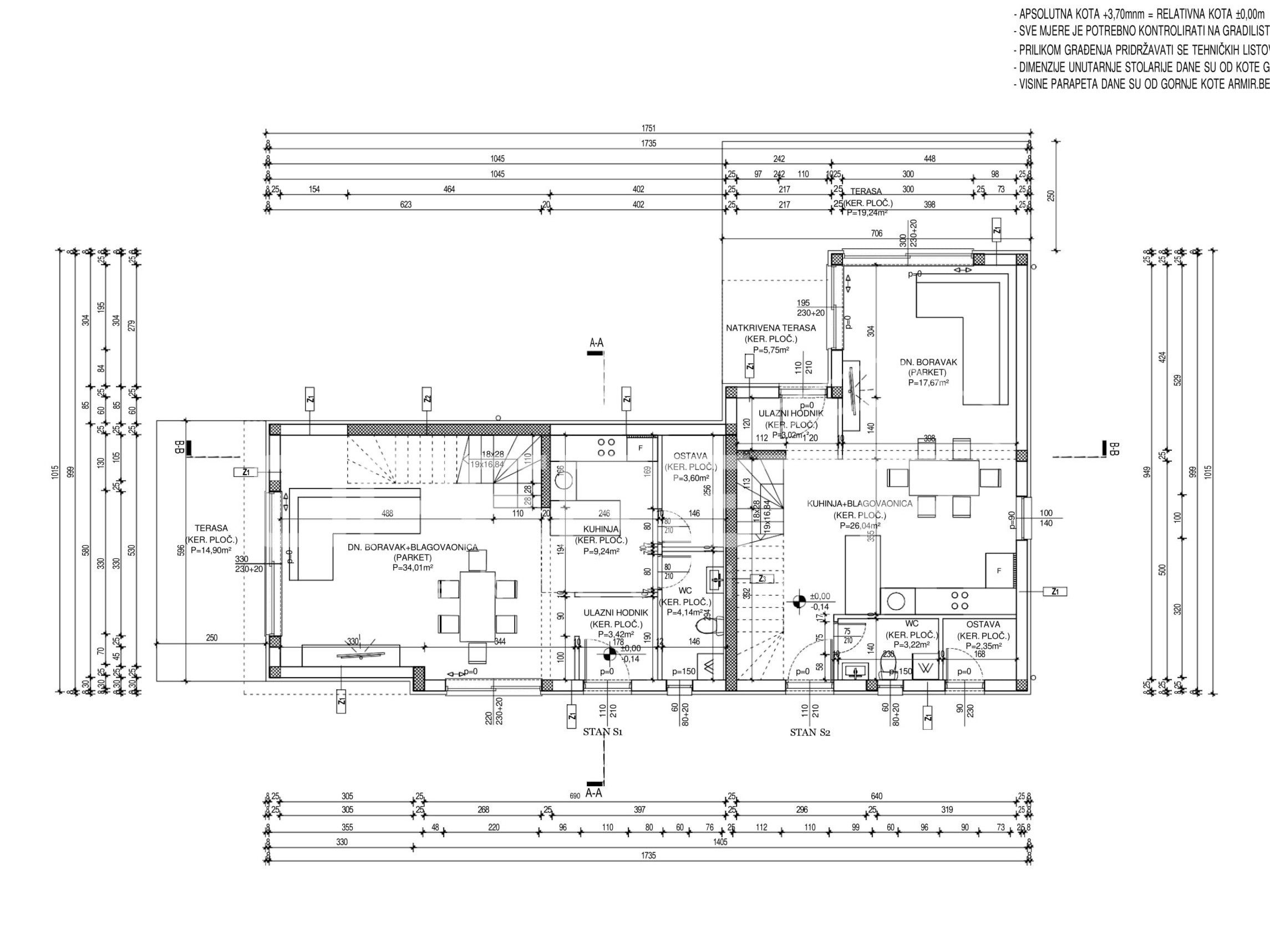 Na parceli površine 500 m² nalaze se dvije dvojne kuće u izgradnji.
