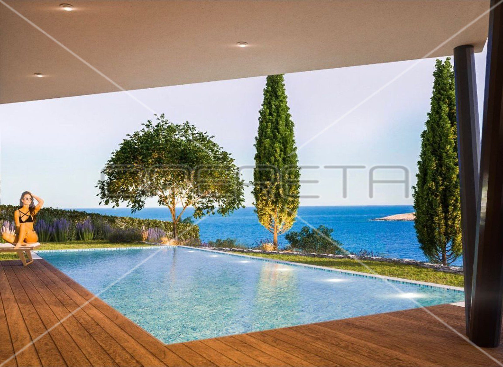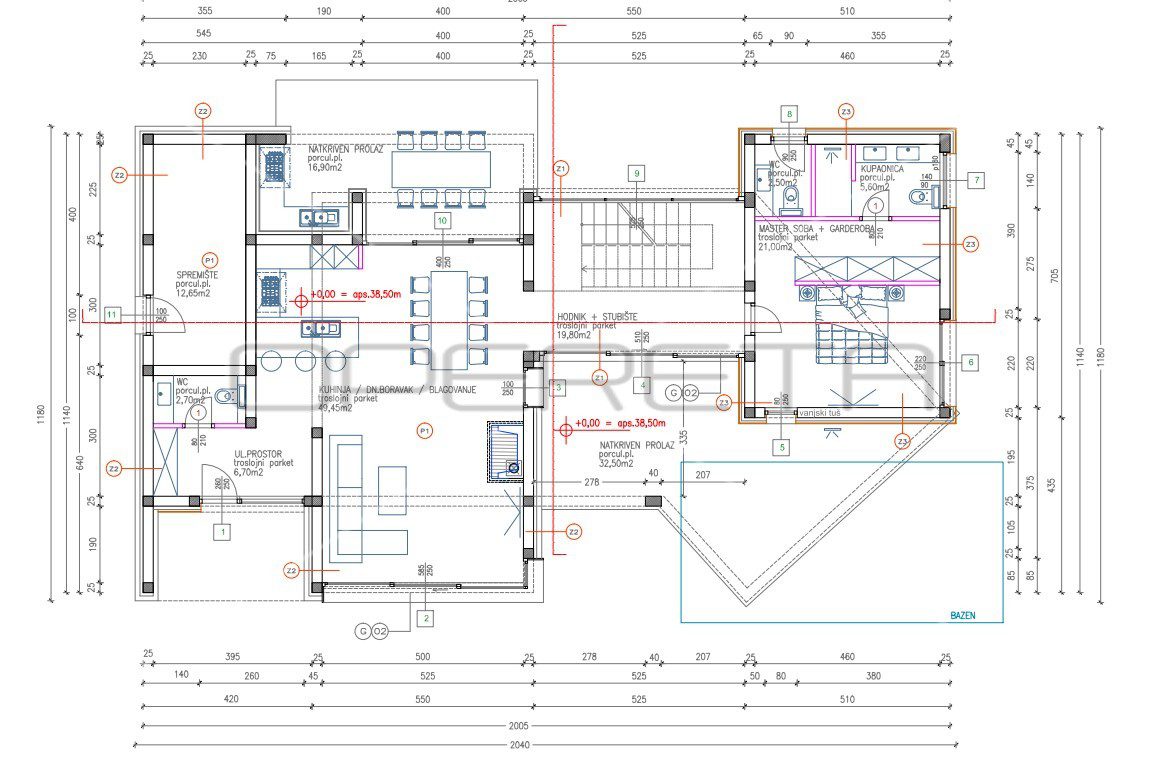 • Otvoreni koncept dnevnog boravka u prizemlju s izravnim pristupom terasi i bazenu
