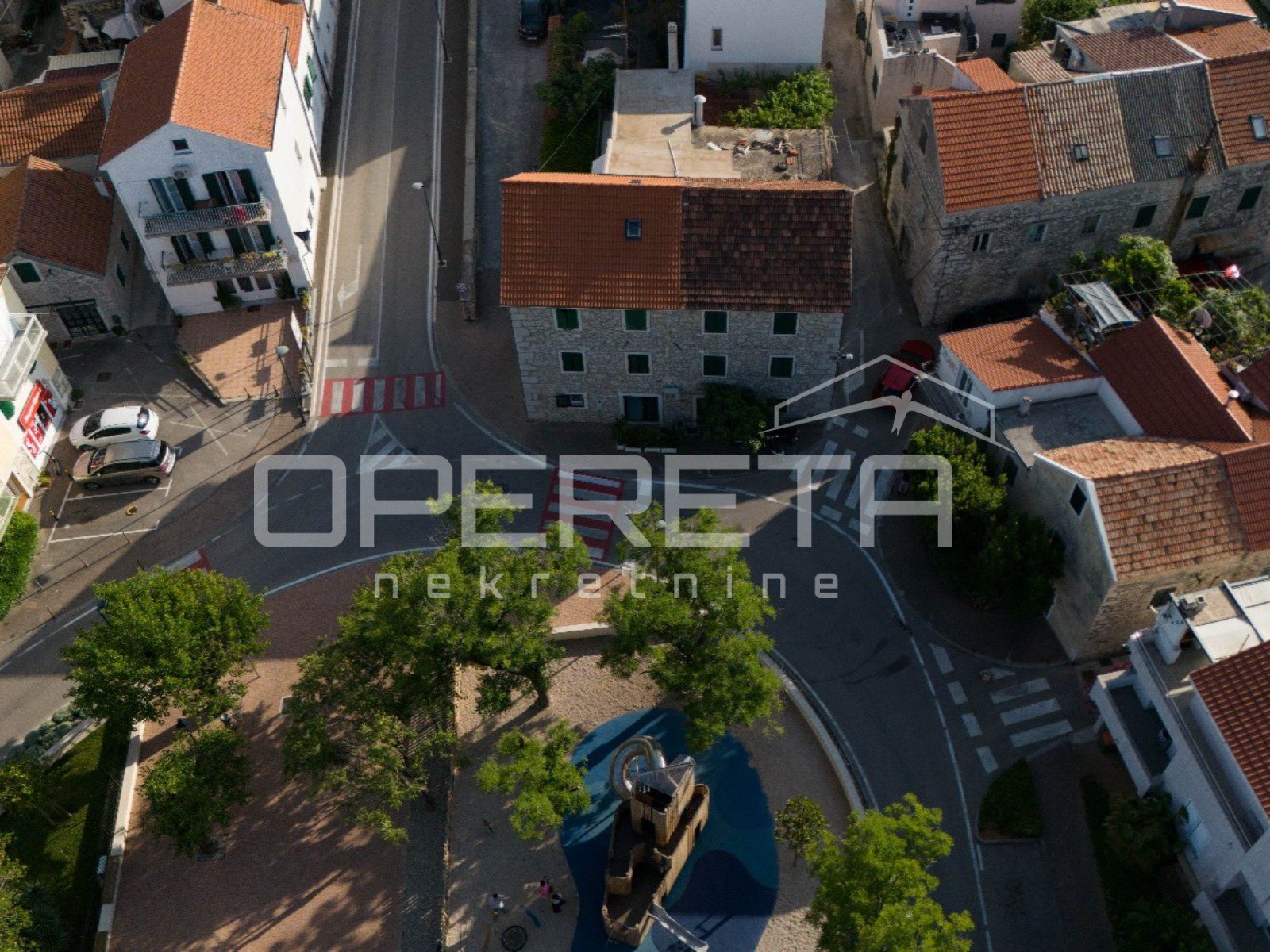 U ponudi je kuća za kompletnu renovaciju u samom centru Vodica, neposredno uz park. Kuća se prostire na četiri etaže, prizemlje, 2 kata i tavan, s ukupnom površinom od 300 m².