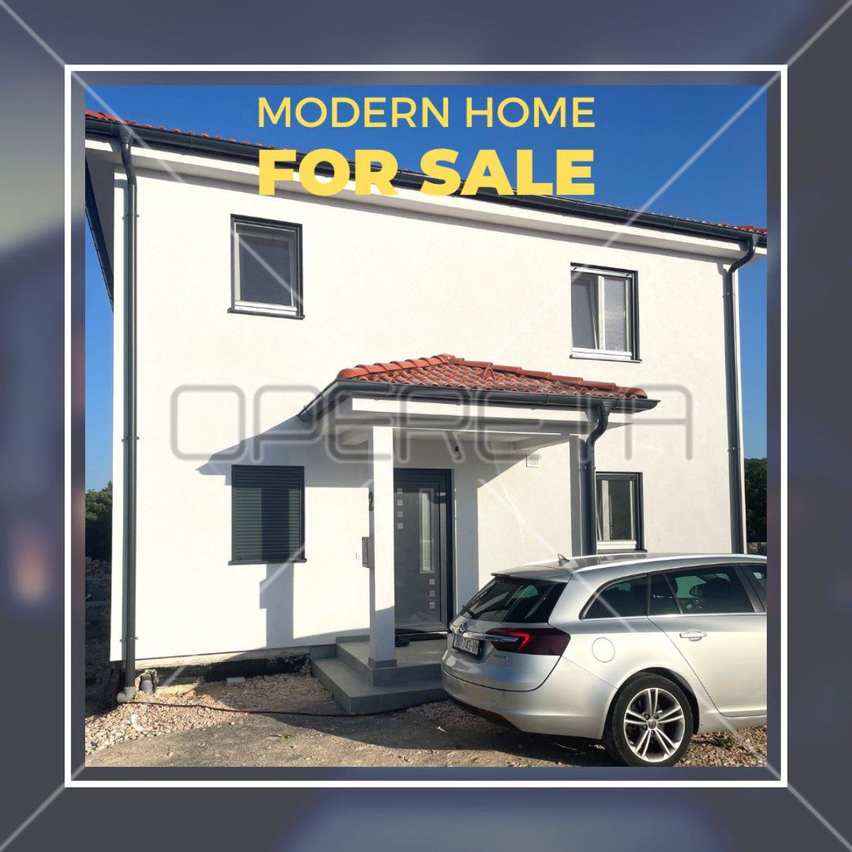 Na parceli od 828 m2, eksterijer kuće uskoro će krasiti dva parkirna mjesta i pažljivo osmišljen ozelenjeli prostor.