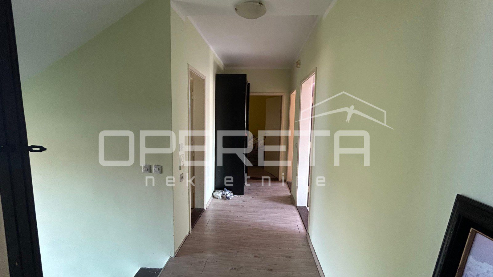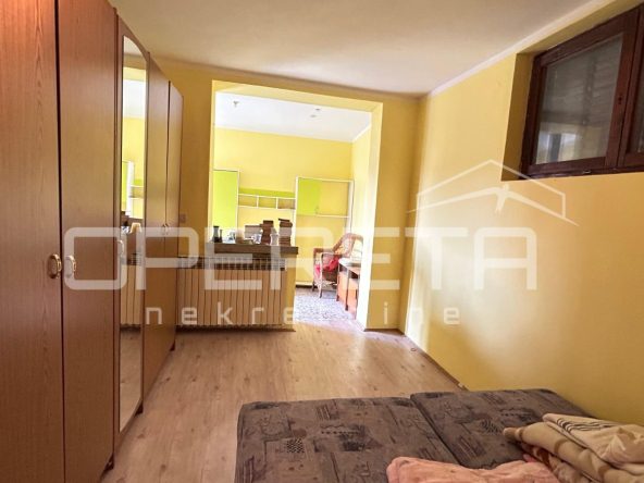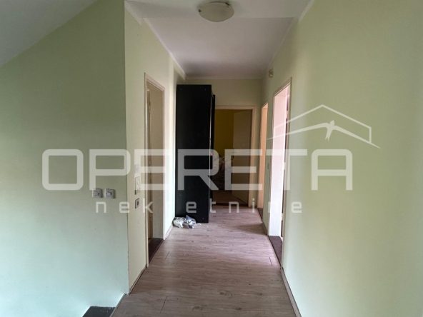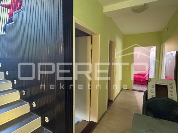 Na odličnoj i mirnoj lokaciji se prodaje kuća na parceli od 311m2. Kuća je tlocrtne veličine 100m2, a prostire se na 4 etaže. U podrumu se nalazi kotlovnica i spremište. Na 1. katu je ulazni hodnik, spavaća soba, dnevni boravak s blagovaonicom i kuhinjom te izlaz na dvorište i kupaonica s WC-om. Na 2. katu se nalazi dnevni boravak s blagovaonicom i kuhinjom te izlaz na balkon, 2 spavaće sobe i kupaonica s WC-om. Tavan je neuređen i uz male preinake se može dobiti spavaći dio. U sklopu kuće je i garaža cca 18m2. Osnovna škola je na minutu hoda dok se do centra grada dolazi za cca 5 minuta hoda. Vlasništvo uredno!