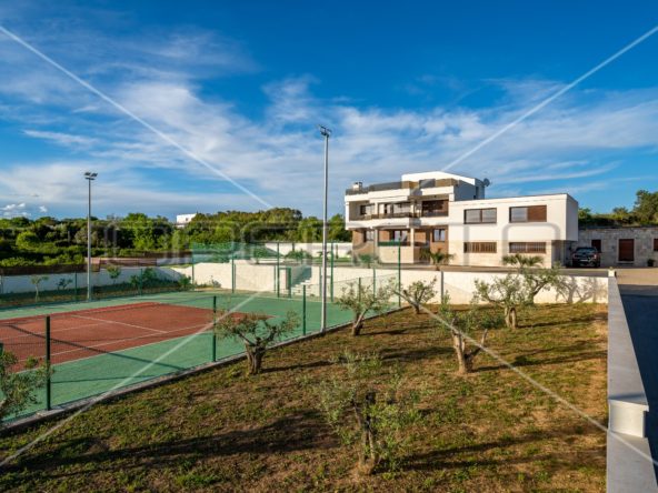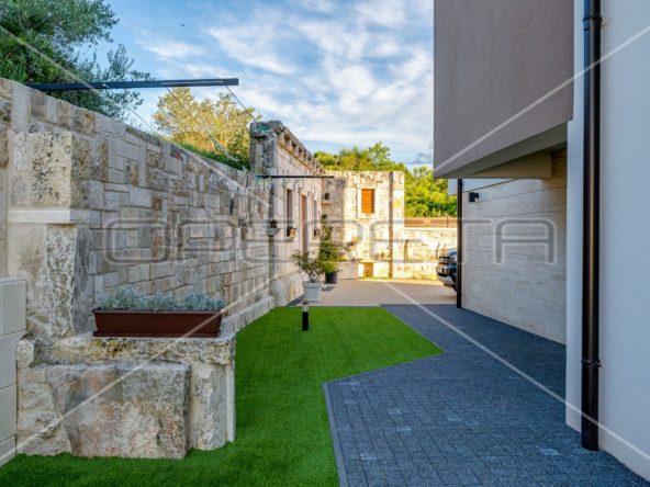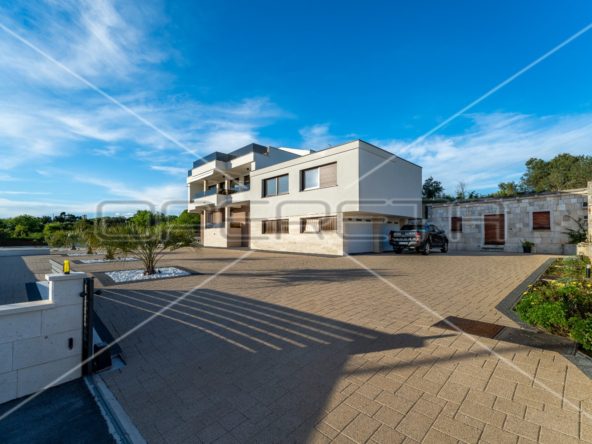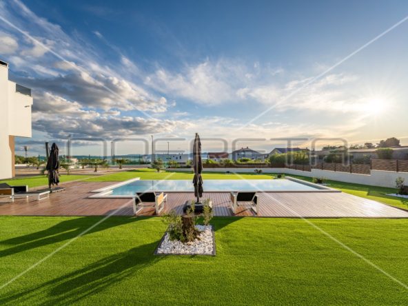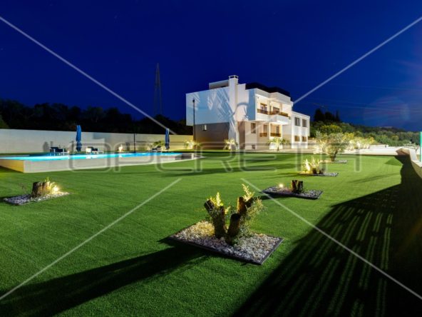 Na prostranoj parceli površine preko 3.200 m2 smjestila se vila od skoro 400 m2. Vilu nadopunjuje dupla garaža, sportski teren za tenis/nogomet/košarku, veliko opločeno dvorište i bazen.