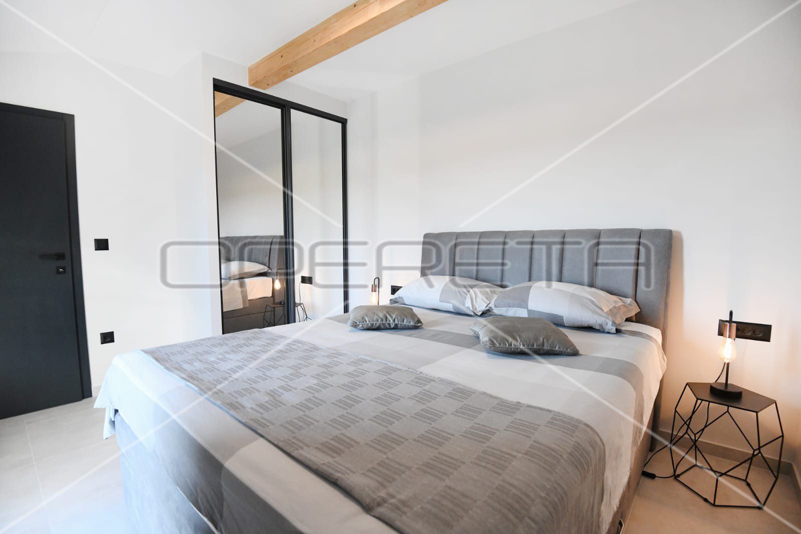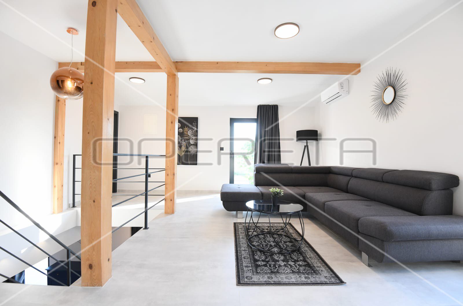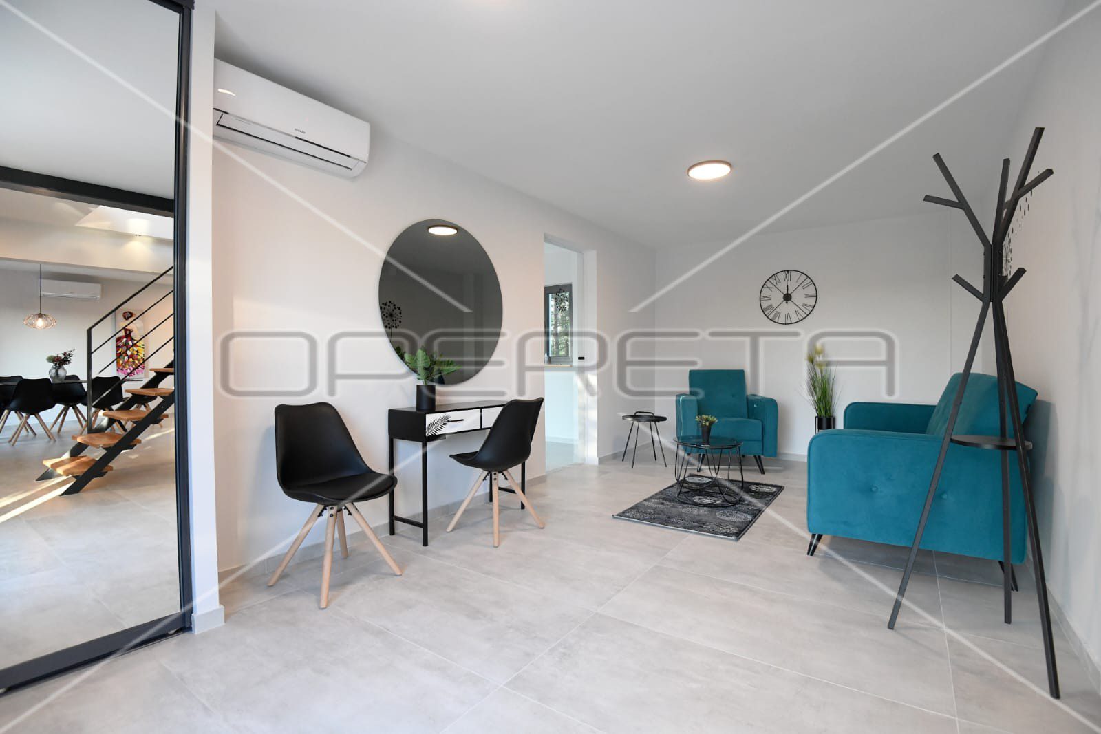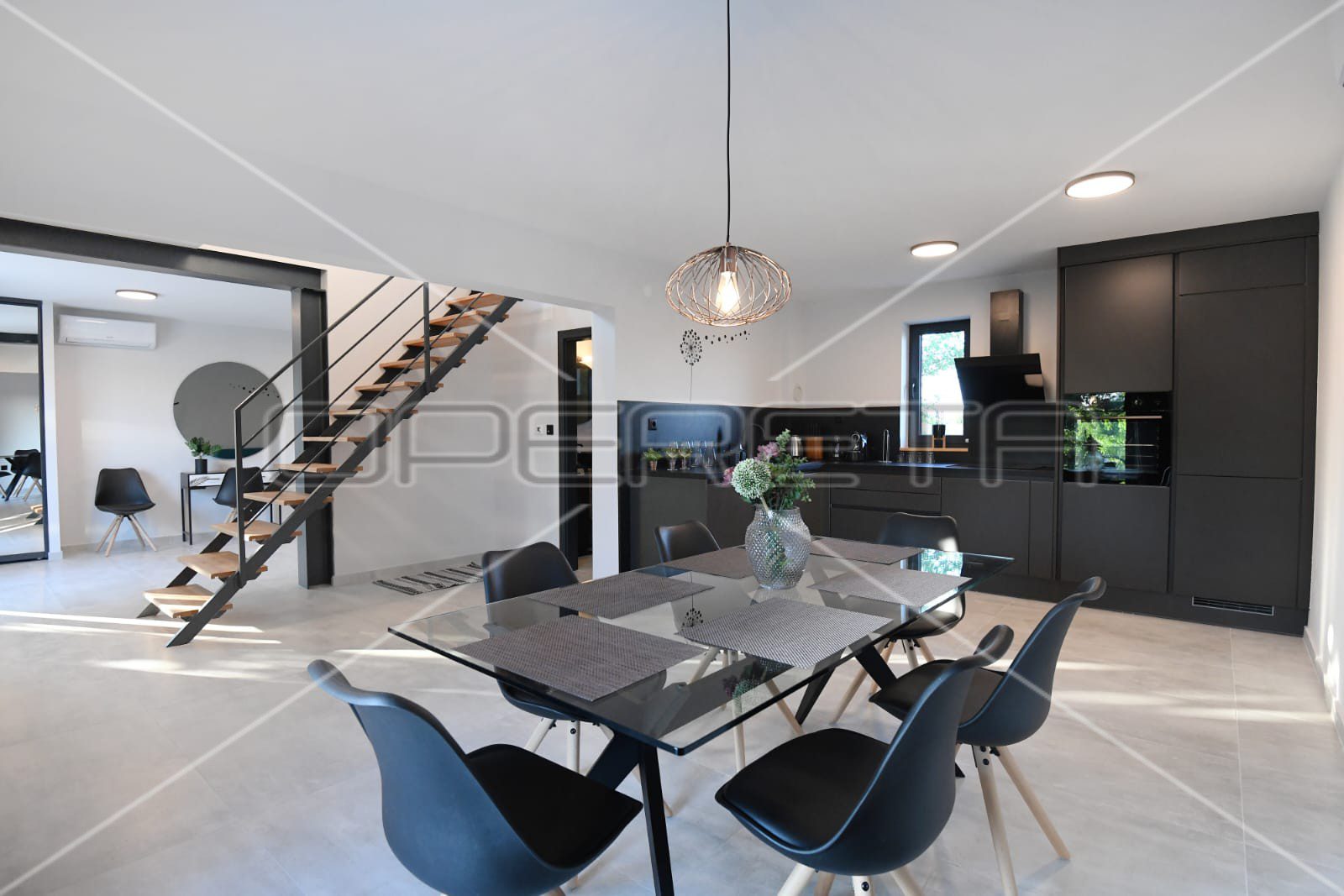 Ova moderna vila prostire se na dvije etaže, s ukupnom neto korisnom površinom od 190 m², dizajniranih tako da svaki dio nudi luksuz i udobnost. Prizemlje otvorenog koncepta povezuje prostrani dnevni boravak, kuhinju i blagovaonicu, opremljene vrhunskim namještajem i uređajima, pružajući osjećaj sofisticiranosti i udobnosti. U prizemlju se također nalazi privatna teretana, savršena za opuštanje i rekreaciju, uz direktan pristup terasi i dvorištu iz gotovo svake prostorije.