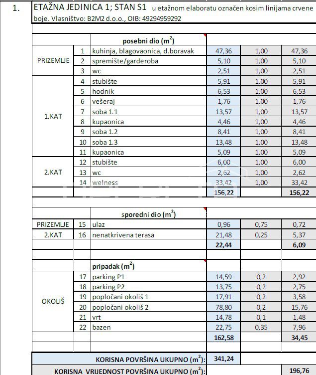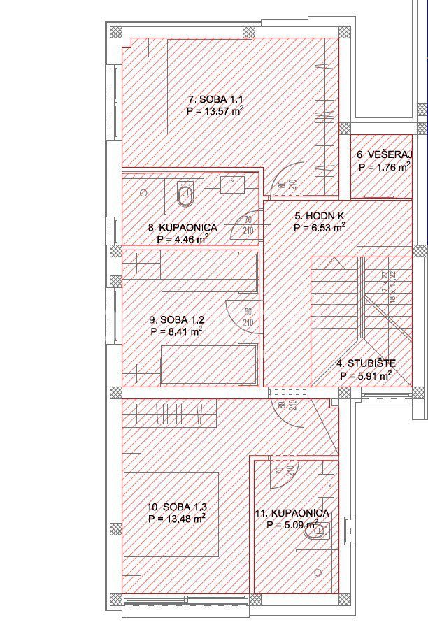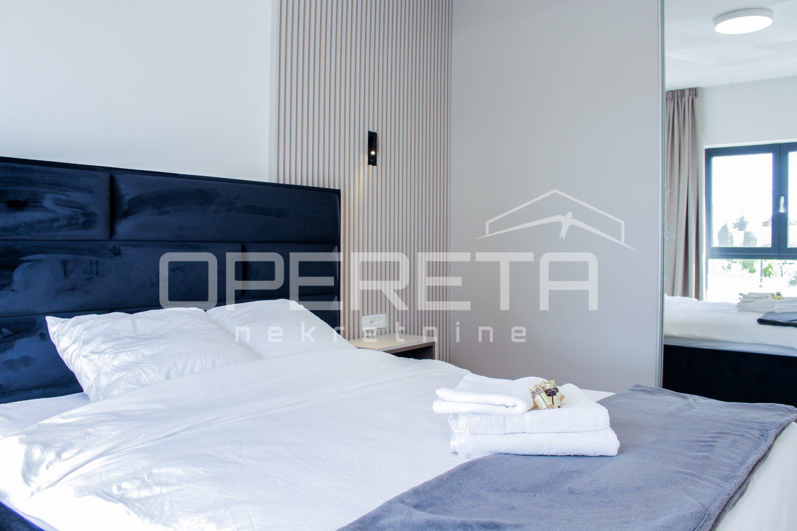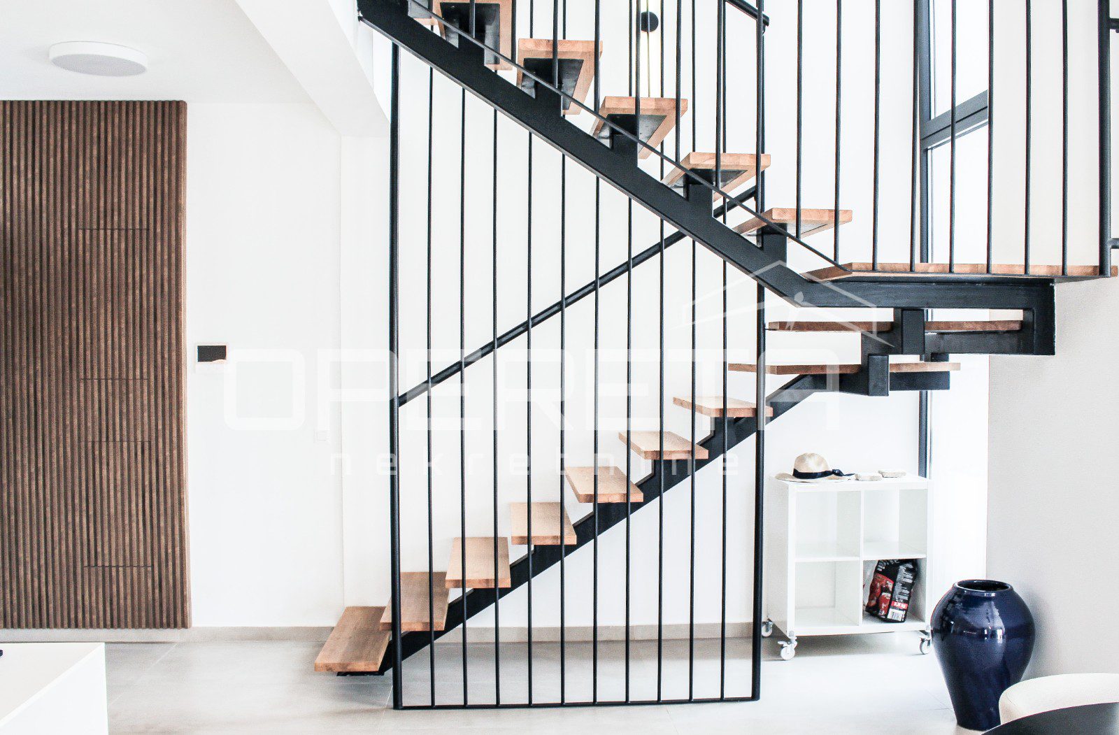 Na prvom katu nalaze se tri luksuzne spavaće sobe, dvije profinjeno uređene kupaonice te odvojena praonica rublja.