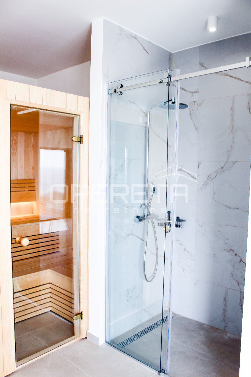 Drugi kat rezerviran je za wellness zonu – sauna, jacuzzi i prostrana terasa s neometanim pogledom na more pružaju ugođaj ekskluzivnog spa resorta, u privatnosti vlastitog doma.