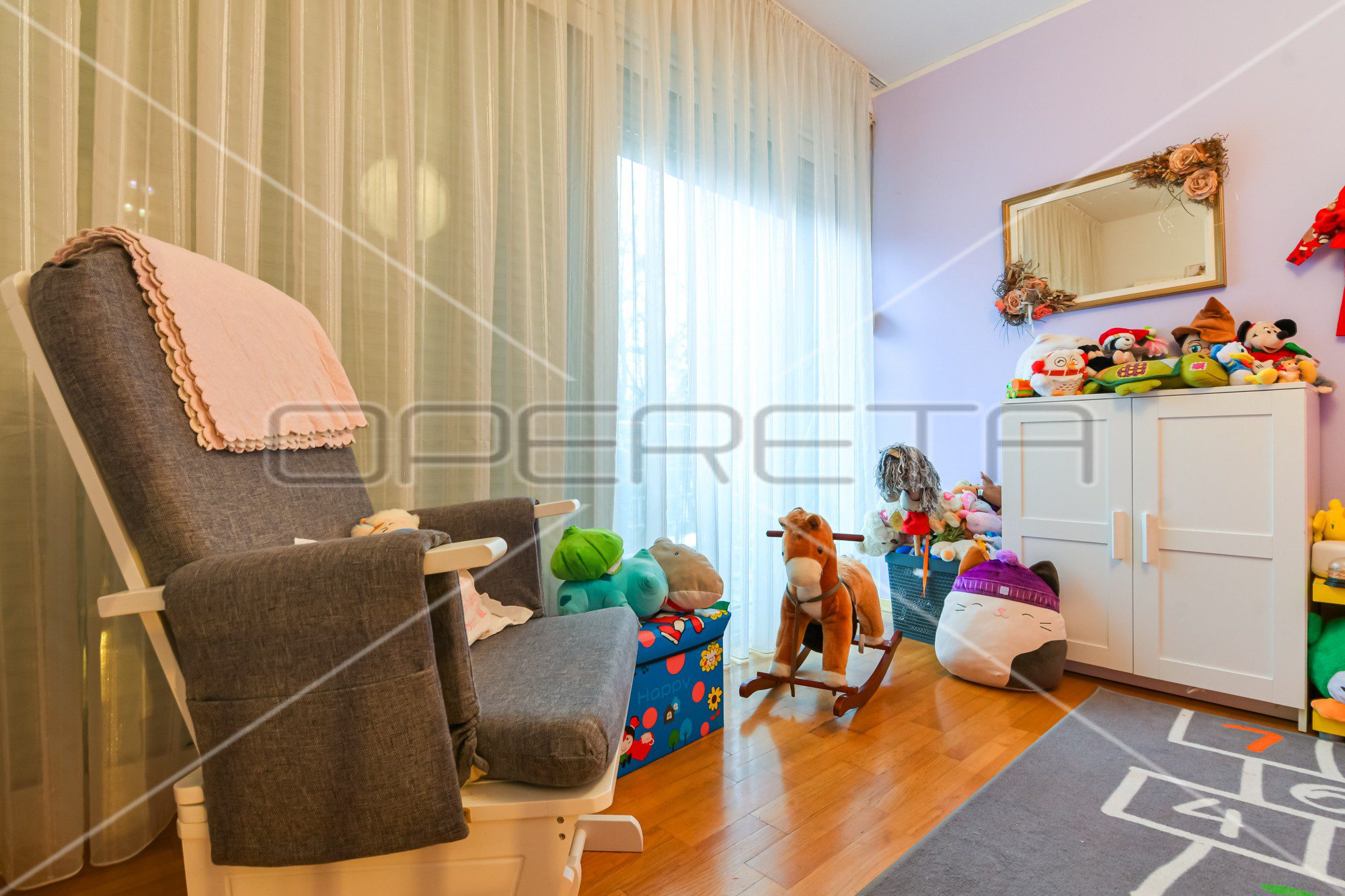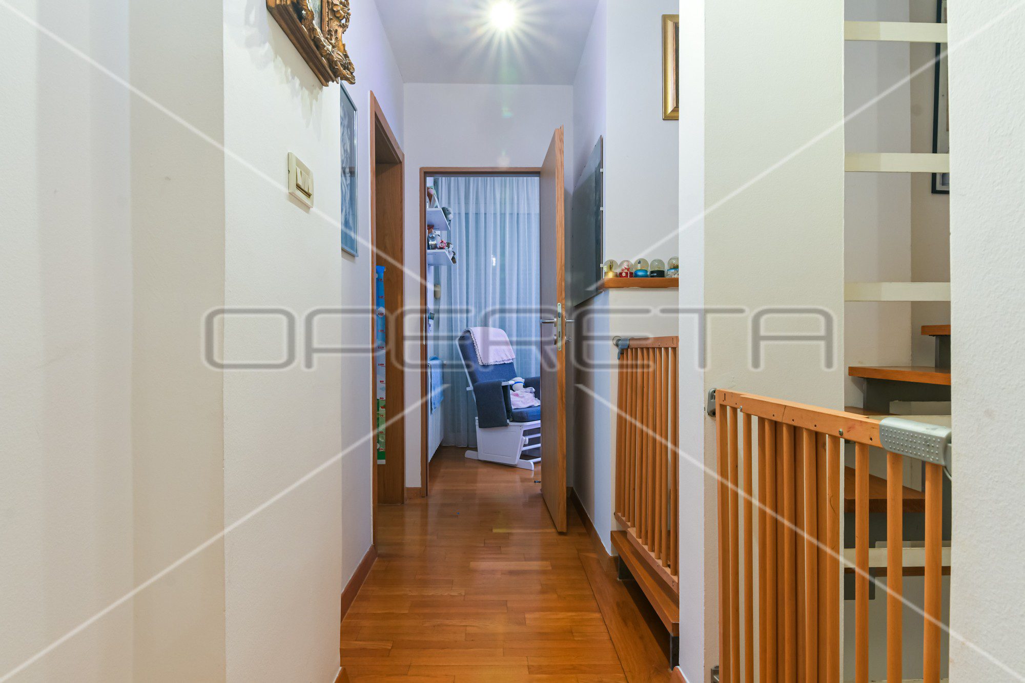 Kuća se sastoji od podrumskog dijela gdje se nalazi kotlovnica i kupaonica sa sanitarnim čvorom, u prizemlju se nalazi ulazni dio, open space dnevni boravak sa blagovaonicom i kuhinjom iz kojih se izlazi na terasu, na prvom katu se nalaze 3 spavaće i kupaonica i na zadnjoj etaži je tavanski prostor koji se trenutačno koristi kao ured.