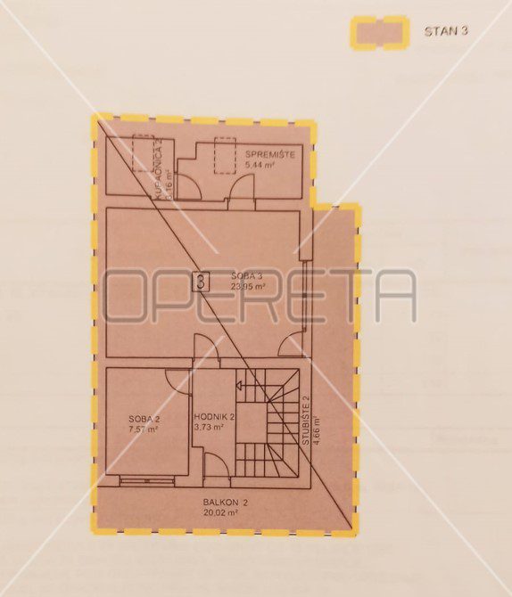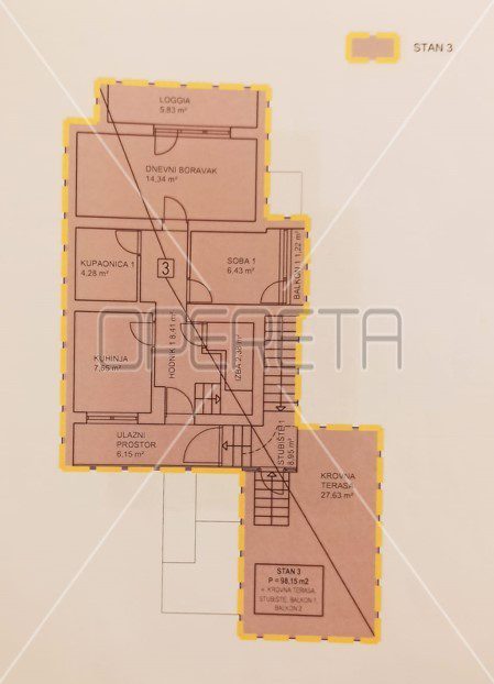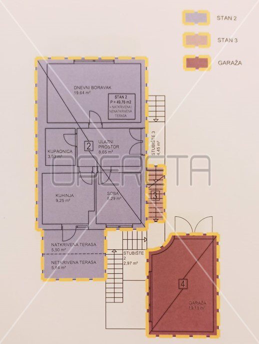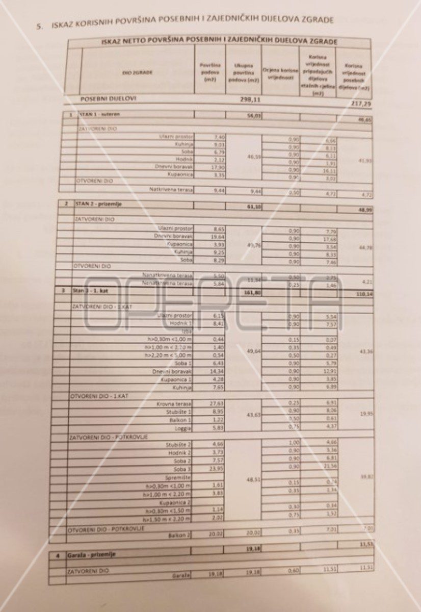 u prizemlju je stan od 48,99m2, a na 1. i 2. katu je smješten dvoetažni stan površine 110,14m2.