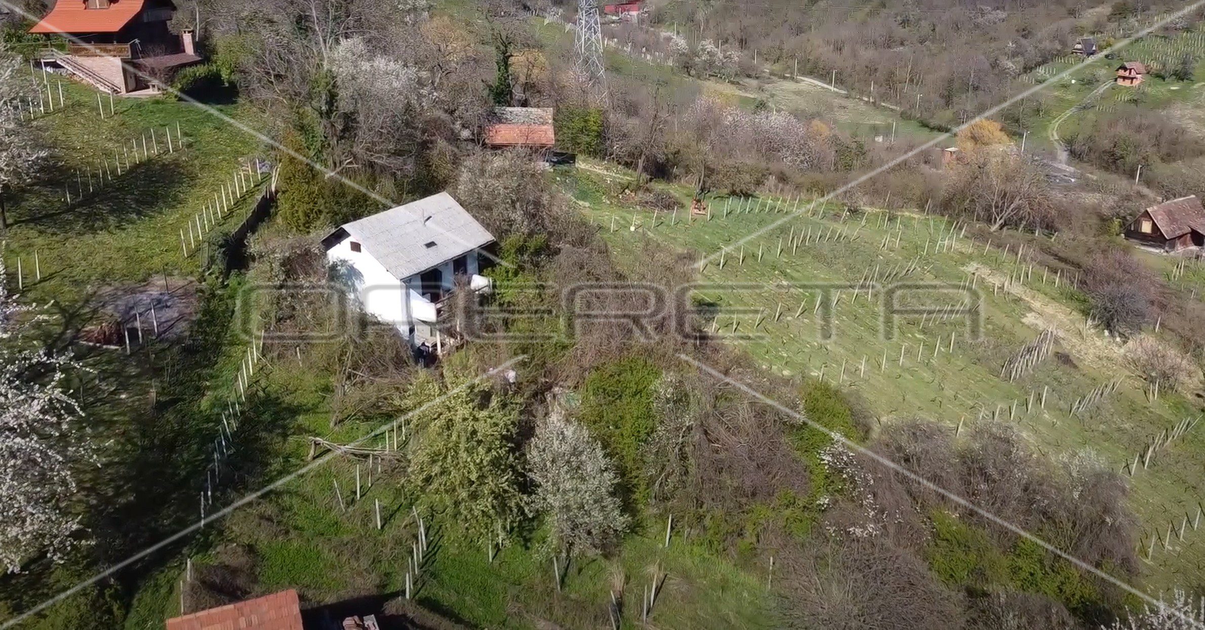 Legalizirani objekti – kuća 117 m2 s pomoćnom zgradom od 71 m2 za rušenje sa okućnicom od 1.165 m2 u zaštićenoj zelenoj zoni. Na parceli postoji bunar. Priključci za struju i plin su blizu kuće.