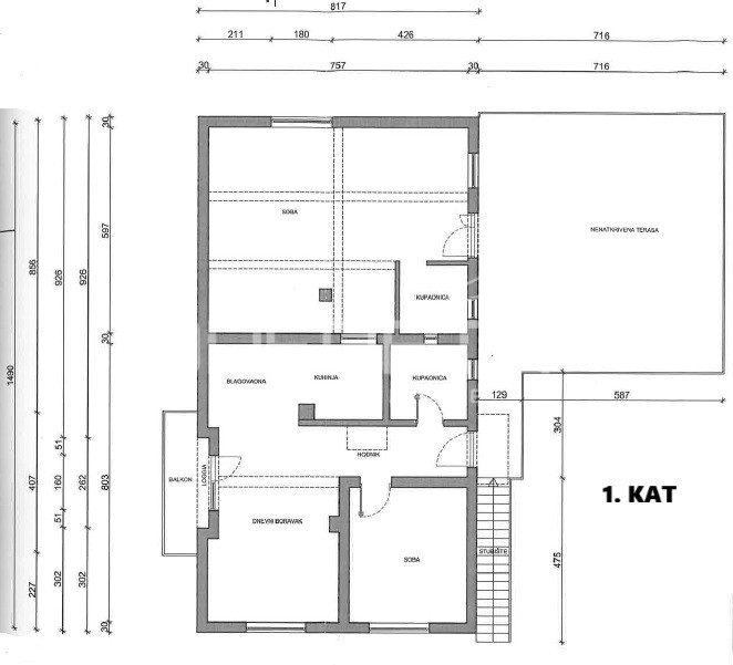 Na katu su dva stana sa mogućnošću proširenja na pripadajući potkrovni dio i velika terasa od 50m2.