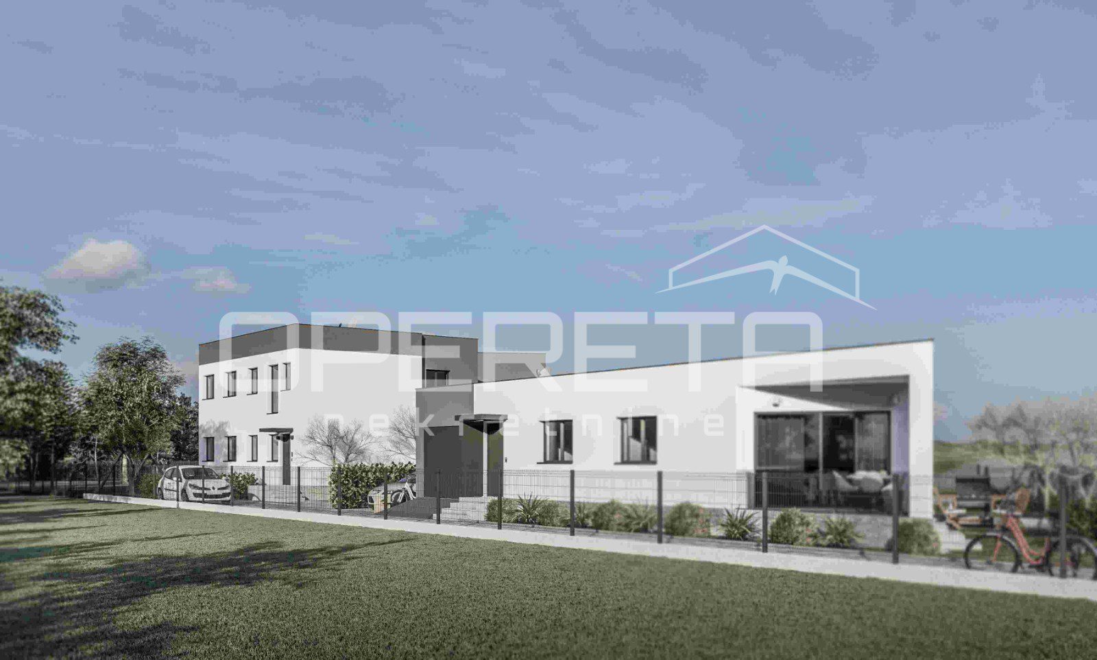 jedna kuća je prizemnica s garažom, a druga kuća katnica koja se može završiti i kao dva odvojena stana, isto tako se mogu dodati ili oduzeti spavaće sobe u procesu gradnje.