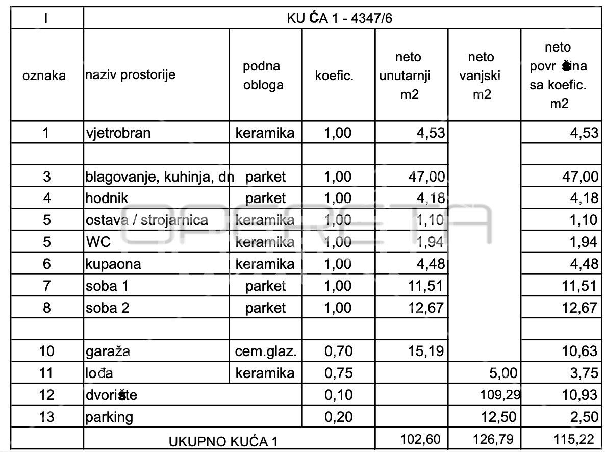 garaža + jedno parking mjesto