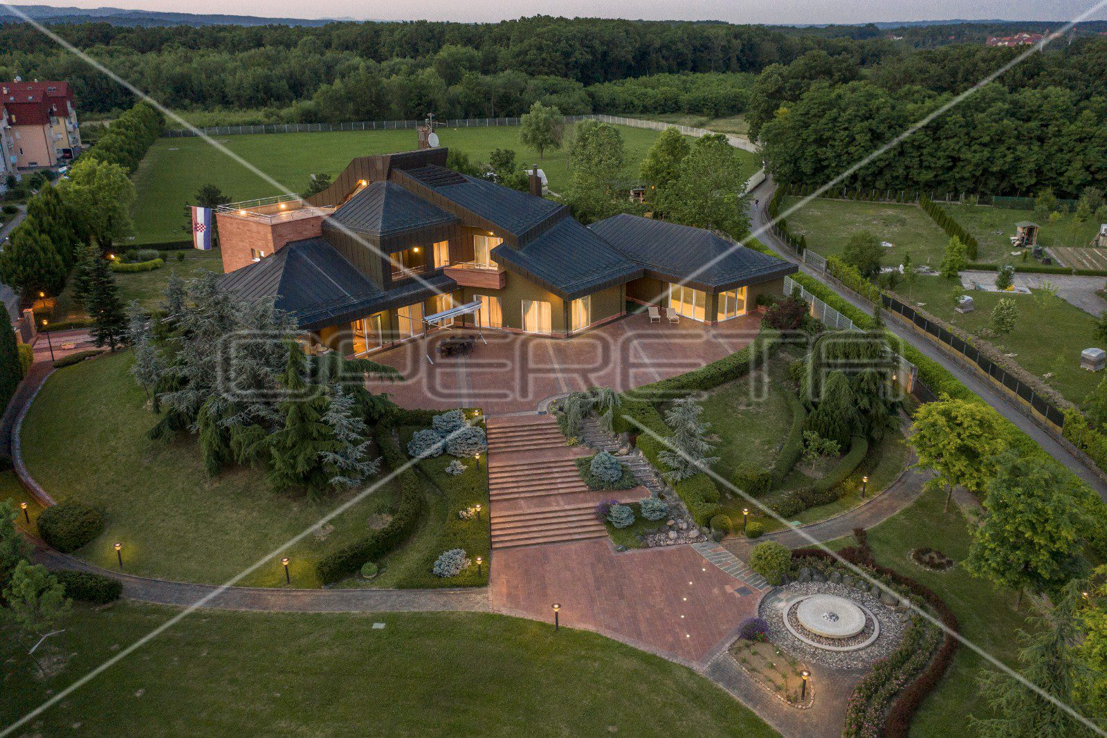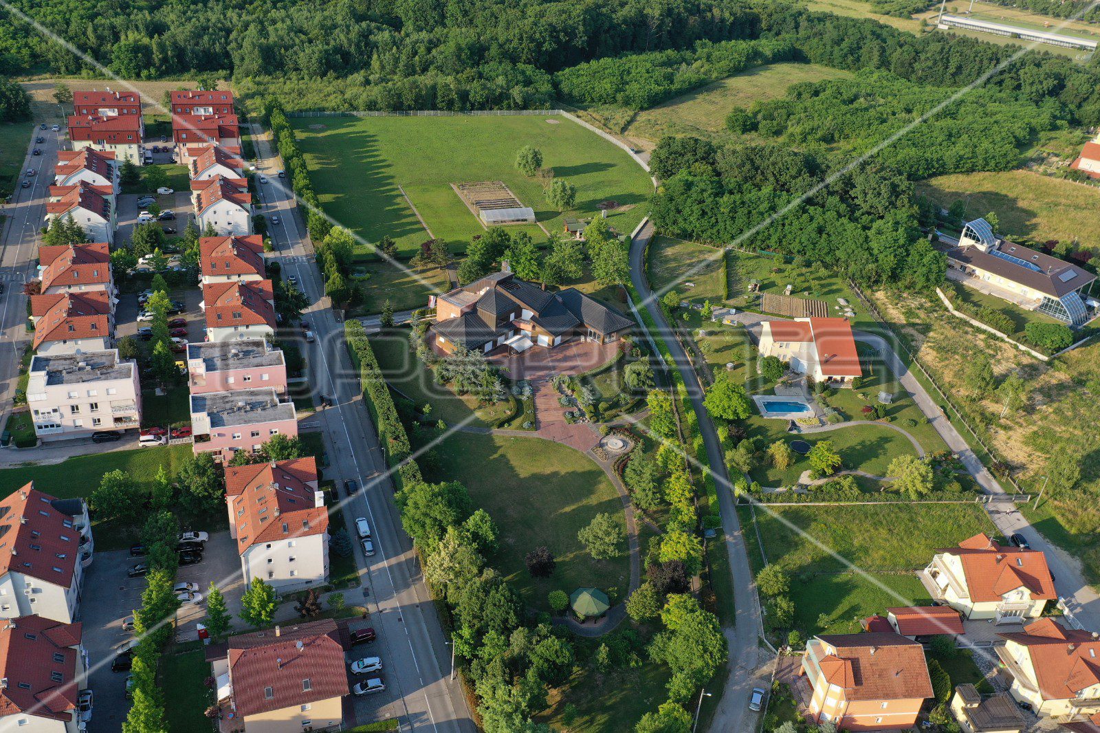 Ovo impresivno imanje smješteno je u mirnom kutku zagrebačkih Sesveta te s preko 1.400 m2 stambene površine na parcelama od skoro 10.000 m2 čini unikatnu nekretninu u ovom dijelu Hrvatske.