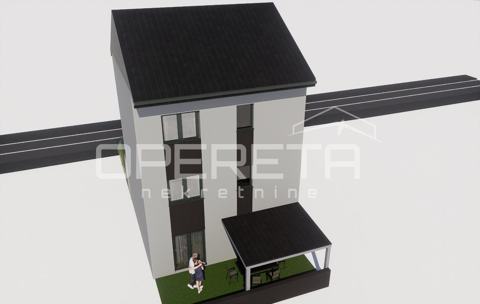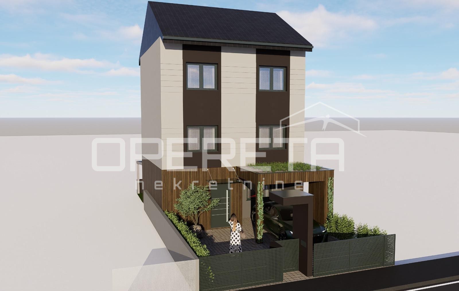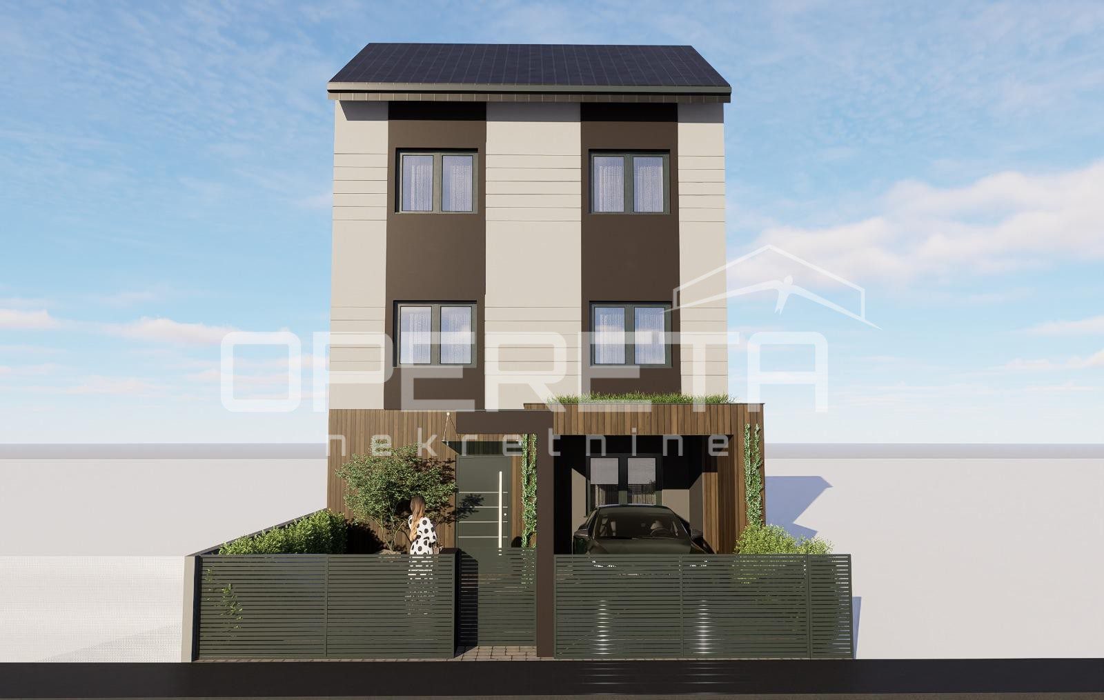 na lokaciji niti 200 metara od svih za život potrebnih sadržaja nalazi se novogradnja u završnoj fazi od prizemlja i 2 kata koja se sastoji od kuhinje, blagovaonice i dnevne sobe u jednom, pet soba, dvije kupaonice s wc-om, wc-a, spremišta, terase te tavanskog prostora. Kući pripada 52 m2 dvorišta gdje se nalazi natkriveni parking te ljetna kuhinja. Podno grijanje, očekivani EC – A/A+. Datum završetka – travanj 2026. Papiri čisti, vlasništvo uredno.