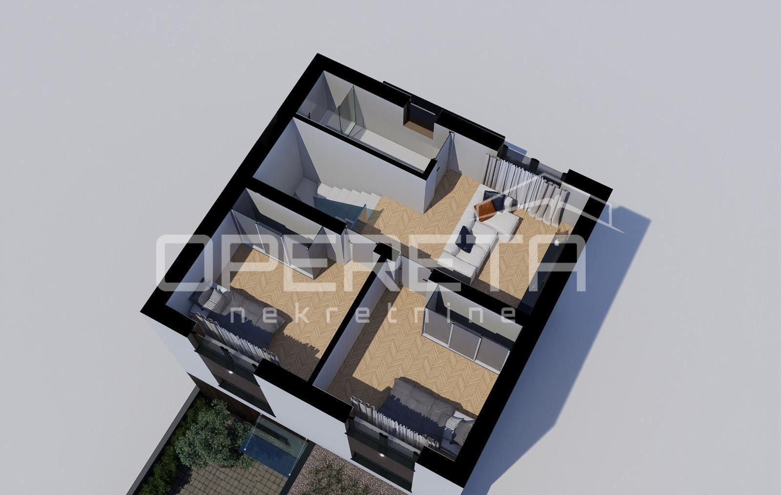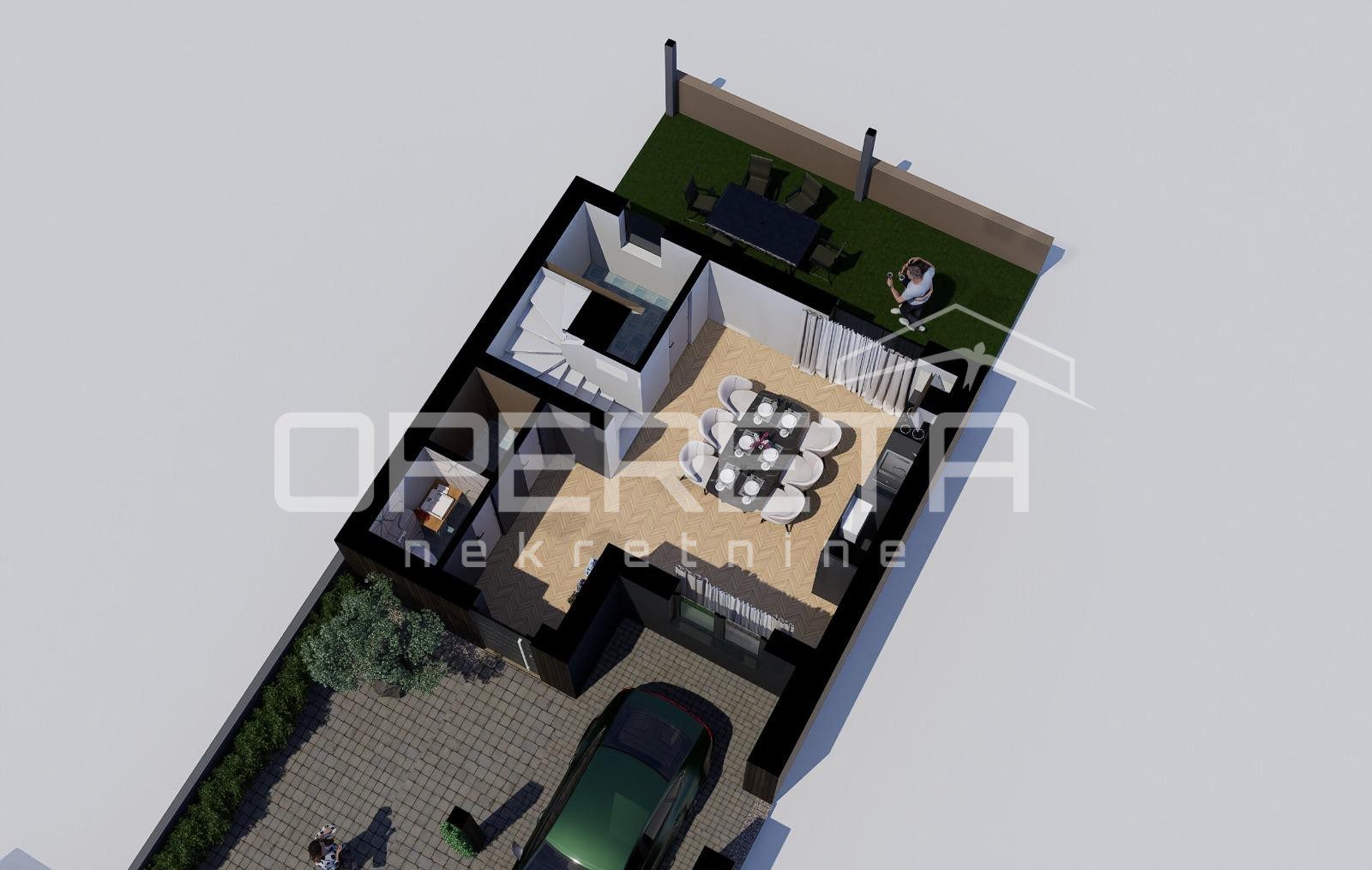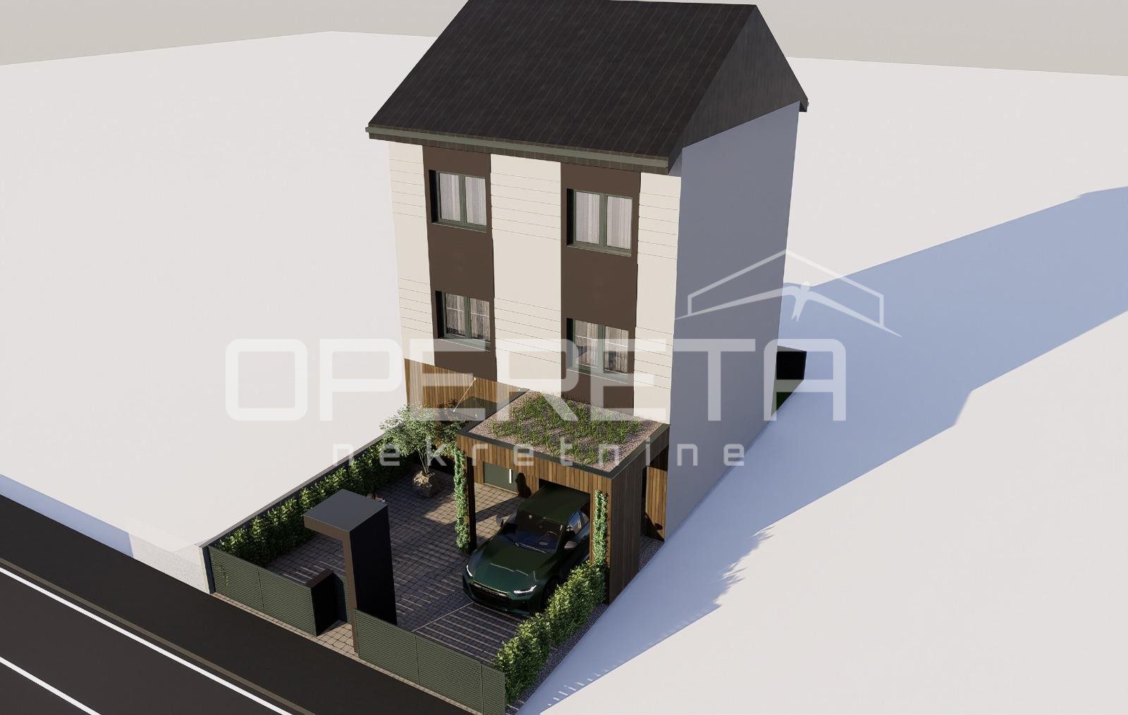 na lokaciji niti 200 metara od svih za život potrebnih sadržaja nalazi se novogradnja u završnoj fazi od prizemlja i 2 kata koja se sastoji od kuhinje, blagovaonice i dnevne sobe u jednom, pet soba, dvije kupaonice s wc-om, wc-a, spremišta, terase te tavanskog prostora. Kući pripada 52 m2 dvorišta gdje se nalazi natkriveni parking te ljetna kuhinja. Podno grijanje, očekivani EC – A/A+. Datum završetka – travanj 2026. Papiri čisti, vlasništvo uredno.
