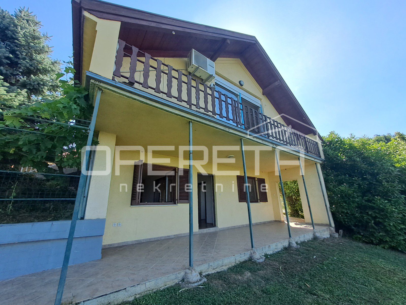 Samostojeća kuća je na velikoj povišenoj parceli s održavanim vrtom, voćnjakom i vinogradom i predivnim pogledom na rijeku Savu i Samoborsko gorje.