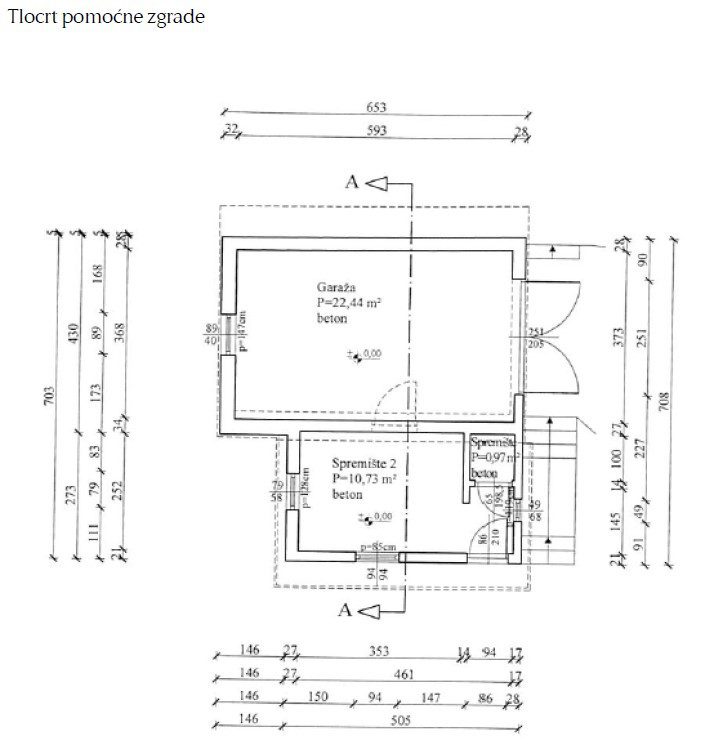 Pomoćna zgrada (garaža i spremište): 17,07 m²