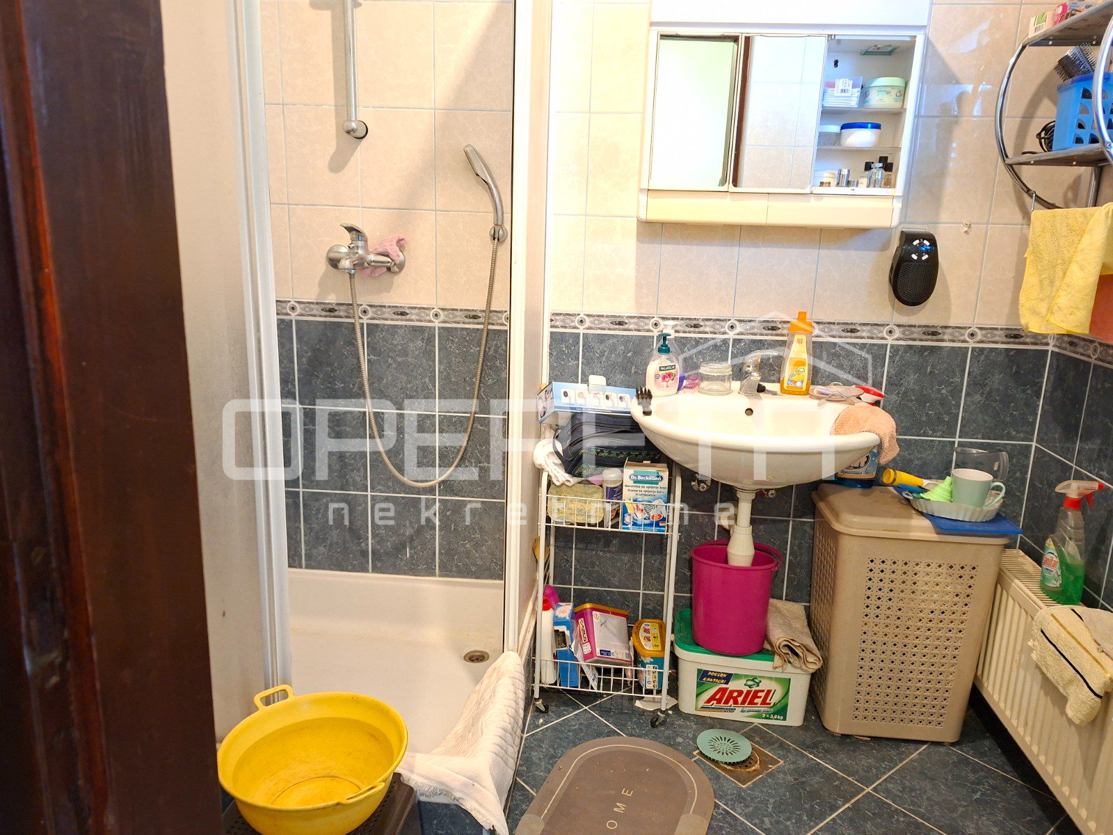 Također se nalazi kuhinja s blagovaonskim dijelom i malim wc – om te prolaz prema garaži koja je spojena s kućom.