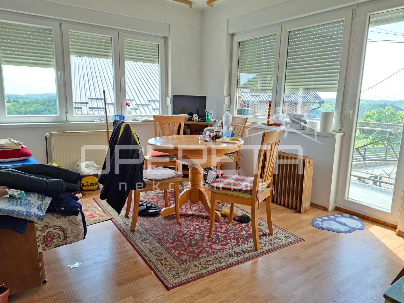 PRODAJE se samostojeća kuća u Kašini na parceli veličine 1018 m2, od čega 107 m2 tlocrtno čini kuća, a 730 m2 čini voćnjak iza kuće na padini.