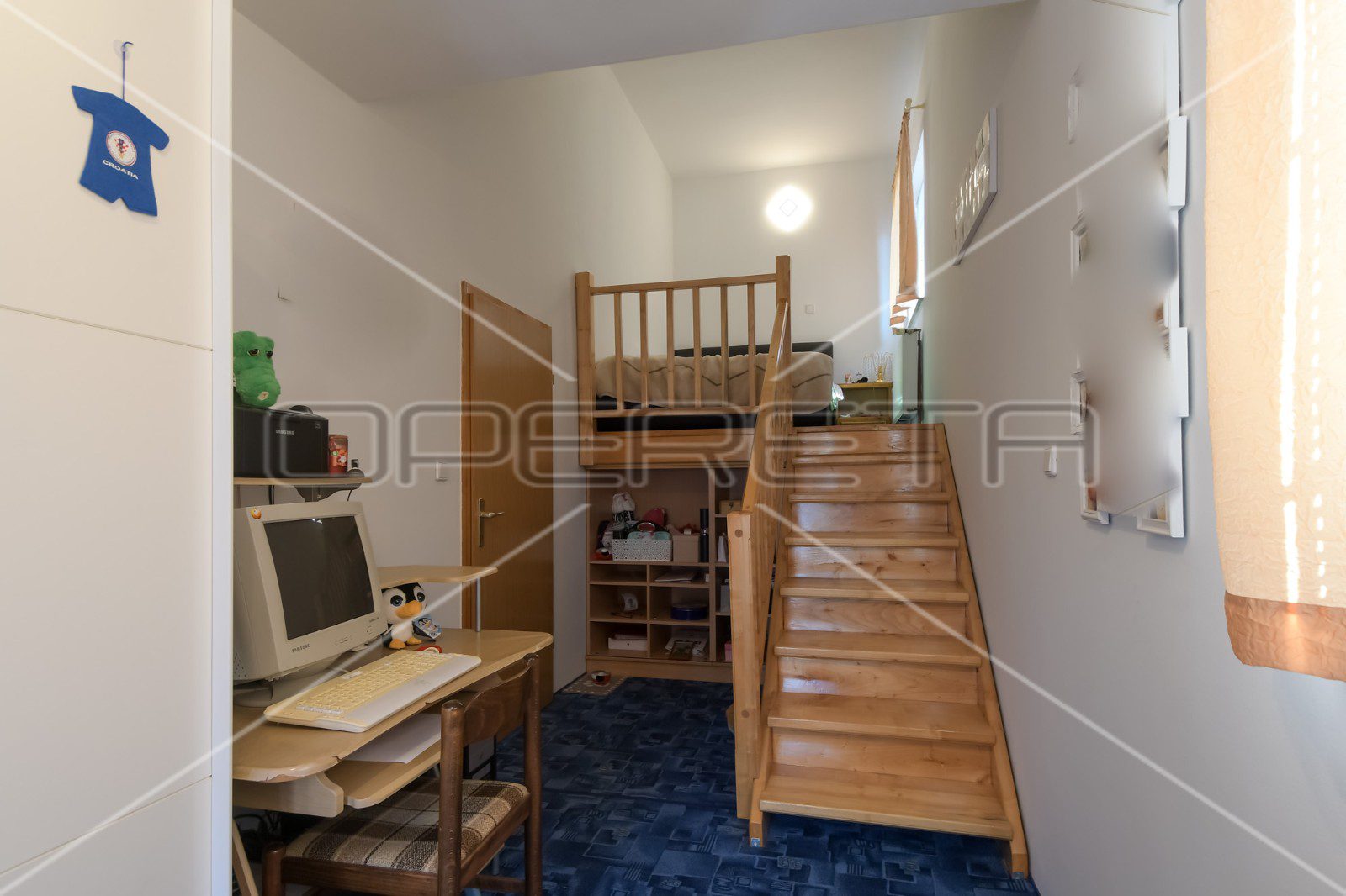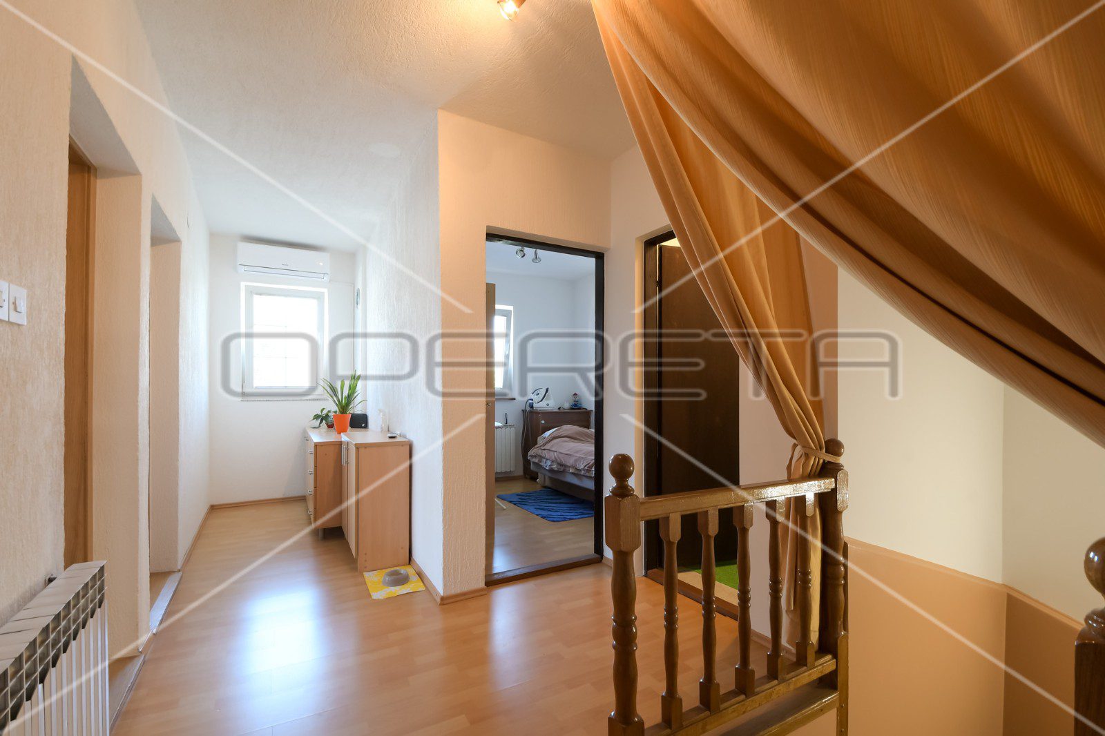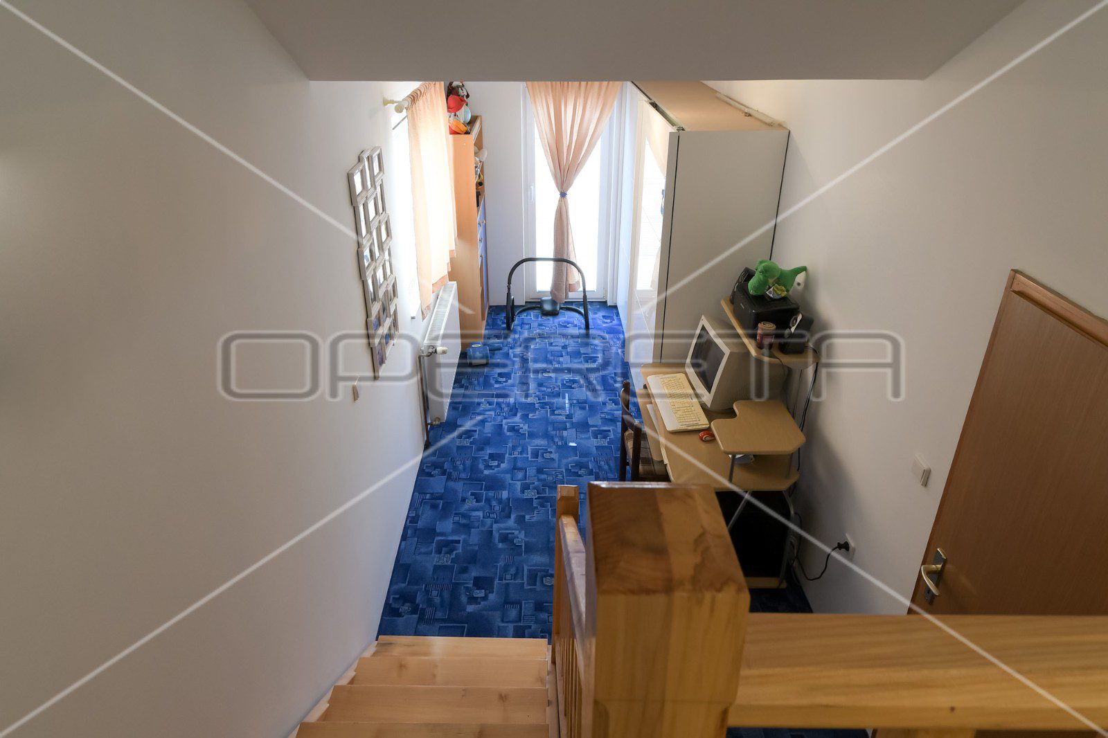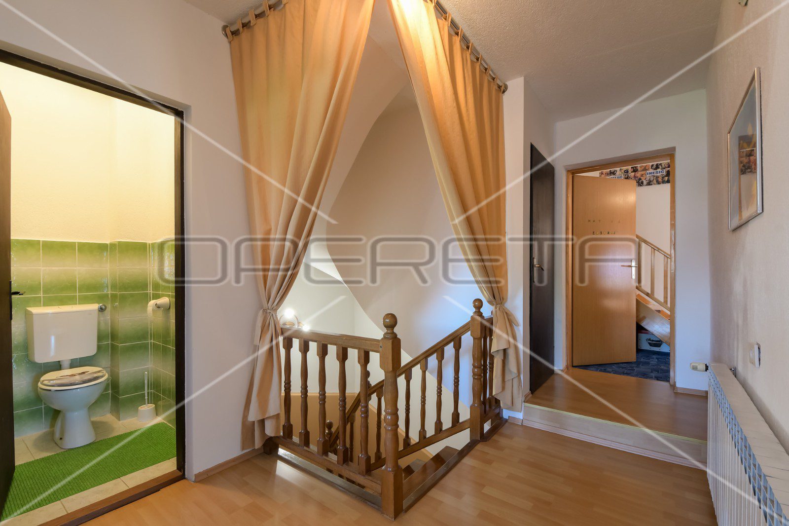 Prodaje se kvalitetno građena i uređena dvokatnica stambene površine 285 m2 na parceli od 392 m2 na atraktivnoj lokaciji u samom centru Zaprešića. Razvedena je u tri etaže. Prizemlje se sastoji od “open space” dnevnog boravka povezanog s kuhinjom i blagovaonicom, kupaonice s WC-om, tehničke prostorije, ulaznog hodnika i stubišta. Prvi kat sastoji se od 3 spavaće, 1 radne sobe s galerijom, kupaonice s WC-om, hodnika i stubišta. U potkrovlju (roh bau) je jedna velika prostorija s velikim potencijalom preuređenja u dodatni stan s galerijom ( sljeme visine 5 m). Može funkcionirati kao cjelina ili uz manje preinake kao 3 odvojena stana te kao takva predstavlja priliku za život i/ili iznajmljivanje. U dvorištu 3 natkrivena + 4 nenatkrivena parkirna mjesta i spremište. Atraktivna i tražena lokacija, u neposrednoj blizini škole, vrtića, banaka, doma zdravlja i svih potrebnih sadržaja! Prilika!