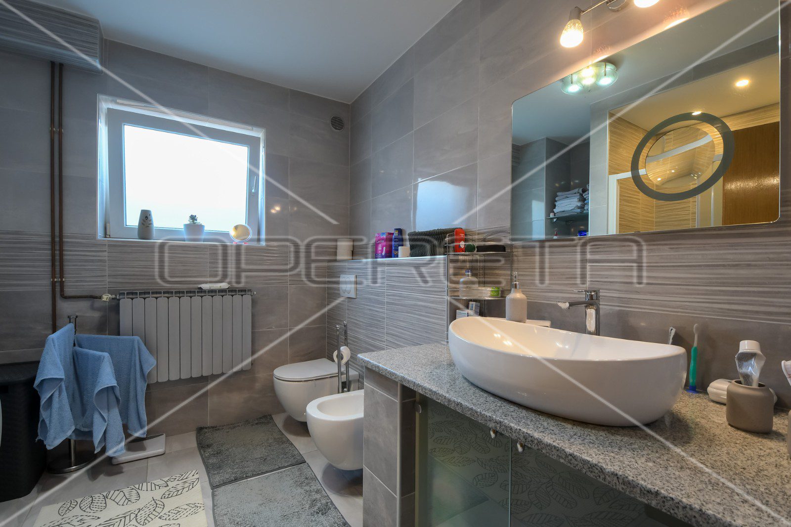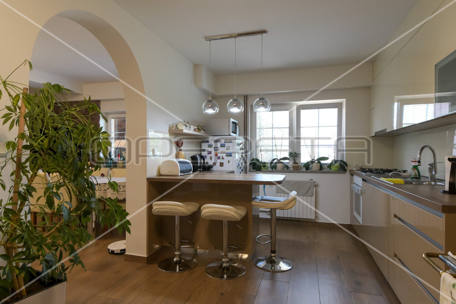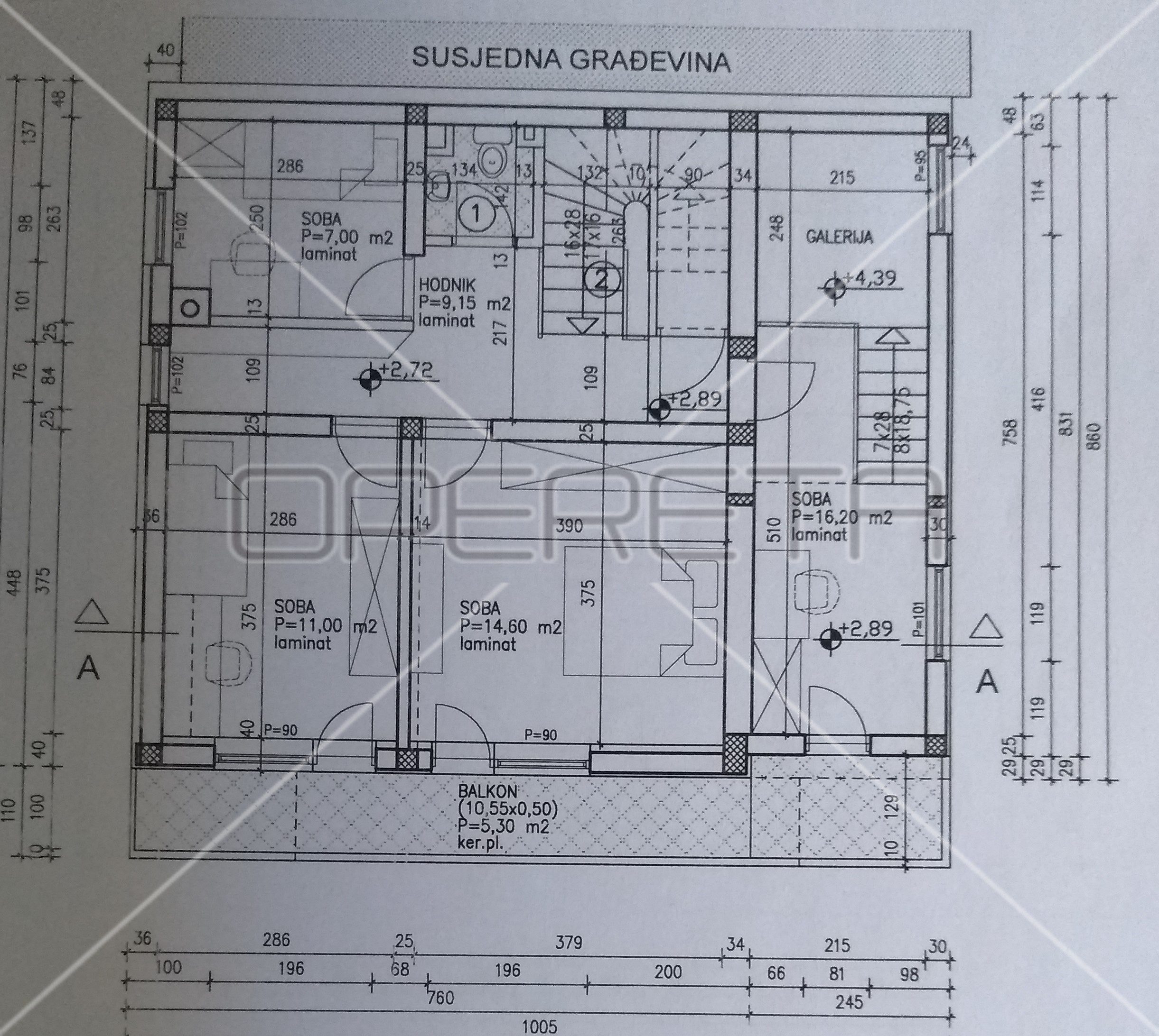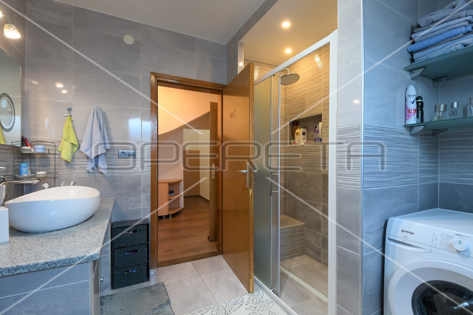 Prodaje se kvalitetno građena i uređena dvokatnica stambene površine 285 m2 na parceli od 392 m2 na atraktivnoj lokaciji u samom centru Zaprešića. Razvedena je u tri etaže. Prizemlje se sastoji od “open space” dnevnog boravka povezanog s kuhinjom i blagovaonicom, kupaonice s WC-om, tehničke prostorije, ulaznog hodnika i stubišta. Prvi kat sastoji se od 3 spavaće, 1 radne sobe s galerijom, kupaonice s WC-om, hodnika i stubišta. U potkrovlju (roh bau) je jedna velika prostorija s velikim potencijalom preuređenja u dodatni stan s galerijom ( sljeme visine 5 m). Može funkcionirati kao cjelina ili uz manje preinake kao 3 odvojena stana te kao takva predstavlja priliku za život i/ili iznajmljivanje. U dvorištu 3 natkrivena + 4 nenatkrivena parkirna mjesta i spremište. Atraktivna i tražena lokacija, u neposrednoj blizini škole, vrtića, banaka, doma zdravlja i svih potrebnih sadržaja! Prilika!